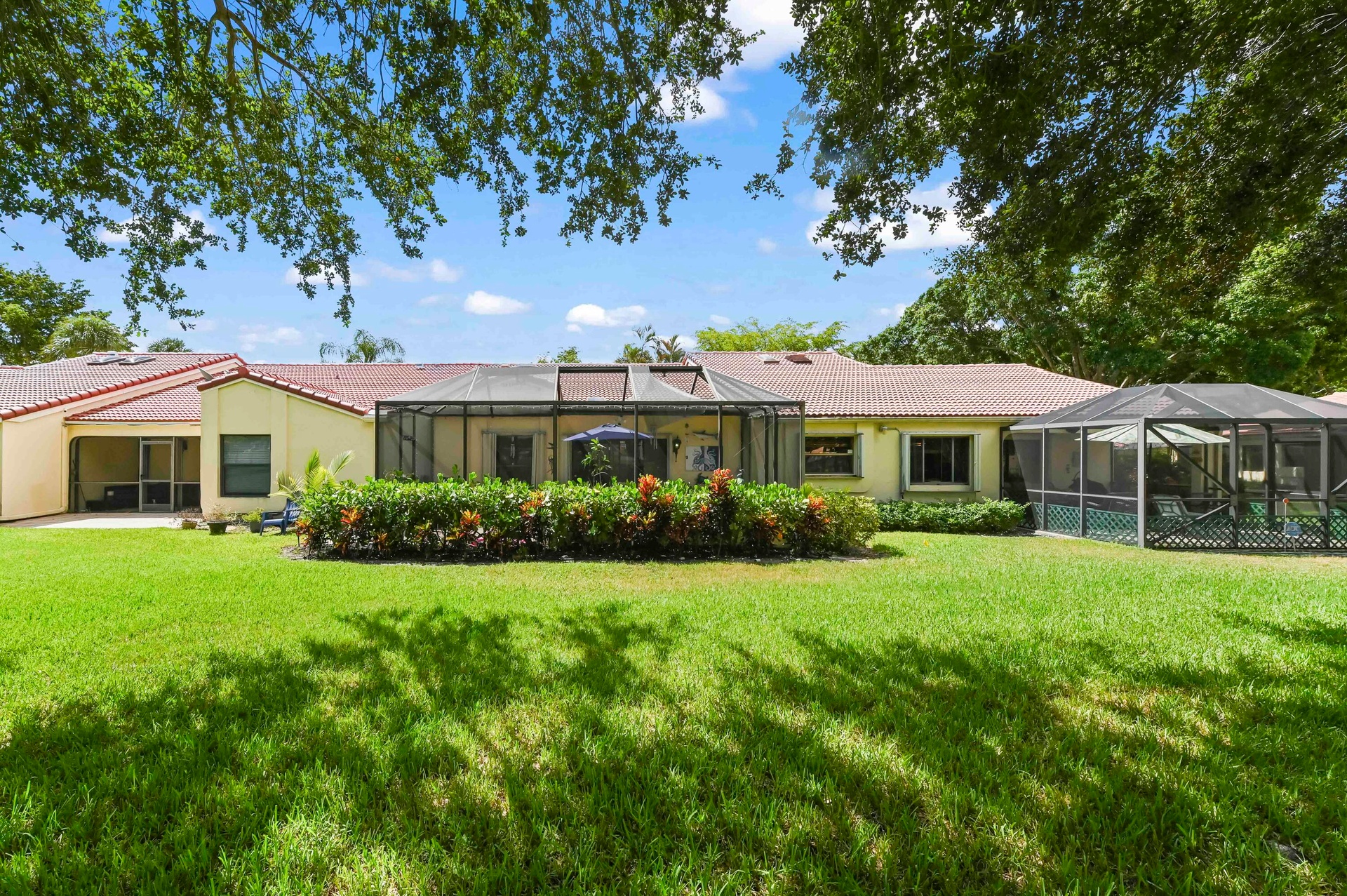 DescriptionExperience Florida lifestyle in this beautifully maintained 2-bedroom, 2-bath villa, perfectly situated in the sought-after community of Villas on The Green within Deer Creek. Designed for seamless indoor-outdoor living, this home offers serene golf course and garden views that create a tranquil backdrop for your daily life. Inside, soaring vaulted ceilings and strategically placed skylights fill the space with an abundance of natural light, while elegant tile flooring flows continuously through the living, dining, and kitchen areas, creating a bright and inviting atmosphere.