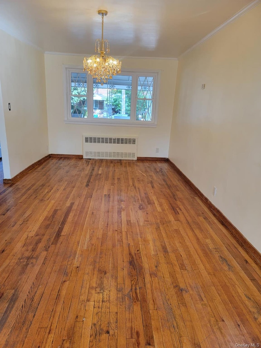 - Unfurnished room featuring light wood-type flooring and radiator