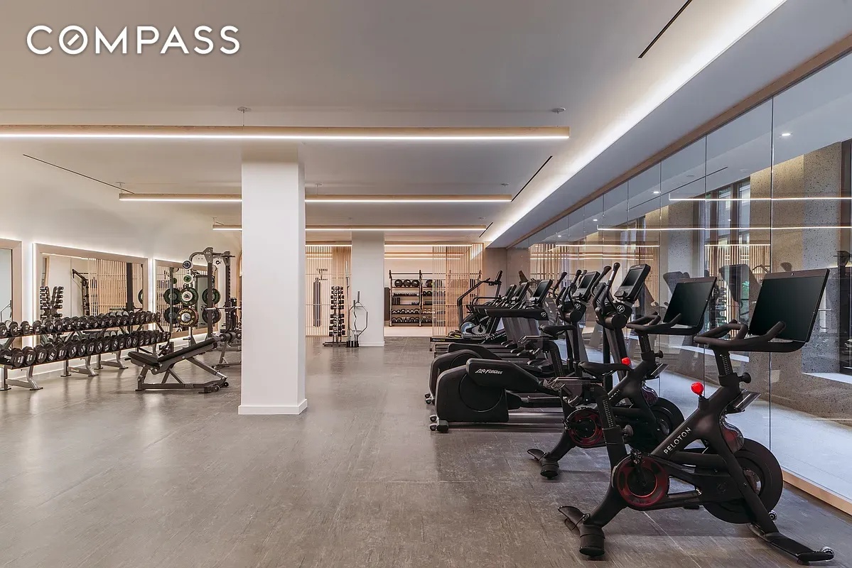 Built in 2022, Saint Mark's Place offers a wealth of amenities spanning 19,000 square feet. Rejuvenate in the Wright Fit-designed wellness center, boasting a 2,000 square foot gym, pilates and yoga studios, steam and sauna rooms, and meditation areas. Socialize in the fully outfitted music room, games room, or the dining and entertainment room, complete with a chef's kitchen. The expansive 3,000 sq ft common rooftop provides a perfect setting for gatherings with grills and a cinema. Benefit from the convenience of 24-hour lobby service and the on-site Food Garden Market supermarket.