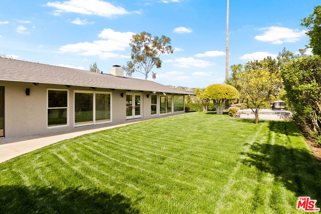 Set back from the street on a flat section of Westridge, this beautifully renovated single-story home seamlessly blends modern style with casual comfort. Upon entering through the gated courtyard, you're welcomed by a lush, expansive yard featuring new sod, a vegetable garden, and an elevated wooden deck. Large windows and French doors bathe the home in natural light, creating a bright and inviting atmosphere. The stunning kitchen flows effortlessly into the dining and living areas, where wood floors, a charming white-beamed ceiling, and a cozy fireplace add warmth and character. The spacious primary suite opens to a private, peaceful backyard with mountain views and features a remodeled bathroom. Generously sized guest bedrooms are complemented by tastefully updated bathrooms. The detached garage has been thoughtfully transformed into a stylish studio, complete with office space, bathroom and a private patio. The newly landscaped grounds enhance the home's privacy, making this an exceptional property, perfect for both relaxation and entertaining. Furnishings are available through the staging company for an additional cost.