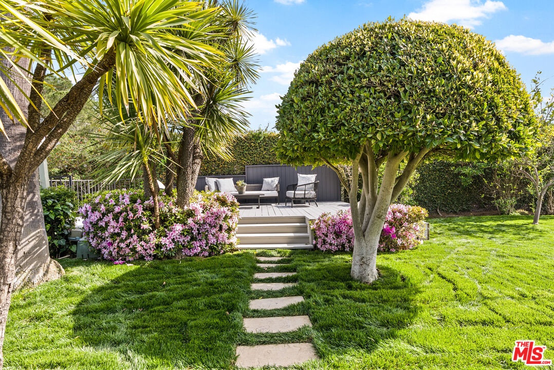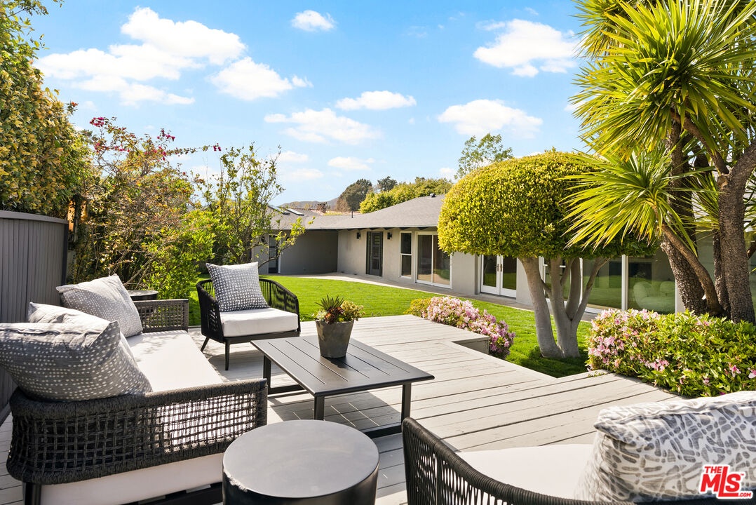 DescriptionSet back from the street on a flat section of Westridge, this beautifully renovated single-story home seamlessly blends modern style with casual comfort. Upon entering through the gated courtyard, you're welcomed by a lush, expansive yard featuring new sod, a vegetable garden, and an elevated wooden deck. Large windows and French doors bathe the home in natural light, creating a bright and inviting atmosphere. The stunning kitchen flows effortlessly into the dining and living areas, where wood floors, a charming white-beamed ceiling, and a cozy fireplace add warmth and character. The spacious primary suite opens to a private, peaceful backyard with mountain views and features a remodeled bathroom. Generously sized guest bedrooms are complemented by tastefully updated bathrooms. The detached garage has been thoughtfully transformed into a stylish studio, complete with office space, bathroom and a private patio. The newly landscaped grounds enhance the home's privacy, making this an exceptional property, perfect for both relaxation and entertaining. Furnishings are available through the staging company for an additional cost.NeighborhoodMore listings: