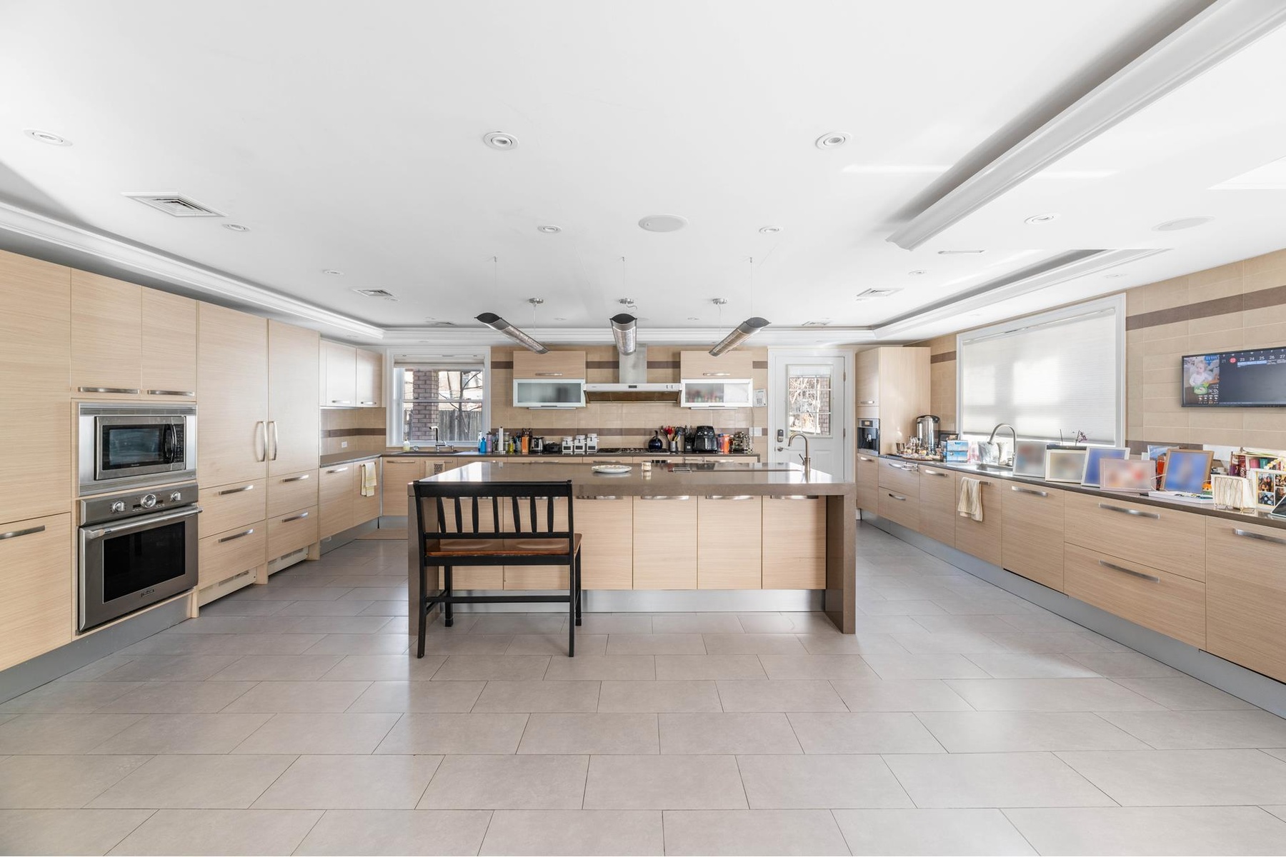 Renovated & Updated, this unparalleled home in North Riverdale offers unique modern living in NYC. Expertly designed, the open concept renovated main floor with large living room, a sunny south facing sunroom, a chef's kitchen with top-of-the-line appliances and large eat-in sitting area, an oversized center island, (some photos show kitchen before being updated, kitchen is large & stunning) separate dining area and powder room. This home is great for entertaining, with lots of natural light pouring in. Second floor features an enormous main bedroom suite with Carrera marble bathroom, vaulted ceiling, double closets and south facing balcony. There is an additional bedroom with en-suite bathroom, and two more bedrooms share a large bathroom and have a back balcony. Lower level consists of large recreation room, bathroom, office, wine cellar, two storage rooms and garage.