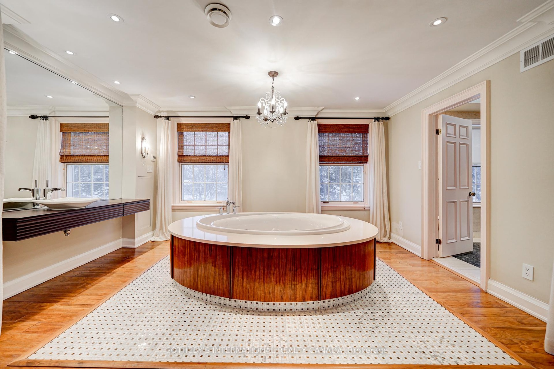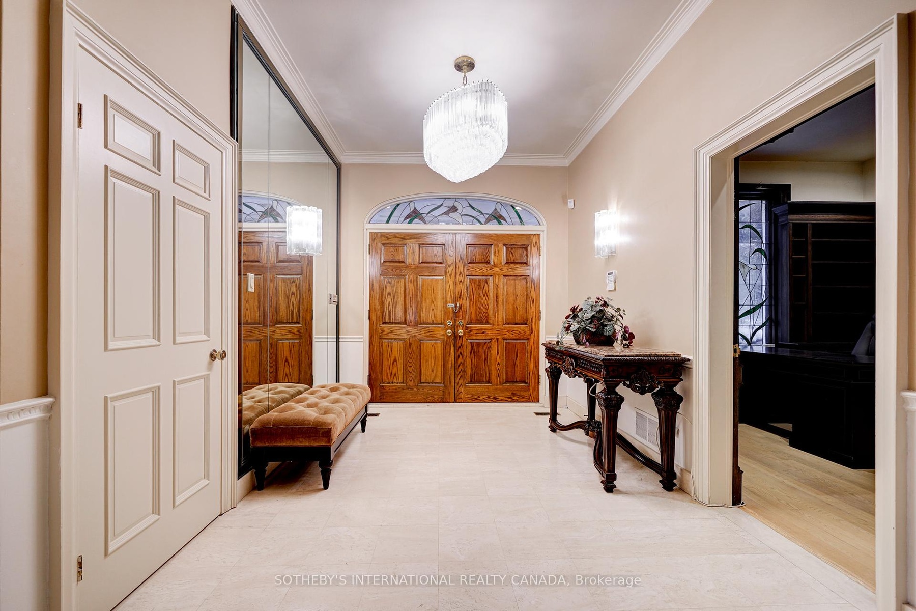 DescriptionWelcome to discover this extraordinary Georgina Revival hallmark. Quietly situated on a private enclave of the prestigious St. Andrew-Windfields neighborhood, this magnificent residence boasts approximately 6,348 sq ft above grade and features five (5) bedrooms, each with a full ensuite upstairs. The expansive central layout announces a formal entrance and graceful symmetry. Tasteful architectural refinements and recent upgrades throughout. An elegant circular stairwell, European oak panelling, splendid mirror walls, hand crafted vanities, and intricate beveled lead designs all mingling to create artistic and sensational aroma for the home. The main kitchen is equipped with a secondary kitchenette, offering a variety of cuisine options. Two sets of appliances plus a freezer in the lower level are all included. A wealth of sash windows and glass entrances, thoughtfully proportioned to provide abundant natural light. L-shape courtyard, lash backyard, and ample side yard provide a high level of privacy and comfort for garden gathering and family relaxation. A spectacular underground multi-purpose sport court and enormous game room is well-loved for year-round recreational activities. Extra large three-car garage, six additional ground parking spaces, and a basketball stand conveniently appointed at the north end of the building. Hot Water Tank owned. Partially furnished. The entire property and furniture presented are included, with the exception of the covered indoor pool wing, which is locked for safety. The location features a perfect proximity to top public and private schools, Granite Club, Sunnybrook Hospital, Hwy 401, golf courses, fine dinings and upscale shoppings. 27 Junewood Cres proudly enhances this exclusive community which is known for its sophisticated executive living and unparalleled social connectivity.Amenities- Water Heater Owned
