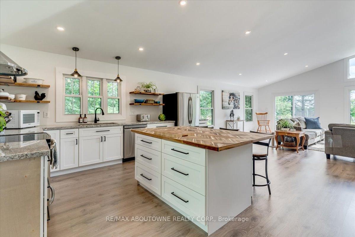 Park like setting on a quiet country road with a large renovated & updated 5 bedroom Century home. Modern kitchen, surrounded by windows. Center island, walk in pantry, butlers pantry , granite countertops, vaulted ceiling open to family room. Walk out to new deck, overlooking pool with stunning views. Corner mud room with laundry has direct outside access & large windows ,Walk in closet with ample storage, 2 pc bathroom. Lovely bright dining room & oversized windows, wood burning fireplace in fabulous living room. Walk through butlers pantry, coffee station, closed storage all renovated .Second level with new main bathroom, 4 large bedrooms ( primary with 3pc ensuite) great closet space & walk out to balcony overlooking west side of property. On the third level we have a bedroom open to sitting area & perfect office space. The views from here are stunning, overlooking 62 acres with River surround by Forests. Open Meadows , established Apple Orchard, Large fenced Garden, Two stall Barn/ hayloft & Drive Shed/Garage. 40 acres of workable fields. Pasture with horse water post & run in. Paddocks fenced, chicken coop & 4 stall Kennel. :::::::: Property on the North Branch of the Nottawasaga River. NOT in the greenbelt. Minutes from Orangeville. Lots of potential..