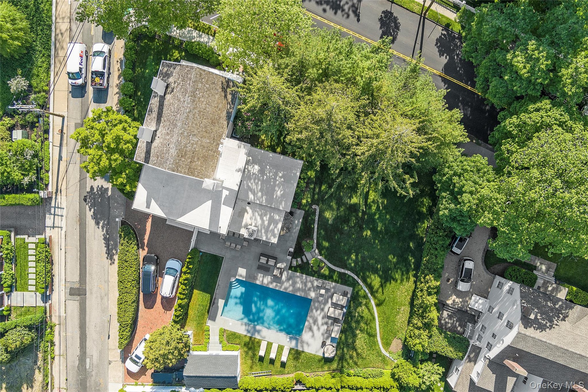 - Aerial view of a pool area