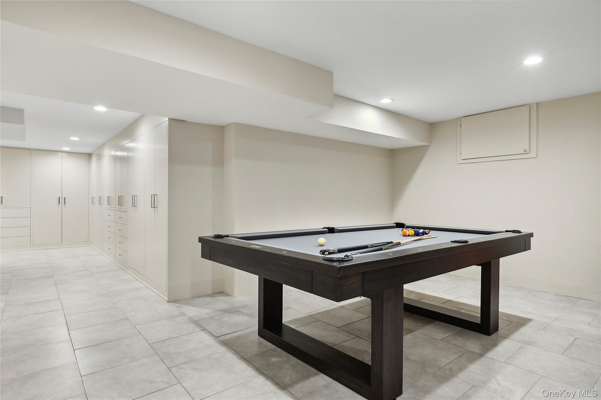 - Game room featuring pool table, recessed lighting, and light tile patterned flooring
