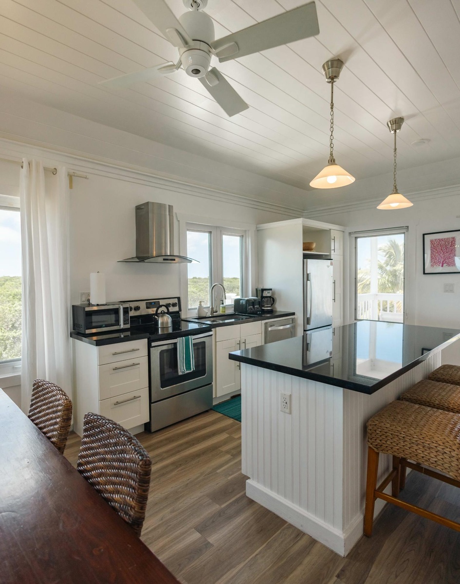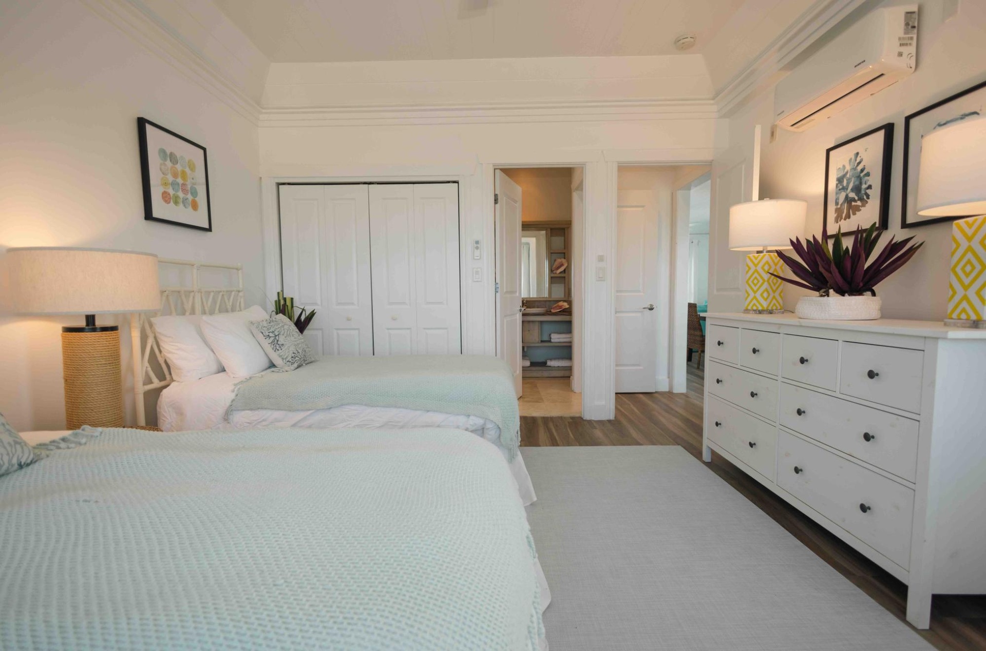 This two-bedroom, two-bathroom condo is the ultimate turnkey island home for a family seeking a seamless blend of adventure and relaxation. Whether it’s a winter escape from the cold north or a family getaway from the south, Buttonwood delivers. There are amazing ocean views from every window, two en-suite, ocean-view bedrooms - one with a king bed and the other with twin beds that convert to a king, perfect for kids or visiting guests. Designer bathrooms finished in travertine stone. The kitchen is a modern white design with black granite countertops and stainless-steel appliances. Fully equipped with premium Misen cookware, new LG washer/dryer, Brooklinen bedding, Sunbrella slipcovers, NuCore “life- proof” floors, and Chilewich floor mats for luxury living with low-stress maintenance. Mini-split AC units and ceiling fans in each room. Stylish artwork and a library stocked with an intriguing book collection finish the space. Buttonwood is designed for easy living, whether you stay a few weeks or lock and leave it for months at a time.