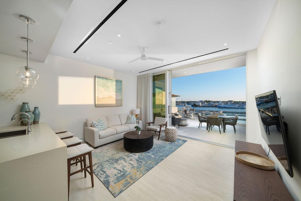 Enjoy expansive views of the Hurricane Hole Superyacht Marina and Nassau Harbour from this contemporary one bedroom, one bathroom suite at Sterling Commons, Paradise Landing. This tastefully furnished 3rd-floor condo is located at Sterling Commons, a collection of luxury condo residences at Paradise Landing on Paradise Island. The condo blends modern chic with island charm and features the utmost in design, quality and elegance. The condo is fully equipped with high-end appliances, quartz countertops, central air conditioning, laundry facilities and hurricane rated doors that open out to a large private balcony. The unit is also well appointed with linen and dishware. Centered around a state-of-the-art marina, a known safe haven for boaters for generations, Sterling Commons residents have access to a uniquely progressive lifestyle. Setting the bar on elevated contemporary living, Paradise Landing is the new downtown Paradise Island. The perfect address for those who want a cosmopolitan life infused with island bliss.