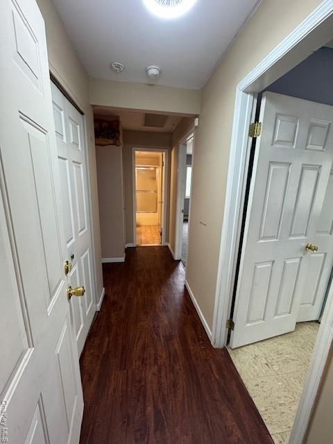 - Bathroom featuring washtub / shower combination, vanity, and dark tile patterned floors