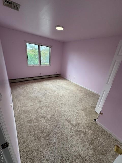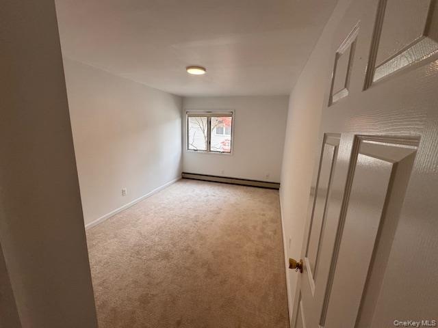 - Spare room with vaulted ceiling, carpet floors, baseboard heating, and recessed lighting