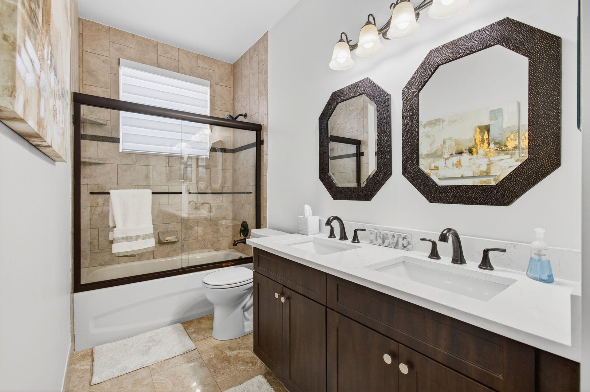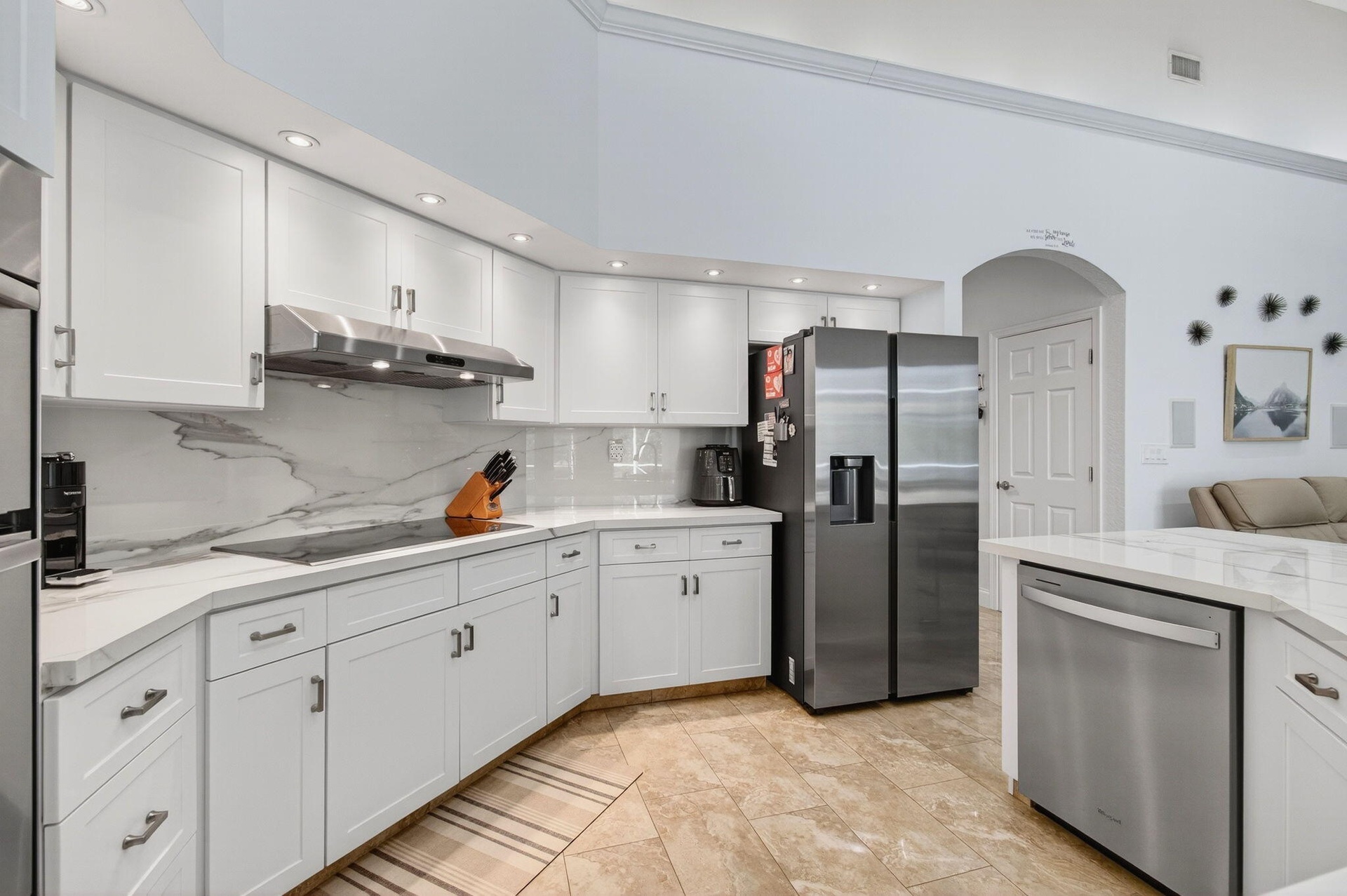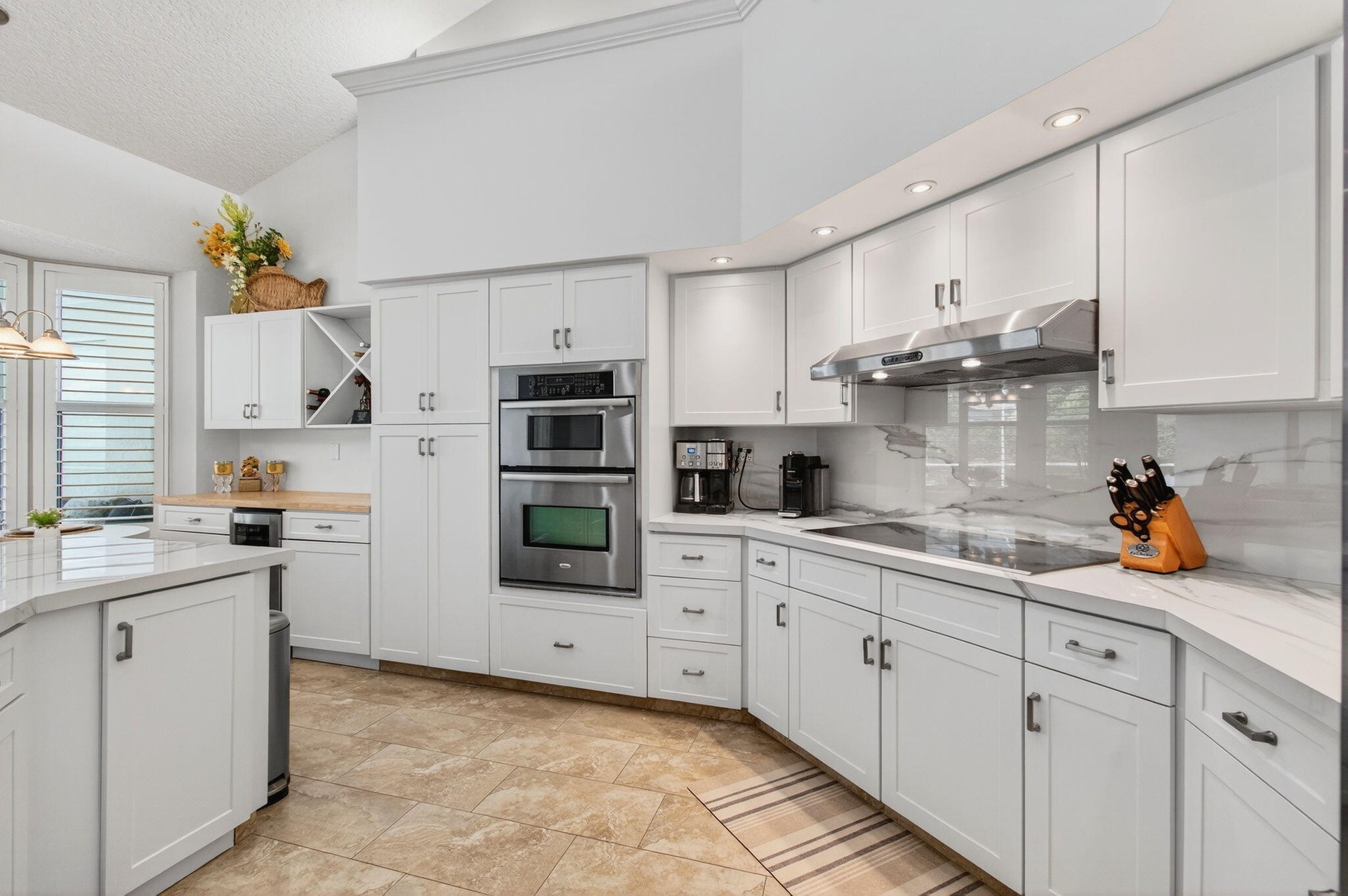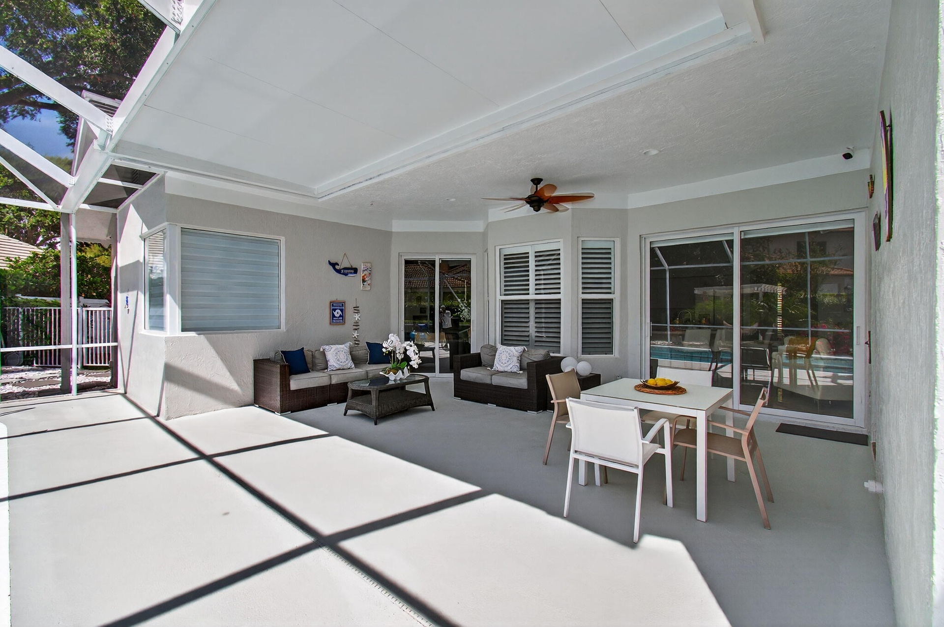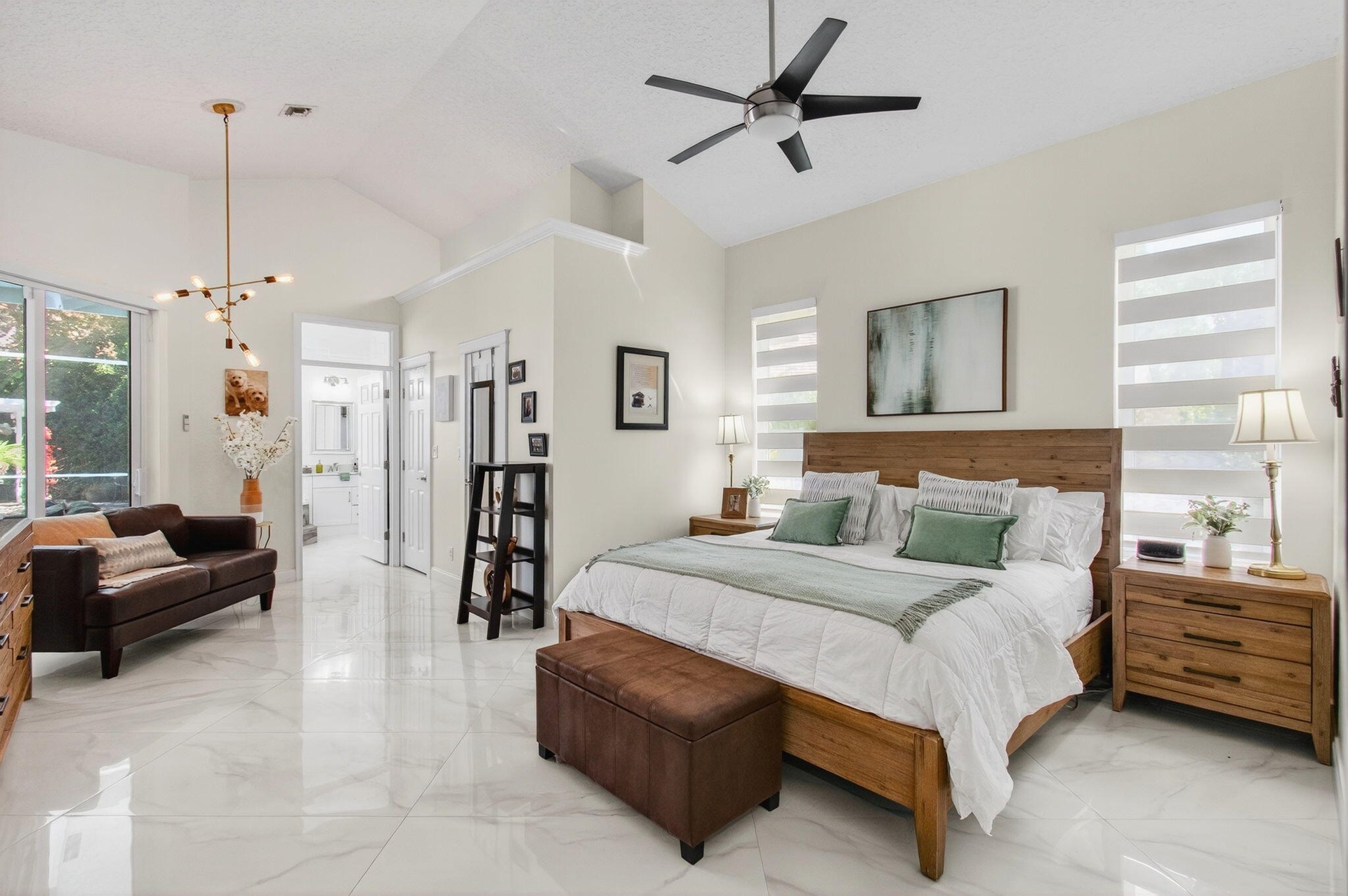 Nestled in the highly coveted, lush tree- lined boutique community of Andover, this meticulously renovated 2520+ sq ft (3BR plus den) residence offers a perfect blend of Florida lifestyle charm with a classic neigborhood vibe. Oversized corner lot with a grand circular drive! Neutral palette for timeless appeal! Split bedroom plan for optimal privacy.! Gourmet kitchen with porcelain countertops, custom cabinetry, and stainless steel appliances open to a spacious family living area and pool view! Elegant grand primary suite with separate shower and spa -like tub, dual sinks! Spacious outdoor, private oasis with SALT WATER POOL - southwest exposure!NEW ROOF , NEW HURRICANE IMPACT WINDOWS. Minutes from vibrant shops, spectacular restaurants and glorious sandy beaches! A must see!