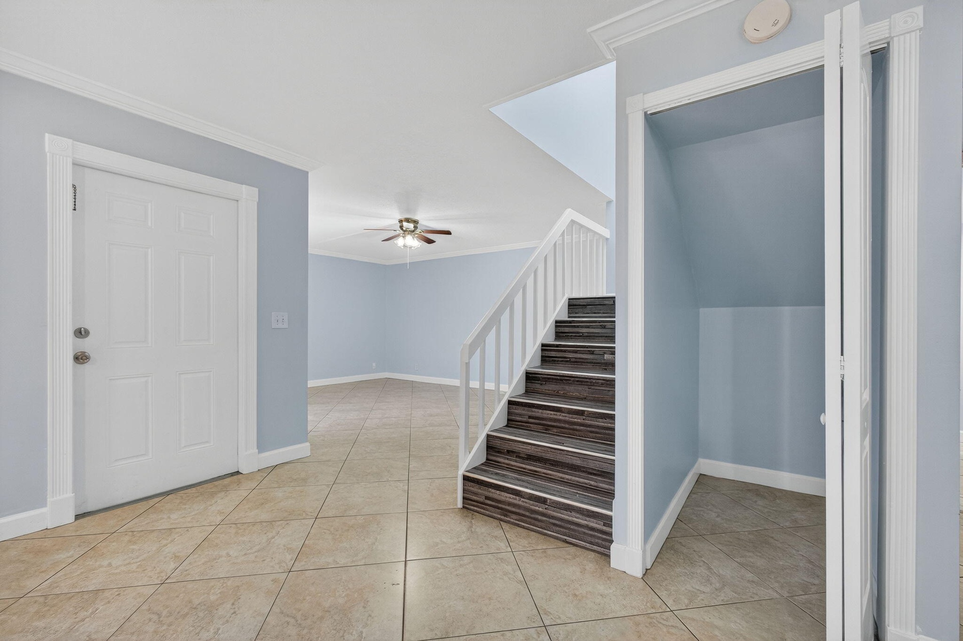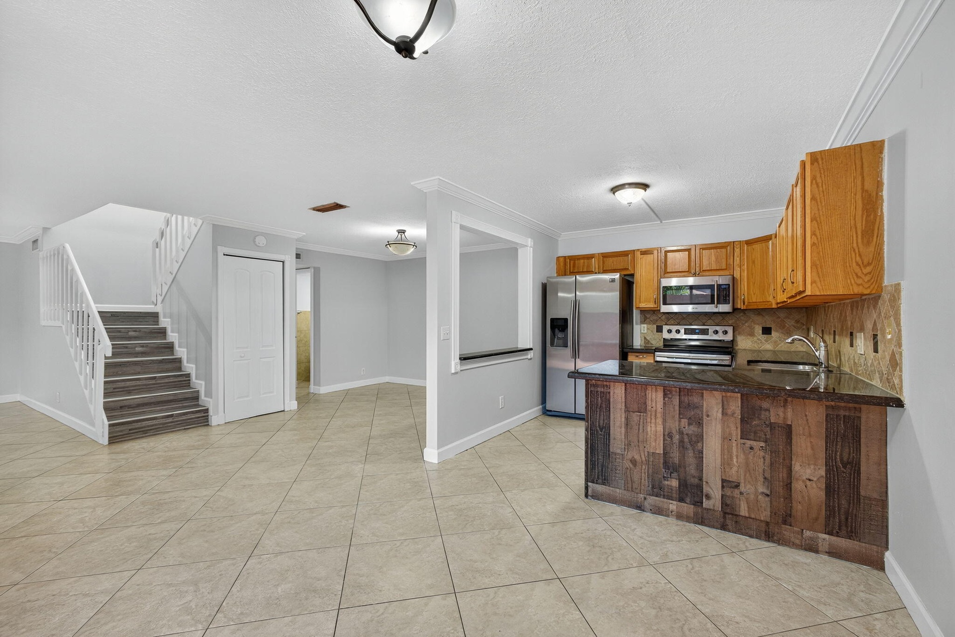 GORGEOUS 3 bedroom, 2.5-bathroom RENOVATED townhome nestled in the vibrant heart of West Palm Beach with a NEW ROOF, New FRONT DOOR and Newer A/C (2023). Meticulously renovated with crown molding throughout the downstairs, captivating farmhouse theme, every corner exudes charm and sophistication. Step inside to discover beauty where every bathroom boasts exquisite tile work and each vanity cabinet has been tastefully replaced. The kitchen is a chef's dream, with nice countertops and equipped with newer stainless-steel appliances. Move in with a much lower payment! Seller will buy down your rate by 1.5%. Exterior Insurance is included in HOA Dues. Low cost H06 Interior policy.