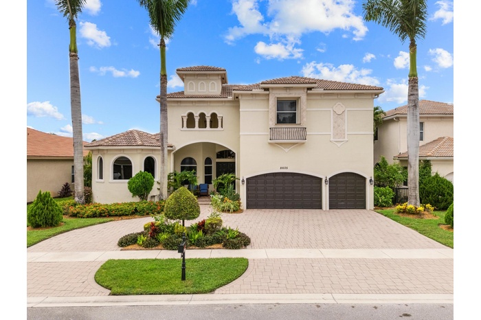 This elegant estate offers 4,179 sq ft with an open layout designed for both comfort and entertaining. Inside, the home showcases white marble countertops that flow seamlessly into the backsplash, updated flooring, and expansive living areas filled with natural light through oversized glass and arched windows. Beautiful French doors help create indoor-outdoor living through thoughtful design.The primary suite is a retreat of its own, featuring a European-style walk-around shower, jacuzzi tub, and dual sinks. Additional bedrooms provide flexibility for family, guests, or a private office.Outdoors, enjoy sweeping lake views from the extended patio with room for a pool and an outdoor bathroom. Located just minutes away from Turnpike, shops, golf, and so much more.