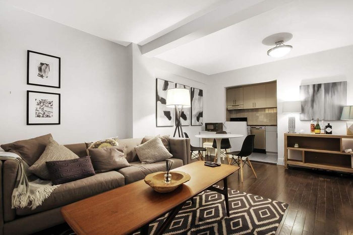 Spacious designer semi furnished 2 BR apartment features mahogany stained hardwood floors and modern and stylish furniture and decor.