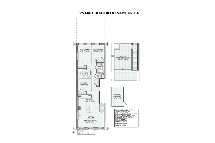 Unit #4, the Penthouse, offers an expansive living space with 3 bedrooms, 2 full baths, and the private rooftop, accessible through an internal staircase. Additionally, there is a 134SF private basement storage room accessible through the common hall.