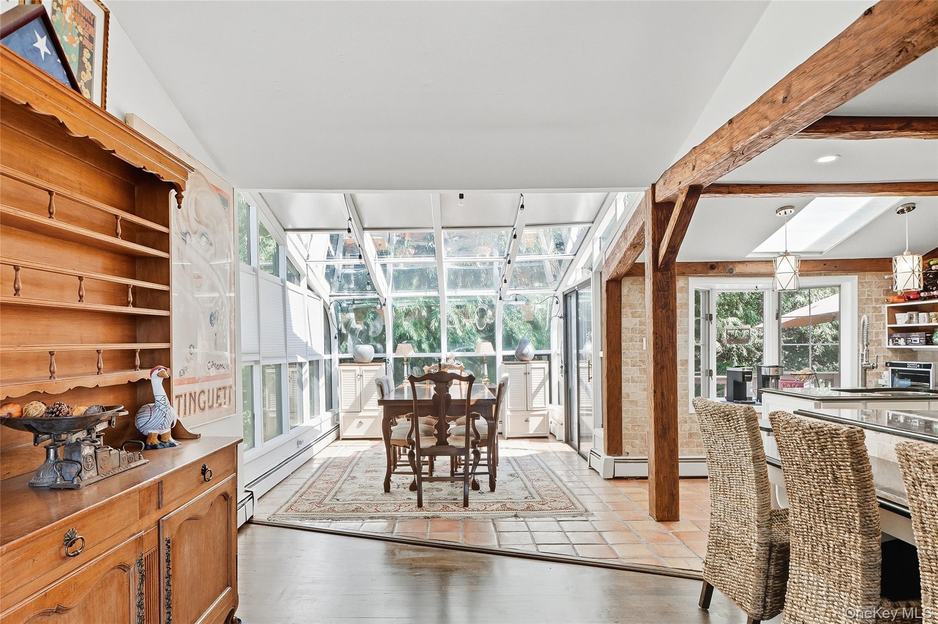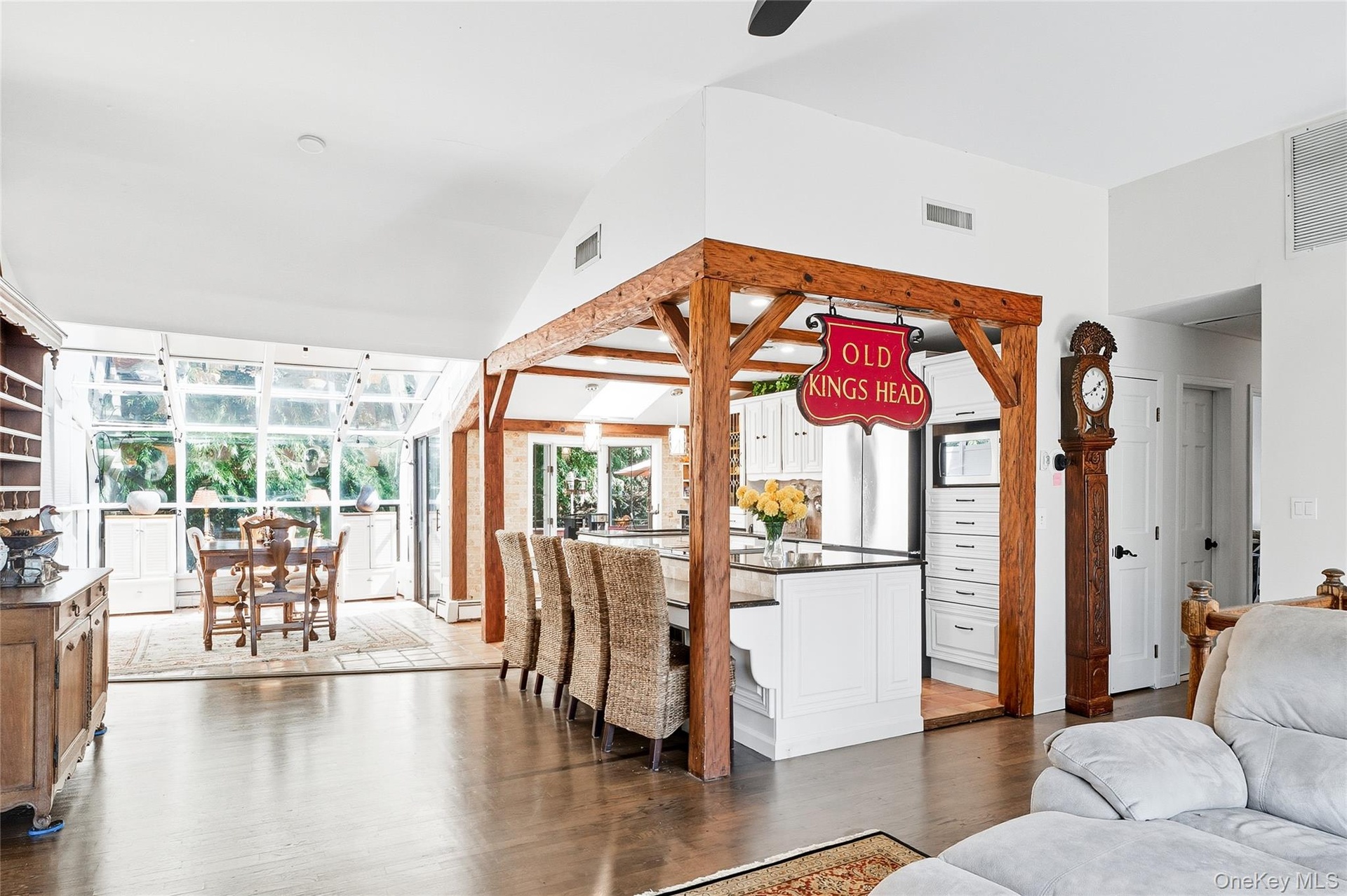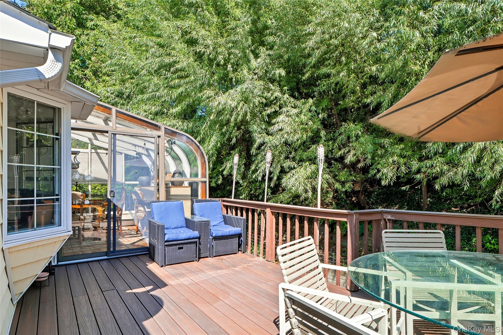 Beautiful, bright 3-bedroom, 2-bath perfect year-round home or summer getaway-- just 1 minute from both the Harbor and the Bay! Home features hardwood floors and sun-filled windows with some water peeks, living room flows into a French country eat-in kitchen with white cabinetry, granite counters, and a large island, plus an adjoining dining room and heated glass solarium. The first level offers two nicely sized bedrooms and a full bath.