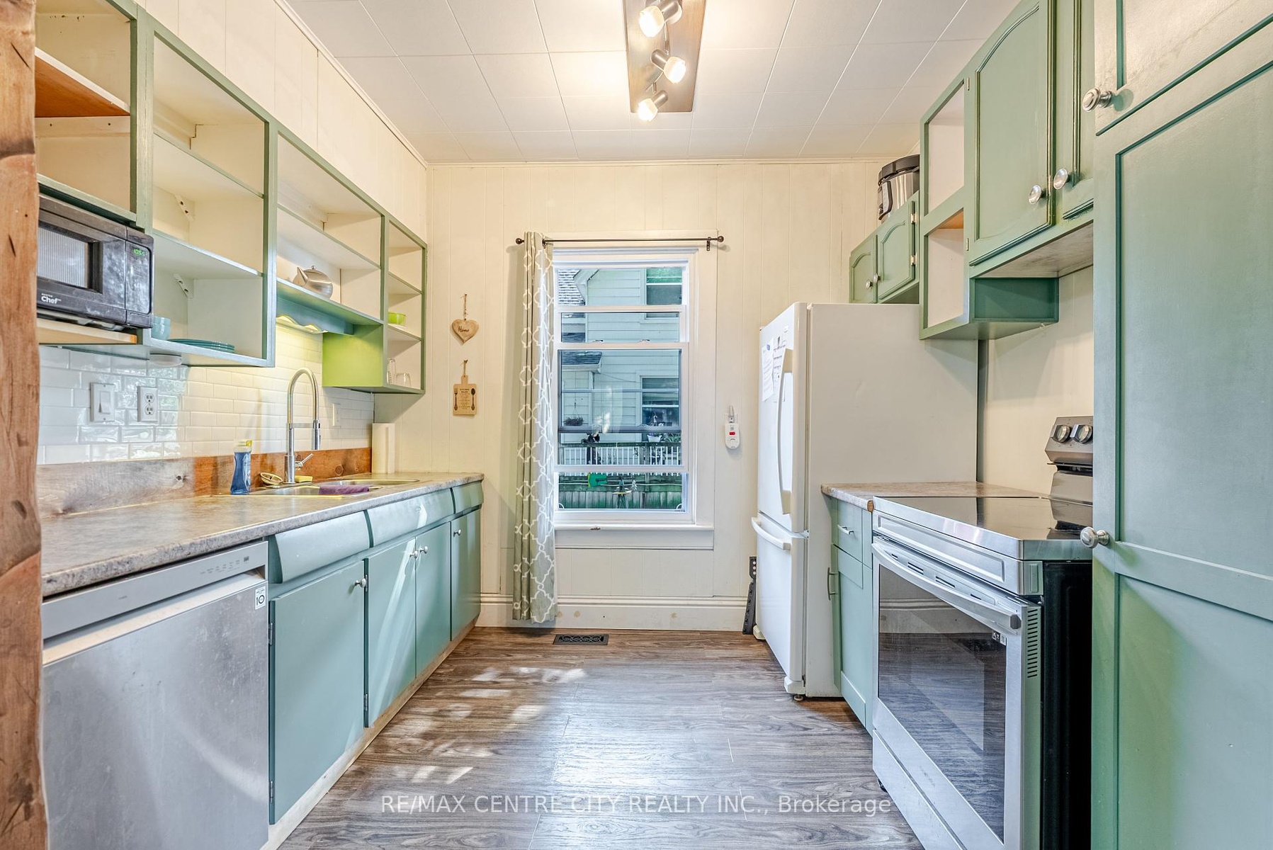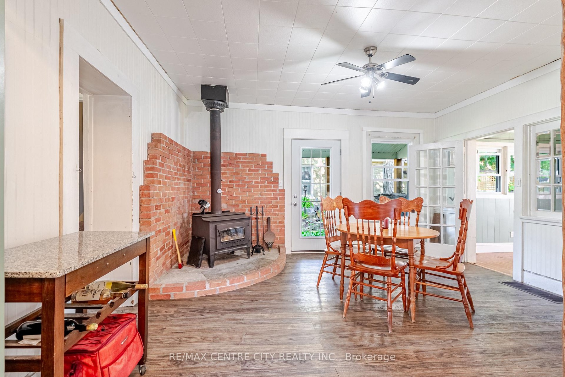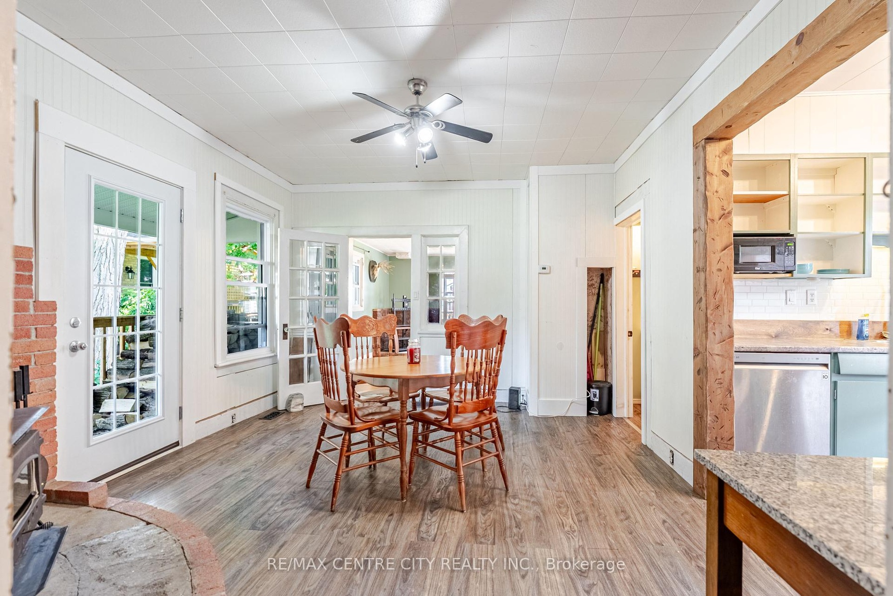 The ideal starter home! This 3 bedroom, 1 bath home is centrally located in a historic section of Aylmer and is easily walkable to shopping, schools, churches and parks. The living room overlooks the backyard or you can enjoy the view from the new deck. If you've been looking for a shop, look no further! This property comes complete with a double bay garage/shop with hydro. The yard is fenced however, the shop is easily accessed via the drive through gate. Many recent updates have been completed for you, including: windows & doors, soffit and fascia, all decks/porches, exterior light fixtures updated and outlets added, new subfloor and flooring, kitchen refreshed including new backsplash and fixtures, bathroom updated, plumbing to kitchen and bathroom fixtures updated. A lean to has been added to the shop, perfect for boat or car trailer storage. Dining room woodstove WETT inspected in 2020.