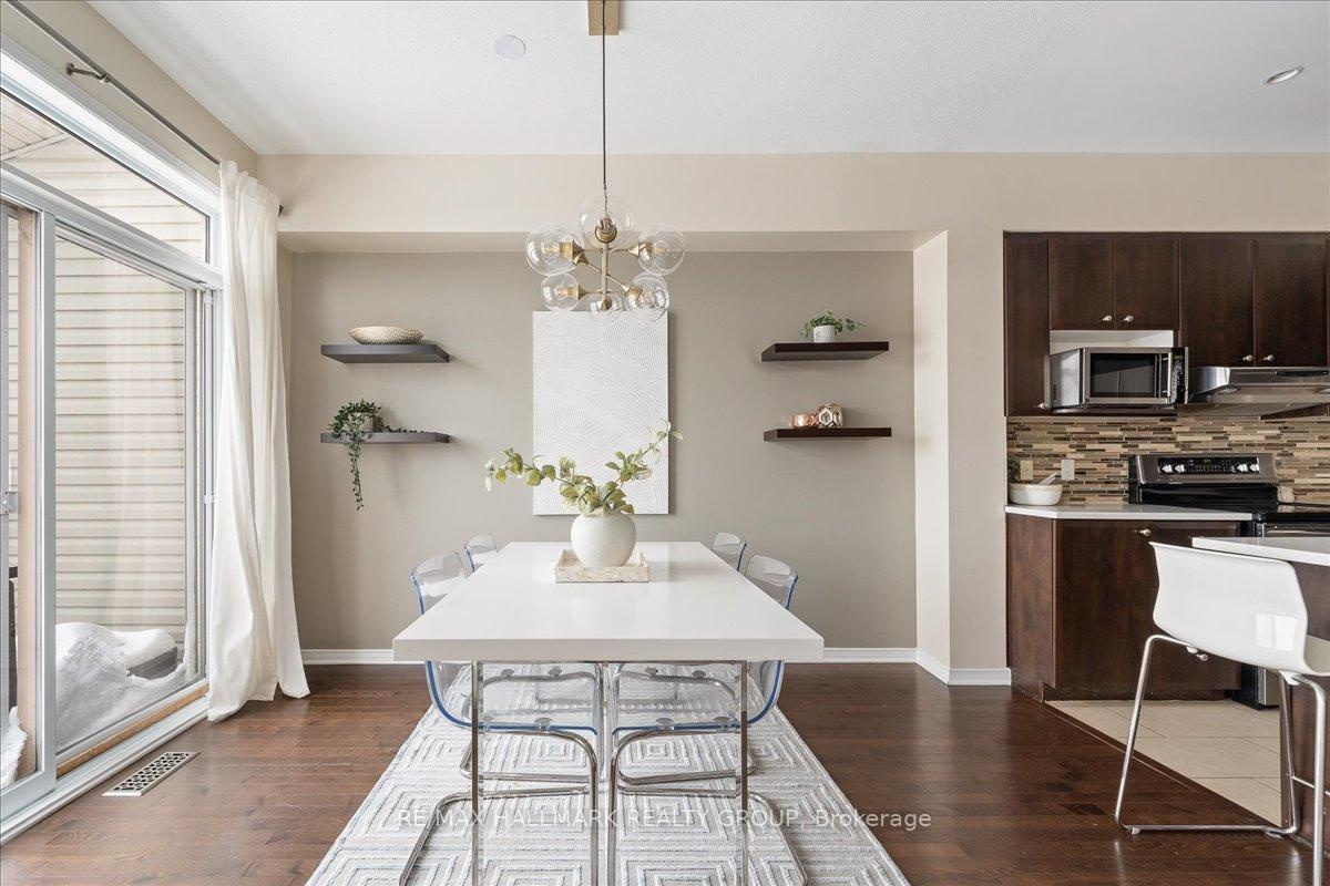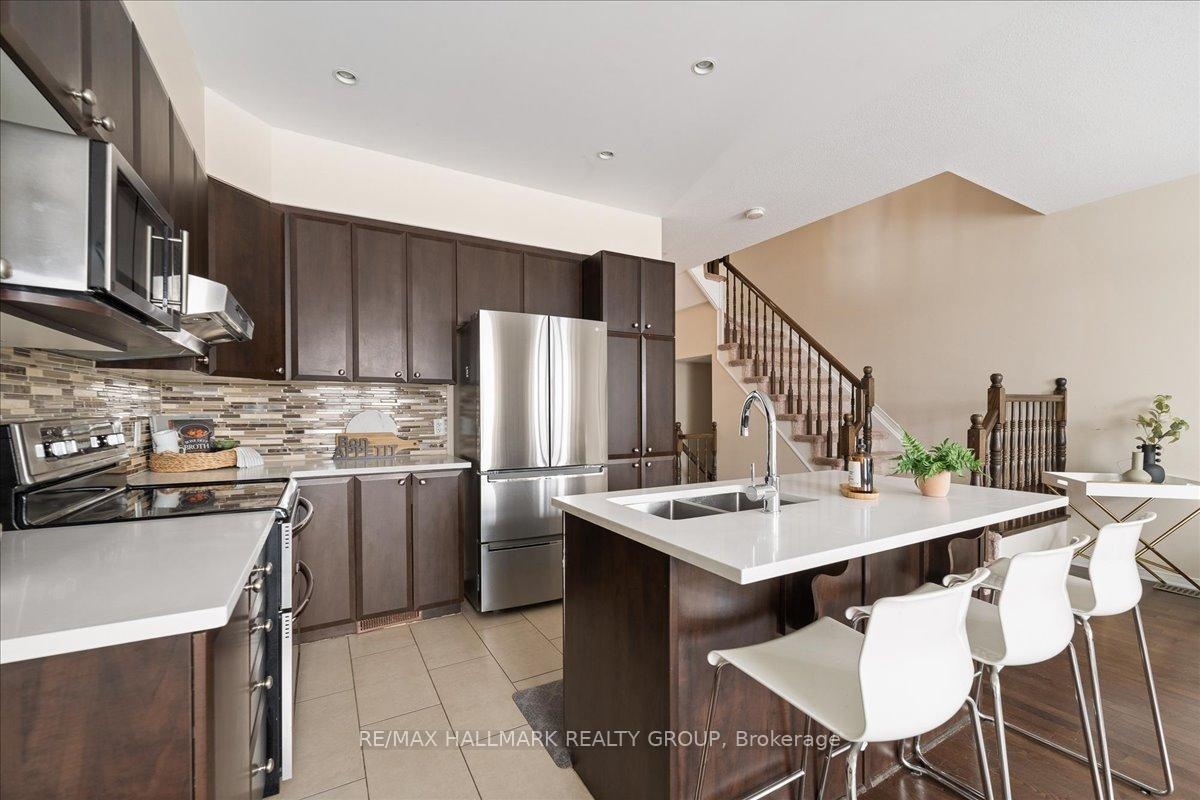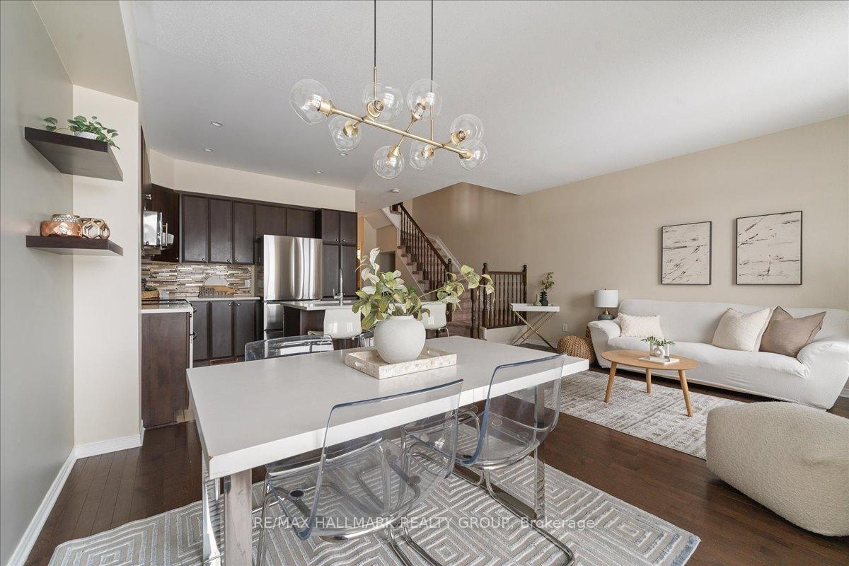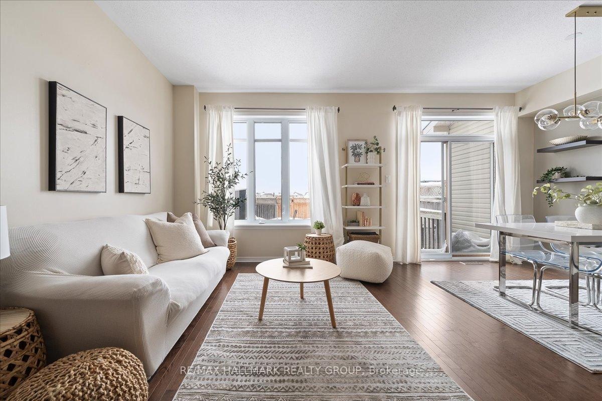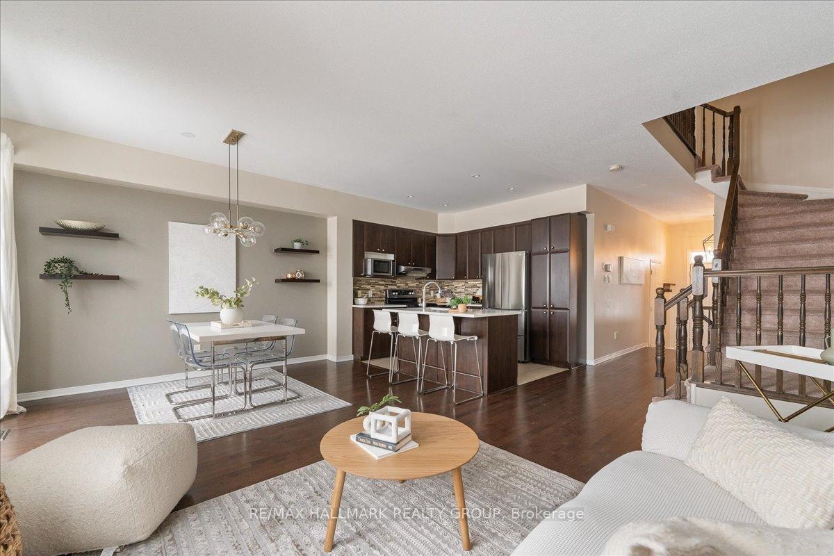 Welcome to this charming 3-bedroom, 2.5-bathroom home located in the sought-after Notting Hill neighborhood of Orleans. The main floor boasts 9-foot ceilings, hardwood flooring (refinished September 2025), and an open-concept layout, seamlessly connecting the kitchen with quartz countertops, dining, and living areas perfect for both everyday living and entertaining. Enjoy the comfort of central air conditioning to keep you cool during the summer months, and the convenience of a central vacuum system to make cleaning a breeze. Upstairs, you'll find three spacious bedrooms, including a comfortable primary suite. The lower-level rec room offers additional living space, complete with a cozy fireplace ideal for movie nights or a relaxing retreat. Step outside to enjoy the backyard deck, perfect for summer entertaining, along with a small shed for extra storage. With no front or rear neighbors, you'll love the added privacy and peaceful surroundings. This home is conveniently located within walking distance to elementary and high schools, grocery stores, coffee shops, and restaurants. Don't miss out schedule your viewing today!