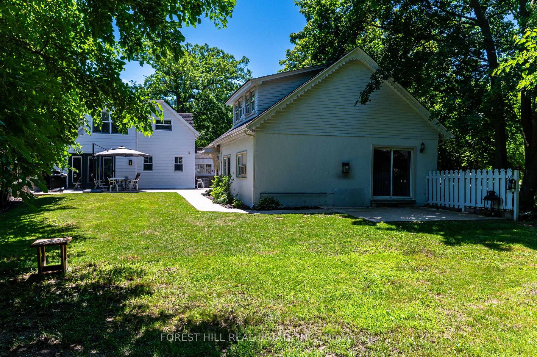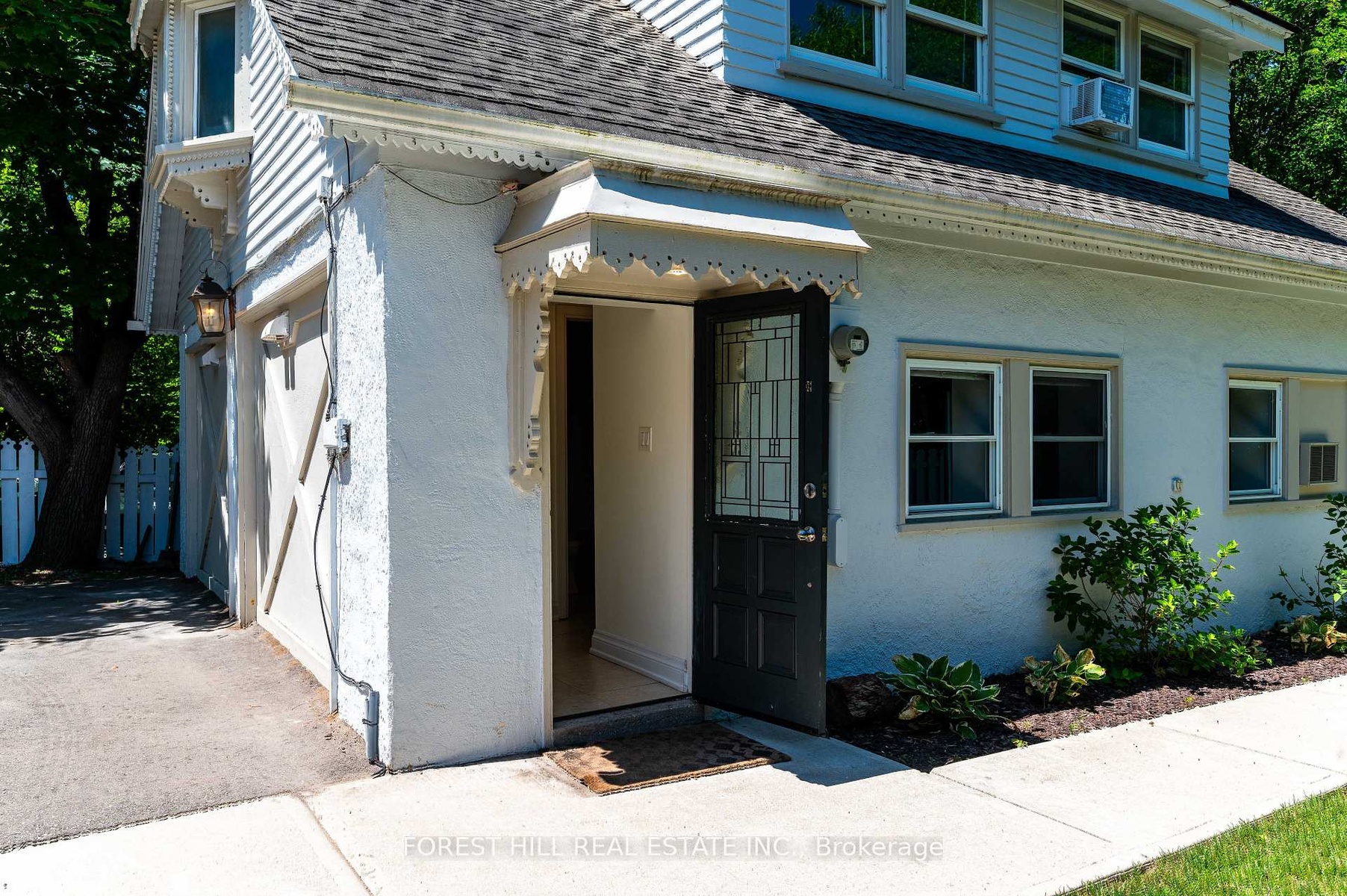 Beautiful & charming century old coach house. Tastefully renovated with new hardwood floors, new kitchen, white cabinets, white subway backsplash tiles, stone counters with bar stool seating & S/S appliances. Modern open concept layout with gas fireplace and sliding doors to large rear yard! The unit has an Ensuite laundry, 4pc renovated main floor washroom & second level with 2 bedrooms and a 3pc white washroom. Window A/C unit provided, gas/hydro extra. Must see, very unique a spacious property!