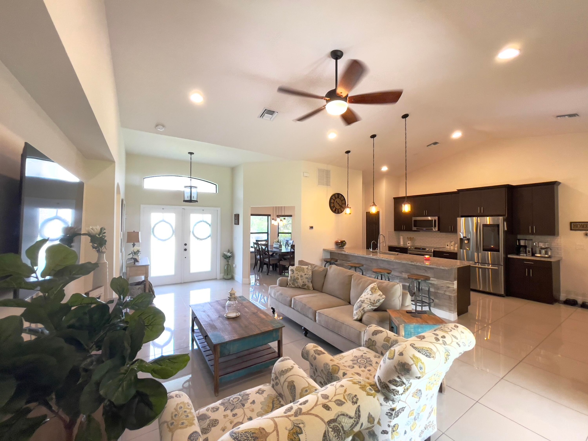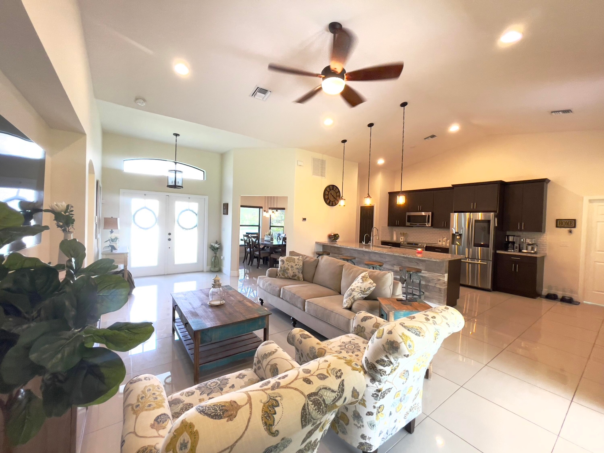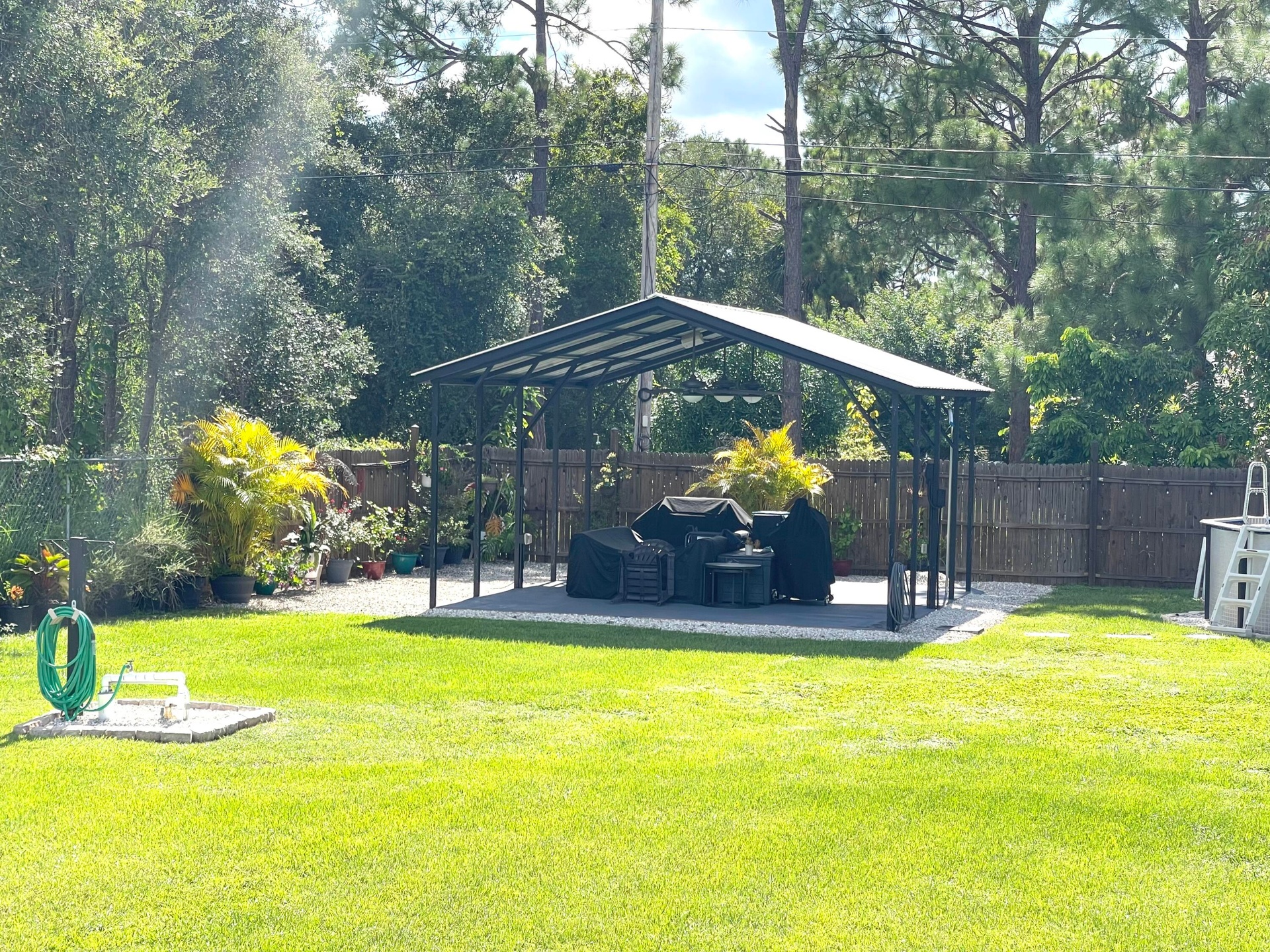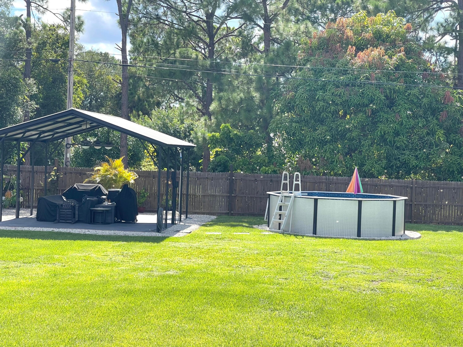 DescriptionLOTS OF UPGRADES!!! Beautifully maintained, Immaculate 3 bedroom 2 bath 2 car garage & loft home situated on a half-acre lot, it has a fenced backyard with privacy entry in the back, a huge gazebo, a shed ( for additional storage) a 15 feet above ground pool ( for family & friends entertainment) spacious backyard, spacious master bedroom with access to the lanai, walk-in closets, separate shower & tub, granite counter top, brand new stainless steel range and dishwasher, updated light features & ceiling fans, interior and exterior has been freshly painted, porcelain tile throughout, screened lanai, camera, alarm ring system, irrigation system, Roof 2022, HVAC inside unit 2022, HVAC outside unit 2023 (both unit has 10 years warranty from the date of purchase) This home is a MUST SEE...
