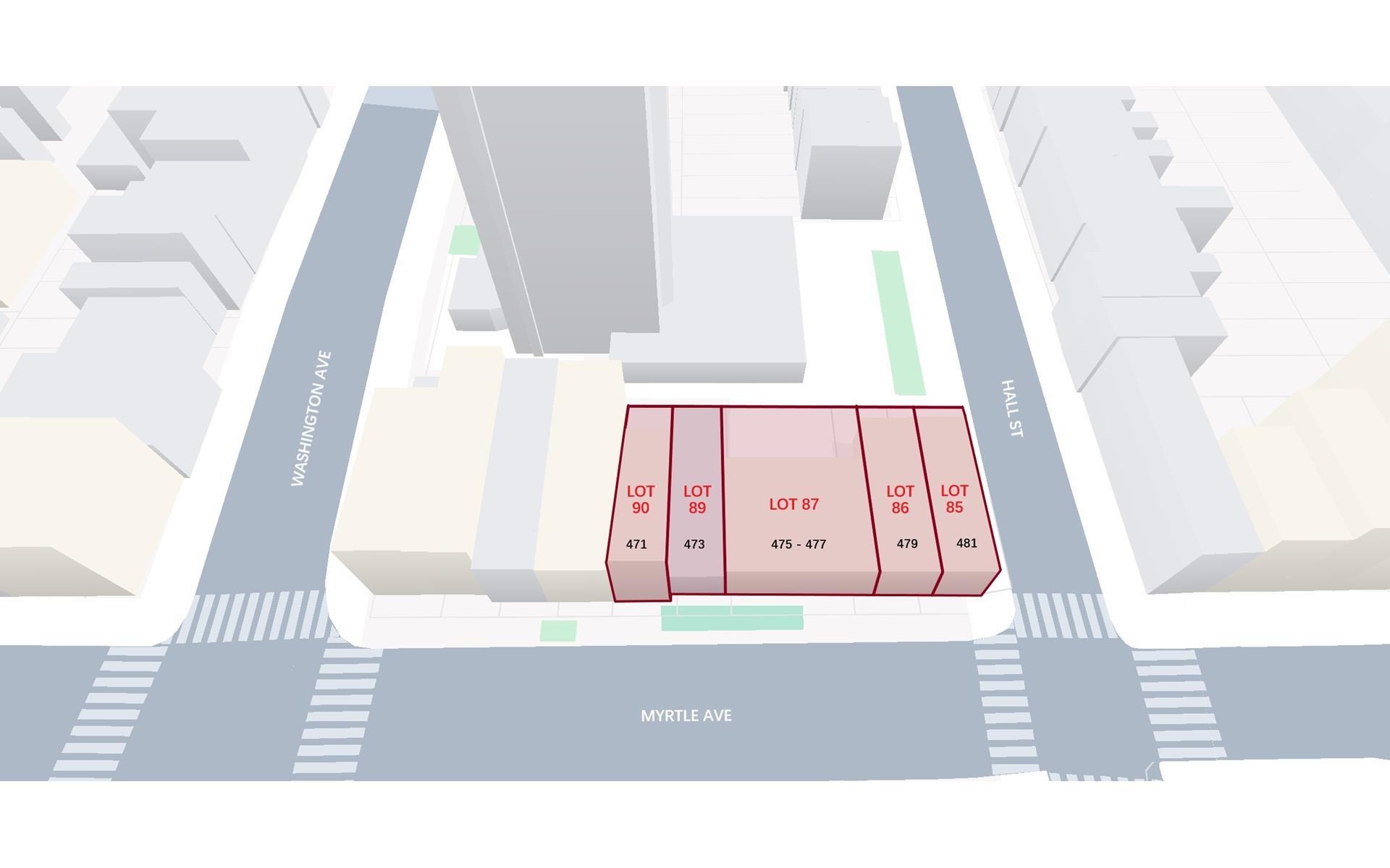 DescriptionDouglas Elliman, as exclusive agent, is thrilled to offer for sale an INCREDIBLE DEVELOPMENT OPPORTUNITY; In offering the assemblage of 471, 473, 475-477, 479 and 481 Myrtle Avenue, Clinton Hill Brooklyn. These Five buildings represent a large contiguous offering (all same ownership) to develop a singular 9 story property along Myrtle Avenue cornering on Hall Street in the prime Clinton Hill neighborhood of Brooklyn. This presents a development opportunity to construct a 9-story mixed use of approximately 60,000 +/- Gross SF property (including cellar) of residential with ground floor retail space. The Property is located within one block of Pratt Institute of Technology. This is a rare opportunity to develop a newly constructed mixed-use property to high standards. The property is partially tenanted with residential and retail space. There is current reoccurring income until development plans are in place. Setup available upon request.