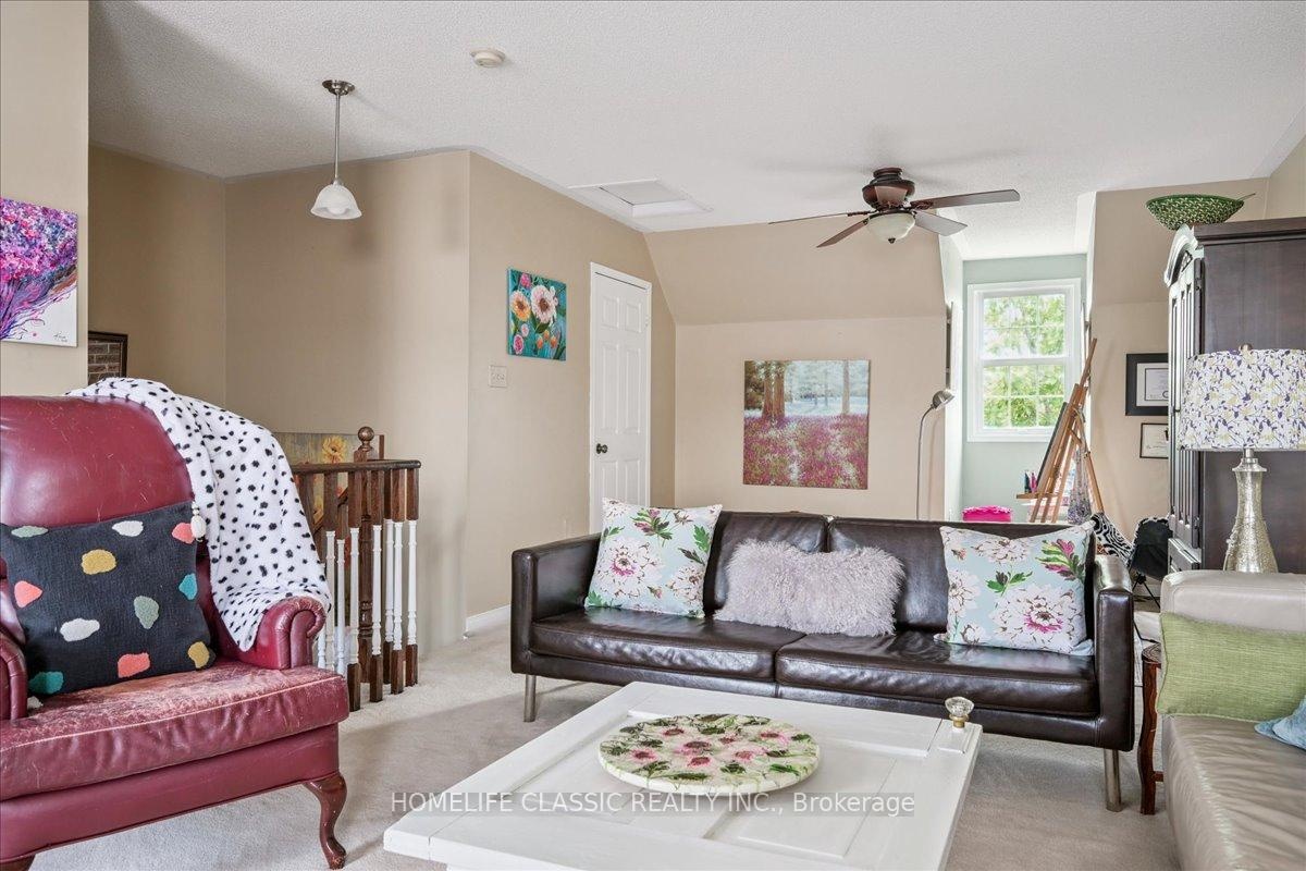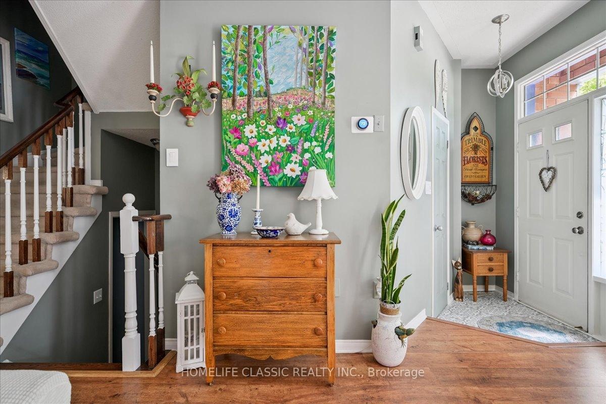 Welcome to one of the most charming and well-maintained homes in Oak Park, River Oaks a property that reflects pride of ownership and a lifetime of care. This beautiful south-facing home, with no front neighbors, overlooks a scenic park complete with baseball diamonds, a splash pad, soccer fields, and walking paths leading to gorgeous wooded trails. Both public and Catholic schools are just steps away, making this an ideal family-friendly location. From its charming curb appeal to your first step inside, you'll find rich barn board flooring and soaring 9-foot ceilings framing a spacious living room and open kitchen with eating area, leading to a private backyard oasis perfect for enjoying your morning coffee beneath a custom-built wooden pergola. Upstairs, three bright and inviting bedrooms include a primary suite with a walk-in closet and private ensuite. Just a few steps above, a generous upper-level loft stretches the entire length of the home, complete with a cozy gas fireplace and two large walk-in closets ideal as a second living space, home office, or fourth bedroom. The finished basement offers even more living space, perfect for a media room, play area, or home office, along with ample storage and a dedicated laundry room. Additional features include a two-car garage with plenty of storage. This home is move-in ready, impeccably maintained, and brimming with charm a truly unique and heartfelt place to call home.