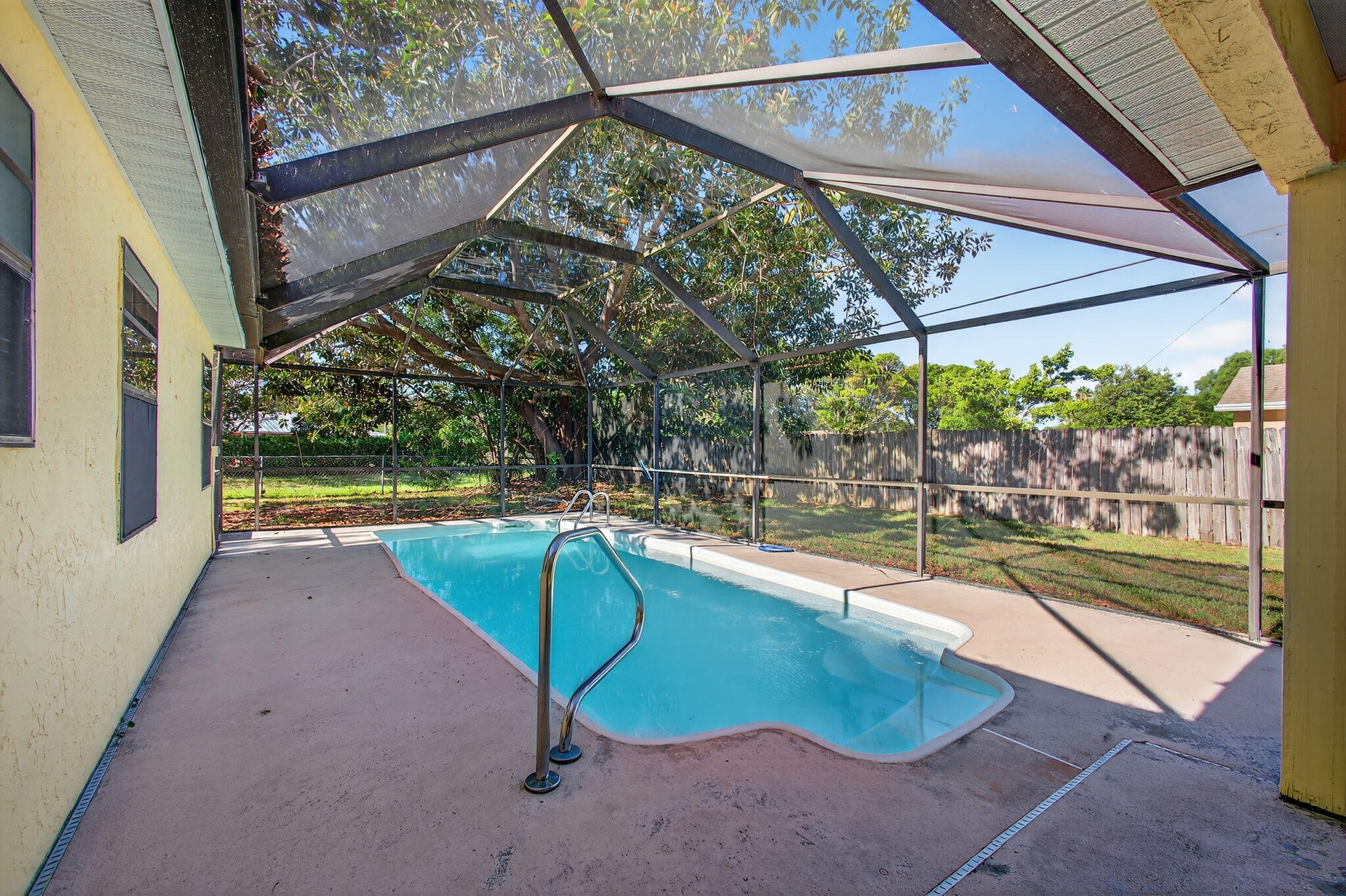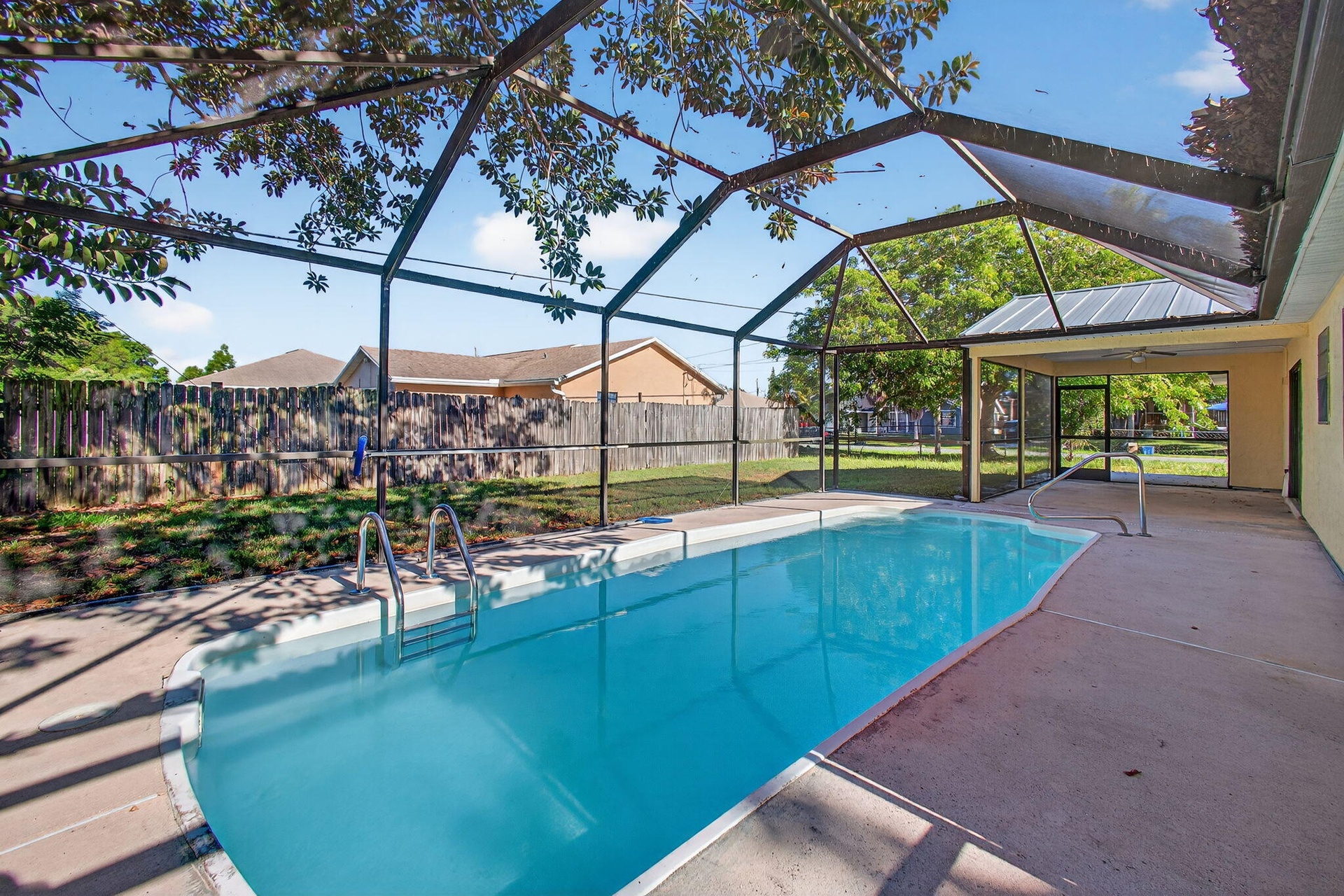 Great opportunity to own this 3 bedroom 2 bath 1 car garage pool home on a large corner lot. Newer metal roof in 2024, plus brand new quartz countertops installed in the kitchen. Tile flooring in the living areas and laminate in the bedrooms. Spacious living room with sliders leading to covered and screened pool area perfect for entertaining. Located close to beaches, restaurants and shopping.