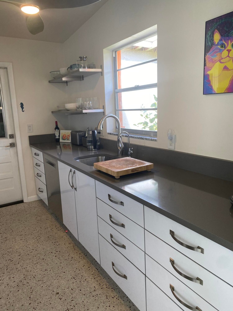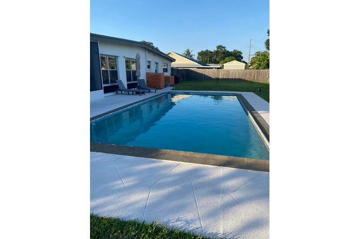 DescriptionMid-Century CBS modern home with 21st-century enhancements. No HOA, no restrictions. Desirable Vero Shores safe neighborhood, only five miles from the beach. Full hurricane protection includes shutters and custom hurricane garage doors.15X30 heated saltwater pool (2020heat pump, 2018energy-efficient V/S pool pump, 2024 saltwater system) Screened porch with ceiling fan overlooking large fenced backyard. Terrazzo floors throughout, renovated kitchen: gas range, SS appliances, custom cabinets, r/o filtration, pantry, laundry room. Features high ceilings-bright airy interiors. Electric updated:200amps/2020, insulated 2-car garage, 2018 Main H20 line repiped w/new shut-off valve. Located close to shopping, pharmacy, gas, and groceries. Live the Florida Dream! Rmsizeapprox.