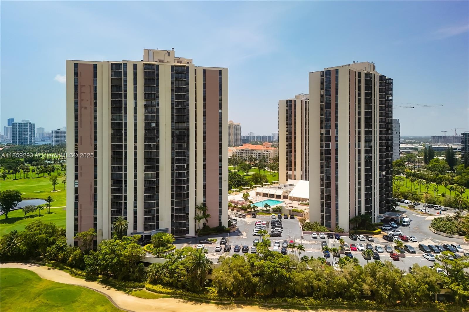 Step into this beautifully remodeled corner unit, where modern style meets comfort. The European-style kitchen features sleek custom cabinetry, stainless steel appliances, and brand-new range and refrigerator. Fresh paint, new motorized blinds, and top-quality impact windows and sliding doors add both beauty and security. The split bedroom plan offers privacy, with two spacious rooms and a brand-new custom bathroom designed for a luxurious feel. A covered garage parking space and storage unit are included. Located in a gated community with 24-hour security, the building has a newly updated lobby, a resort-inspired pool, and a fitness center. Surrounded by the greens of the prestigious Marriott Turnberry Resort and just a short stroll to Aventura Mall