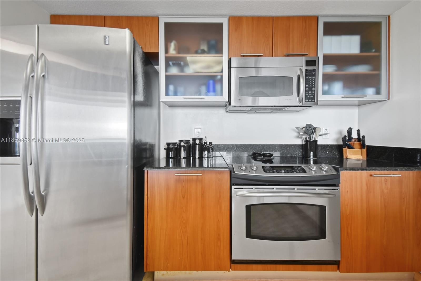 This bright and spacious unit features high ceilings, marble flooring, and stainless-steel appliances throughout. Enjoy stunning, unobstructed views of Biscayne Bay and Margaret Pace Park; views that will never be blocked. Convenience is key with assigned parking located on the same floor as the unit.