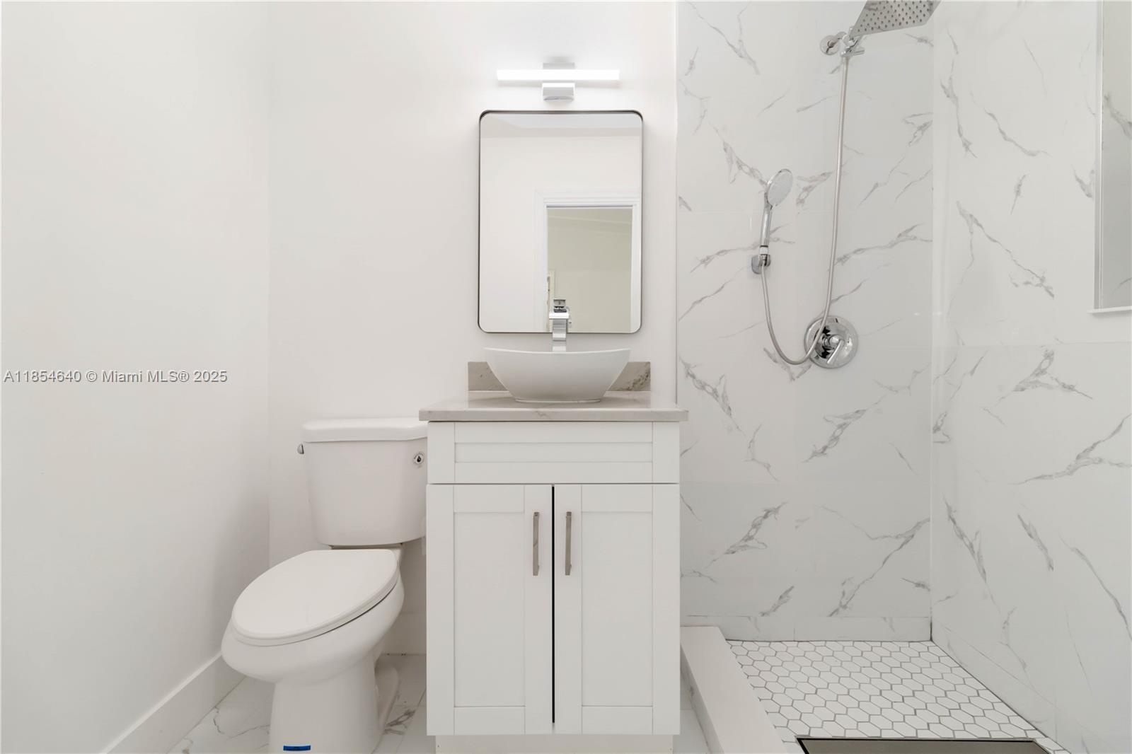 This home features a spacious, open living area with a sleek modern design in timeless white and gray tones. The brand-new kitchen boasts custom cabinets, quartz countertops, and stainless steel appliances. Bathrooms are tastefully remodeled with a fresh, contemporary style.