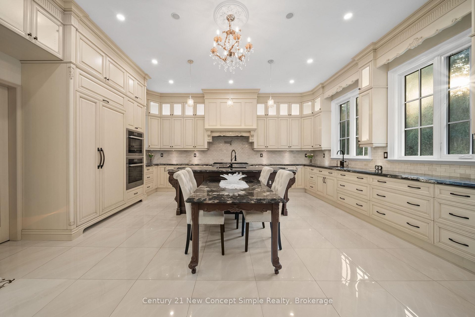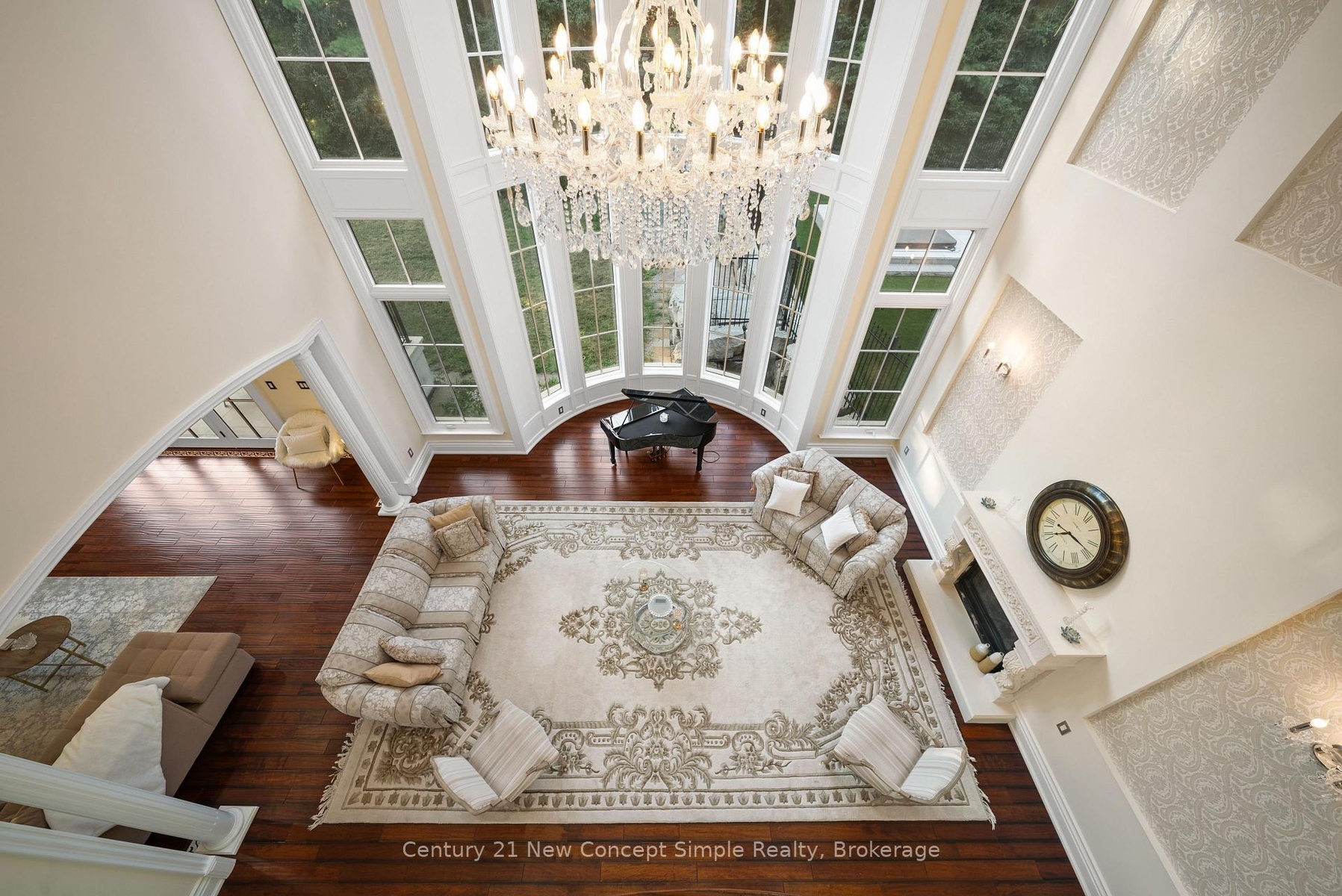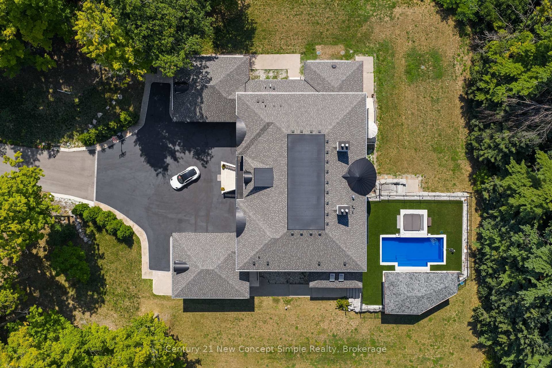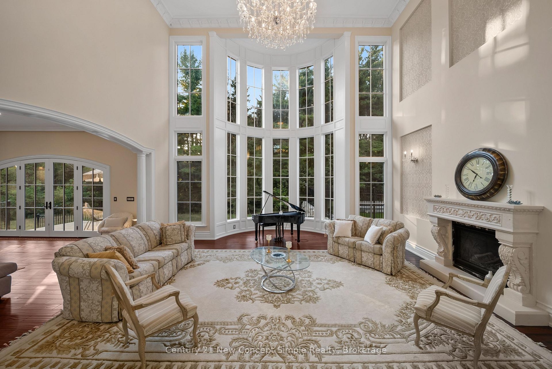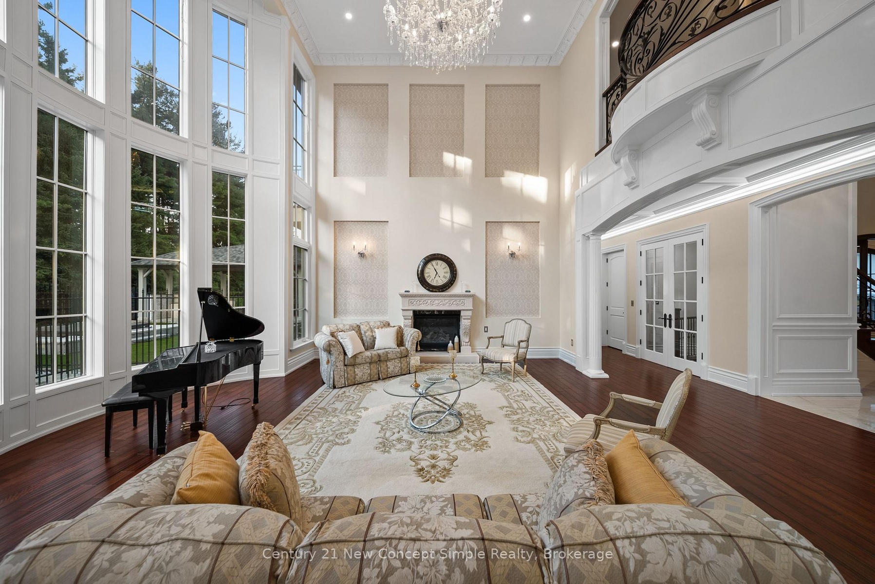 Set on 2.4 acres atop Burlington's Bluffs, this gated stone-clad estate offers more than 11,000+ sq. ft. of living space, uniting enduring strength with graceful design. Built to endure for generations, it blends permanence with refined elegance. Among its discreet luxuries are two pools one basking beneath the open sky, the other sheltered indoors creating a rare duality of year-round leisure. Inside, the drama begins in a soaring 21-foot ceiling foyer, framed by a sweeping double stairwell that sets the stage for the grandeur within. A private elevator connects all levels, complementing the six-zone heated flooring that carries comfort through every room. A dedicated media room provides the perfect retreat for cinematic nights at home. Every detail, from bespoke finishes to silent floor design and reinforced construction, reflects a vision of permanence and sophistication revealed room by room. Framed by an abundance of mature trees, the property balances privacy with convenience, moments from the city's best amenities.