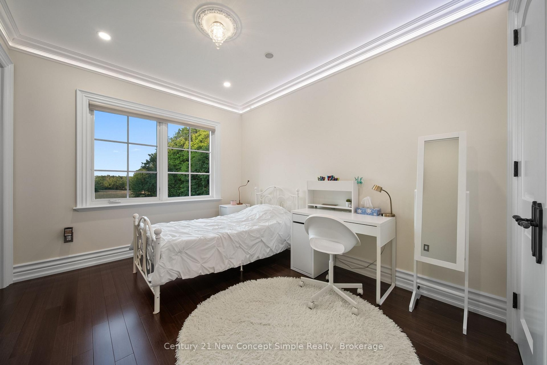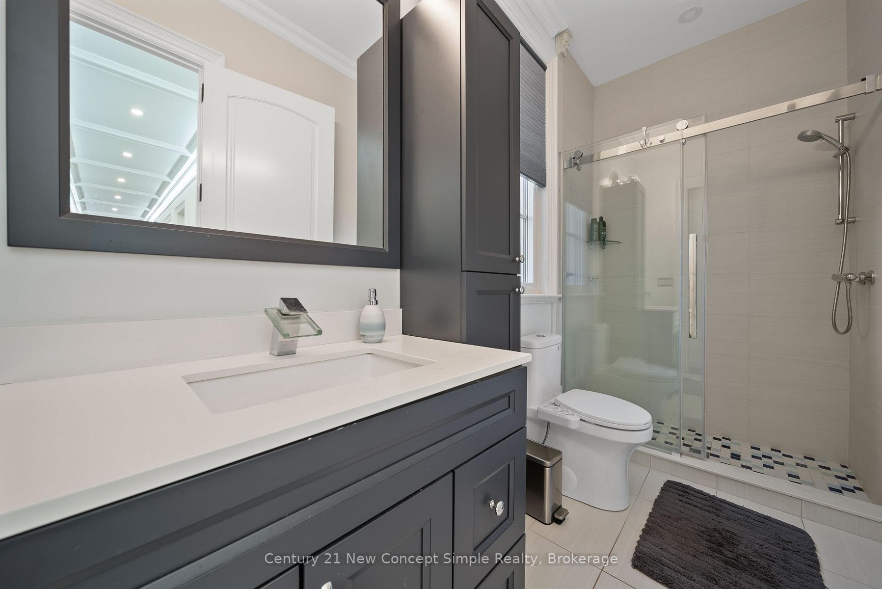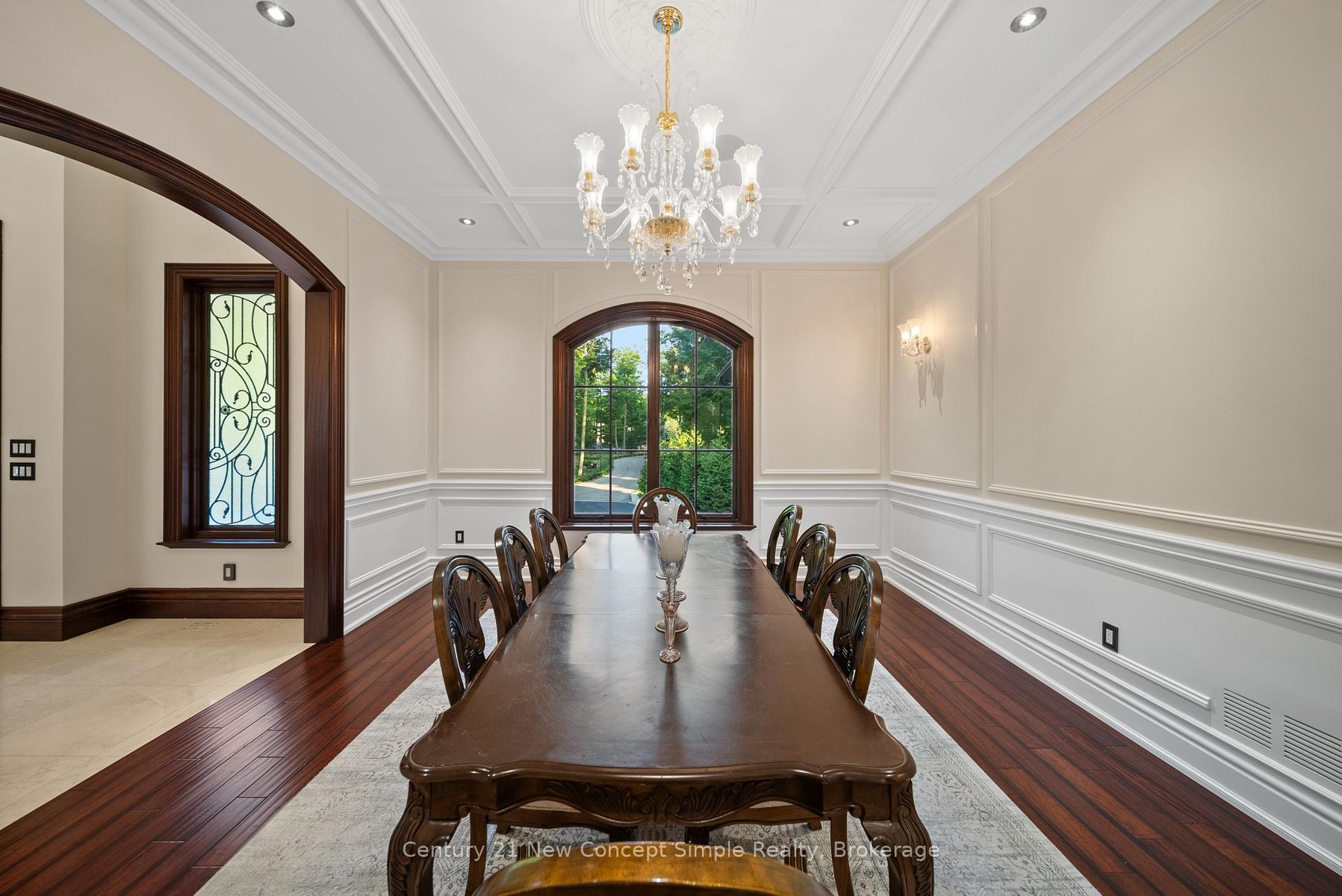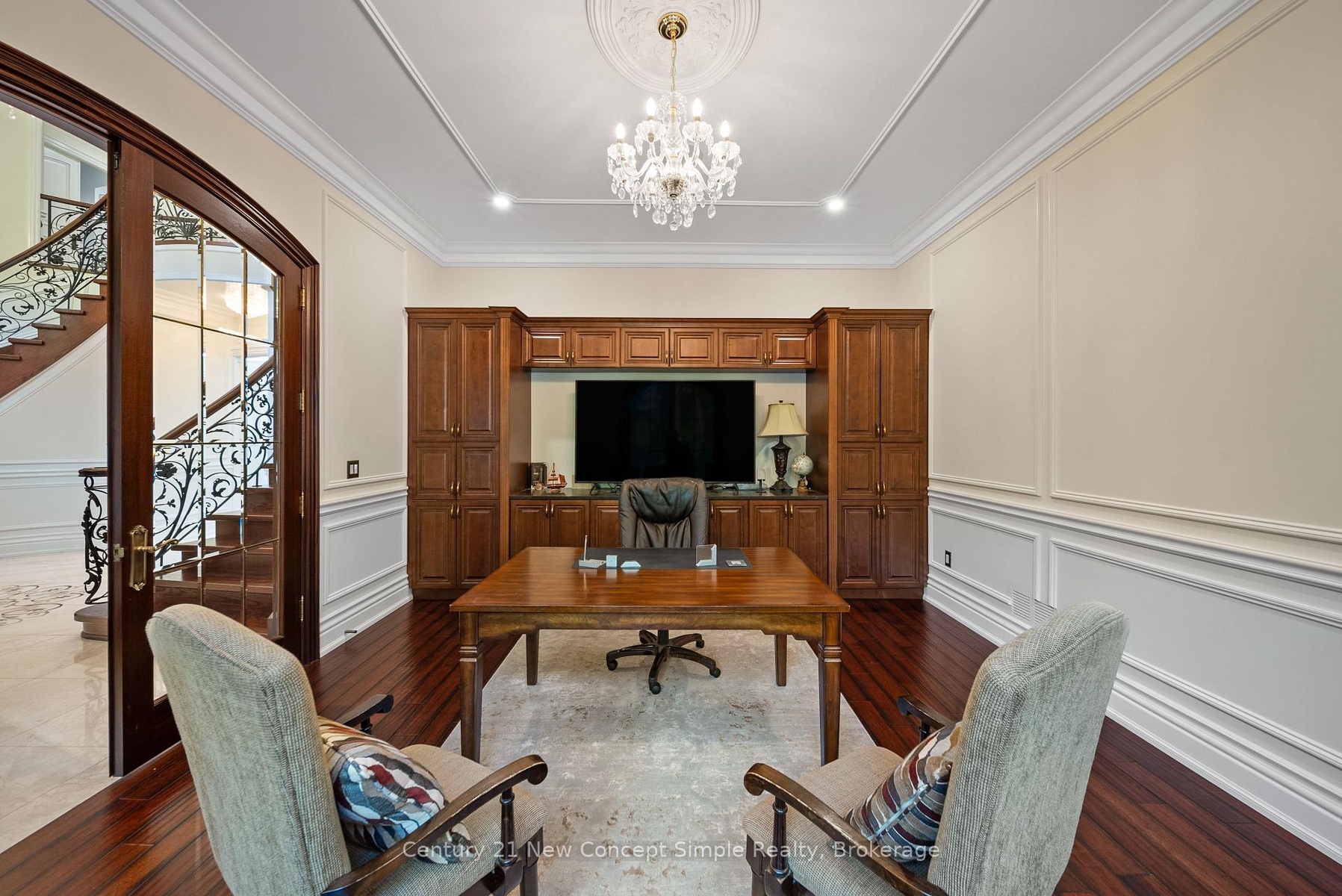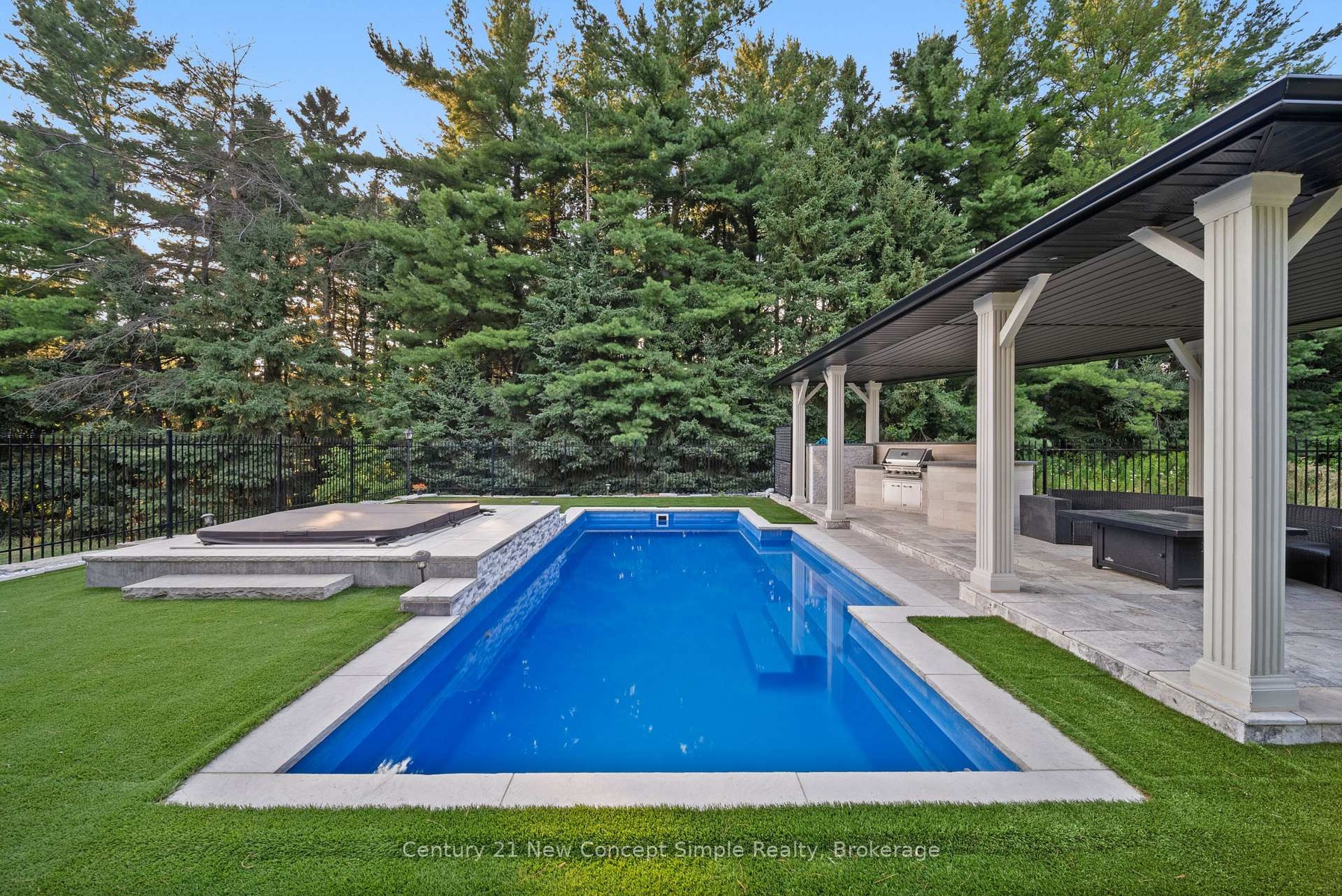 Set on 2.4 acres atop Burlington's Bluffs, this gated stone-clad estate offers more than 11,000+ sq. ft. of living space, uniting enduring strength with graceful design. Built to endure for generations, it blends permanence with refined elegance. Among its discreet luxuries are two pools one basking beneath the open sky, the other sheltered indoors creating a rare duality of year-round leisure. Inside, the drama begins in a soaring 21-foot ceiling foyer, framed by a sweeping double stairwell that sets the stage for the grandeur within. A private elevator connects all levels, complementing the six-zone heated flooring that carries comfort through every room. A dedicated media room provides the perfect retreat for cinematic nights at home. Every detail, from bespoke finishes to silent floor design and reinforced construction, reflects a vision of permanence and sophistication revealed room by room. Framed by an abundance of mature trees, the property balances privacy with convenience, moments from the city's best amenities.
