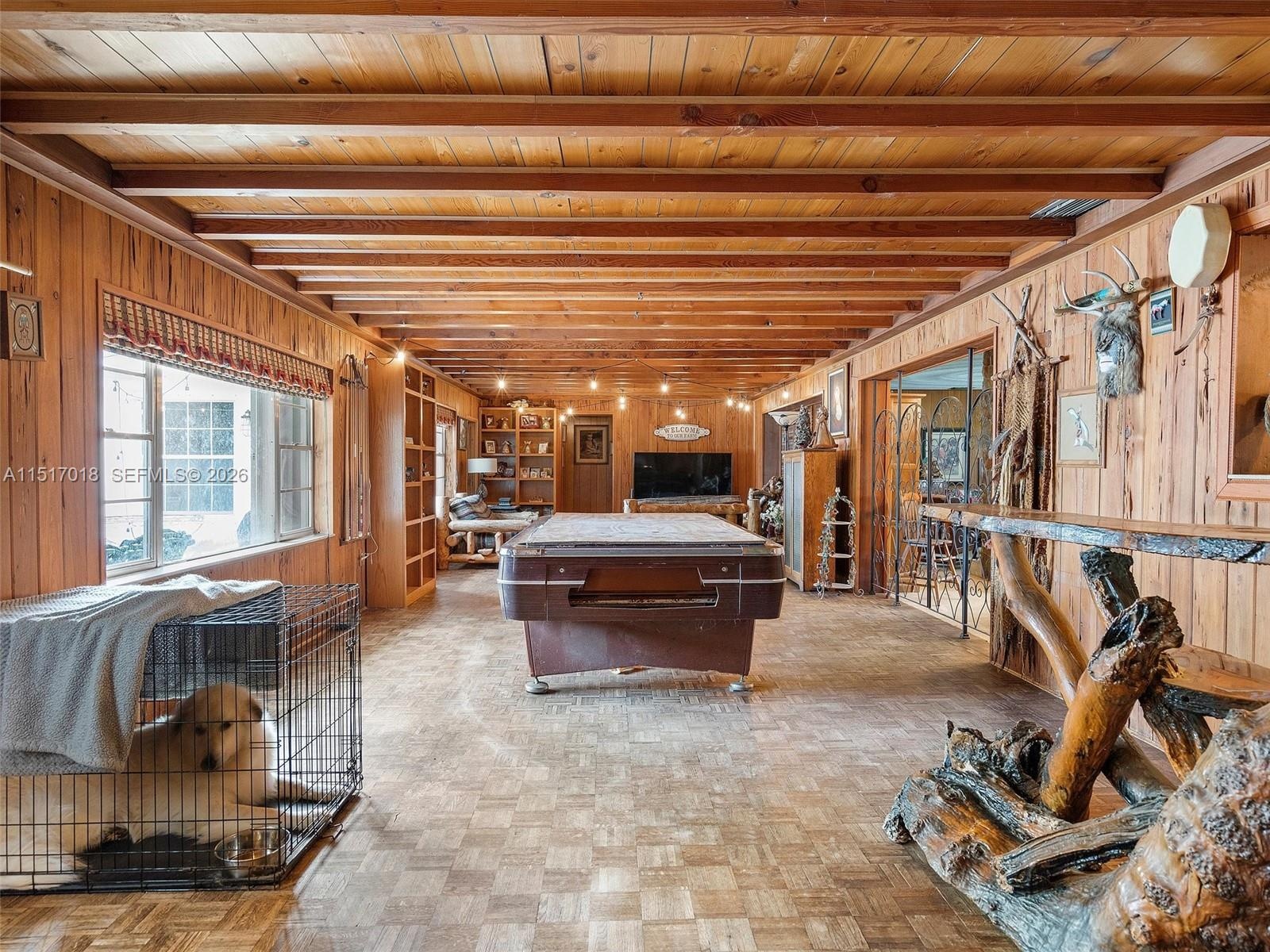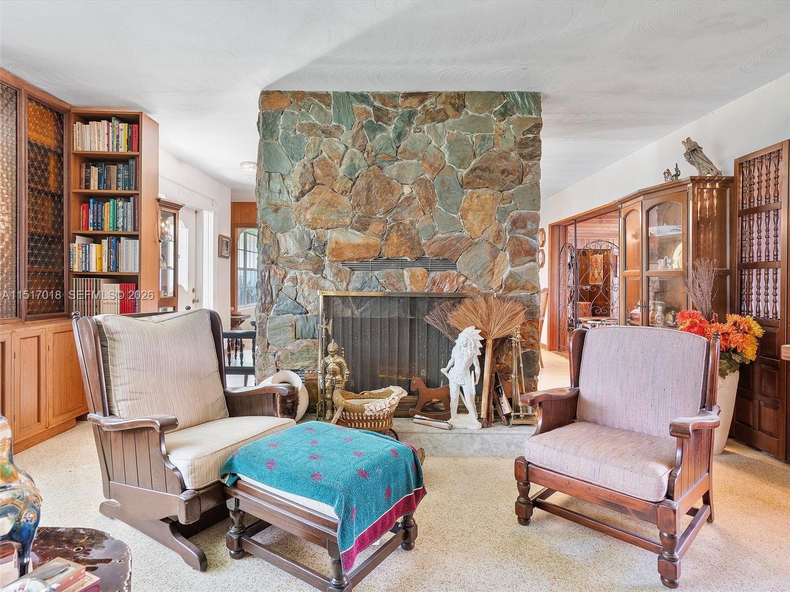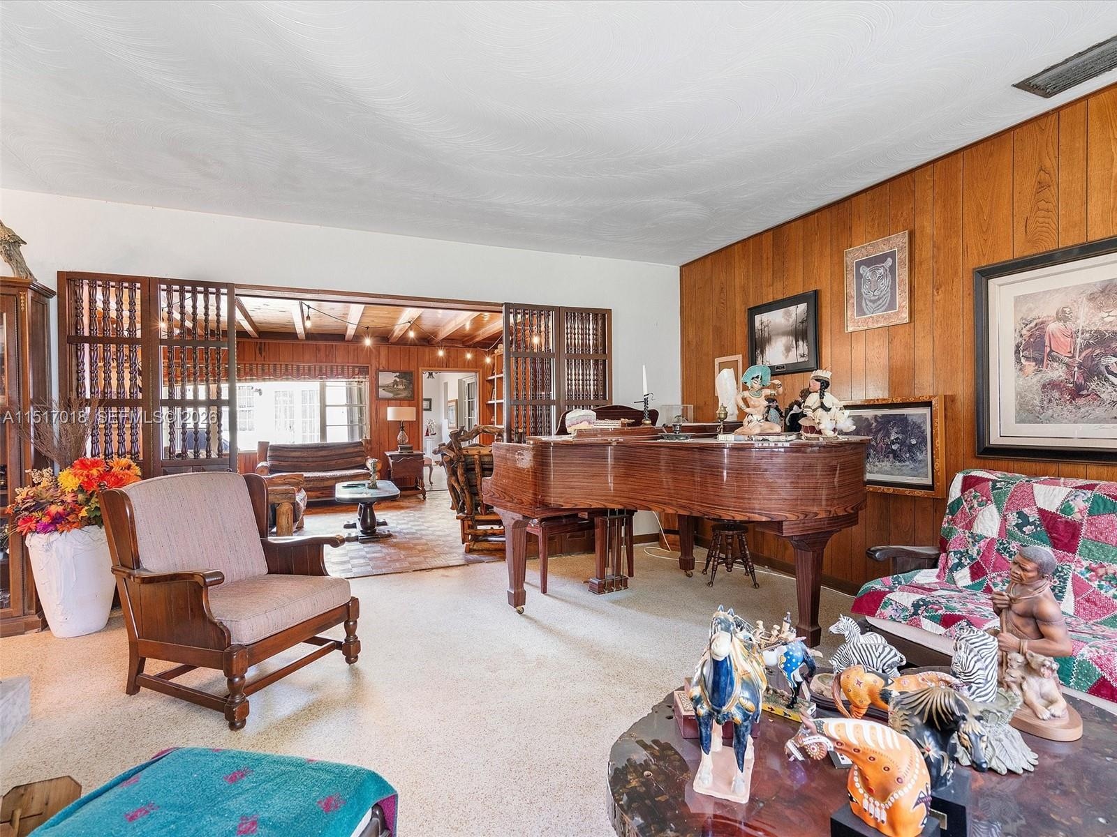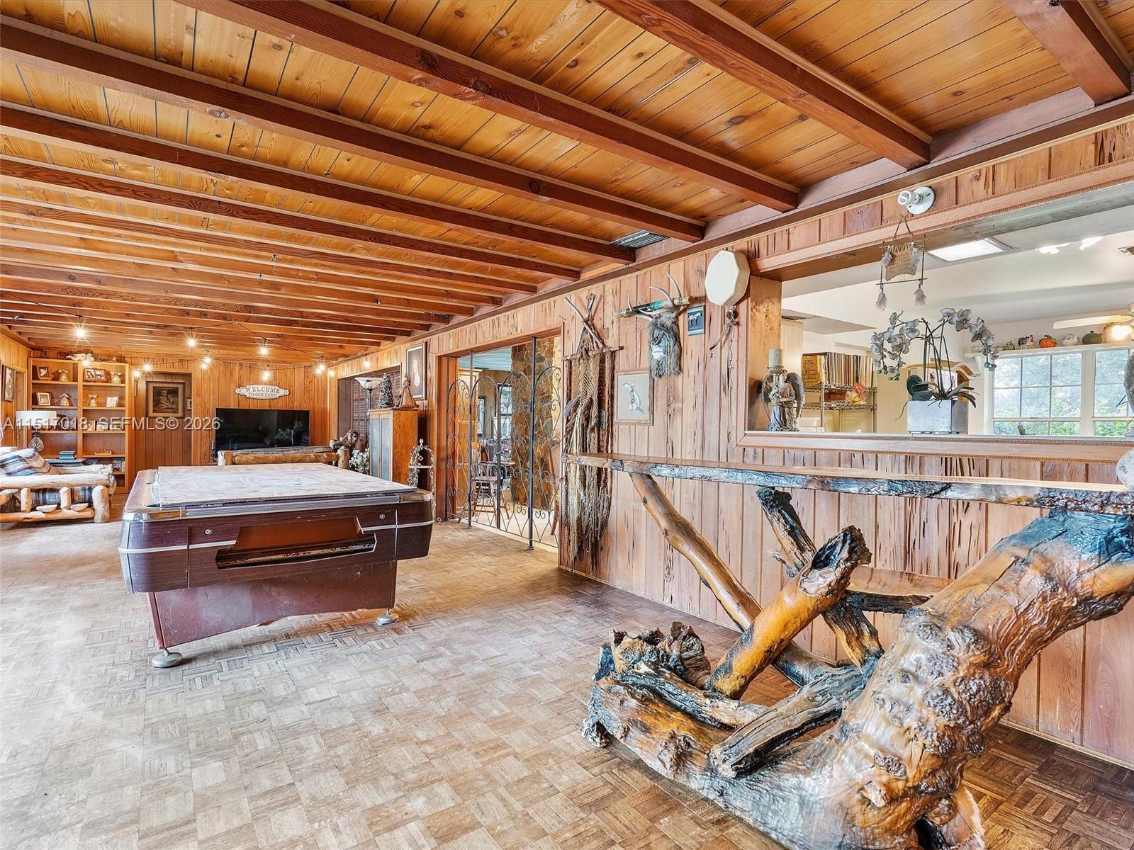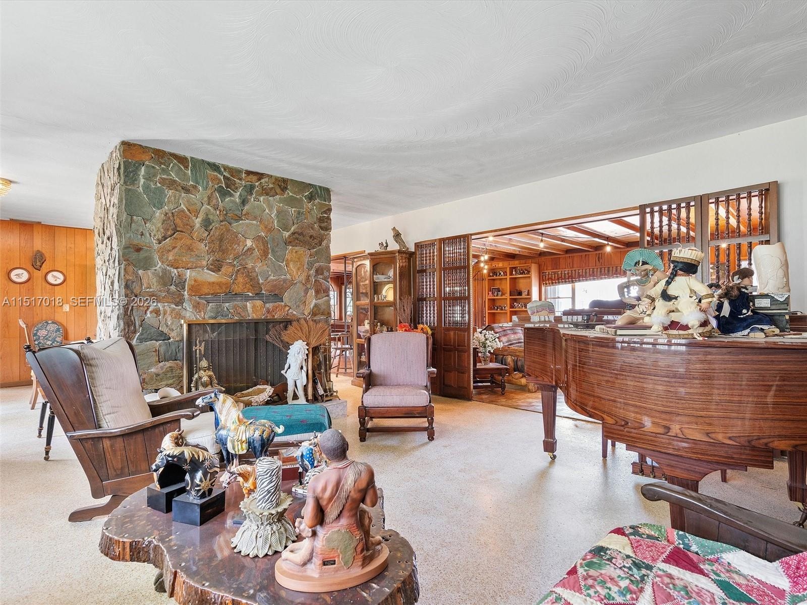 Stunning character details including pecan paneling, pecky cypress walls, and a river rock fireplace. Features a professional ballet studio, formal dining room, formal living room, and great room.