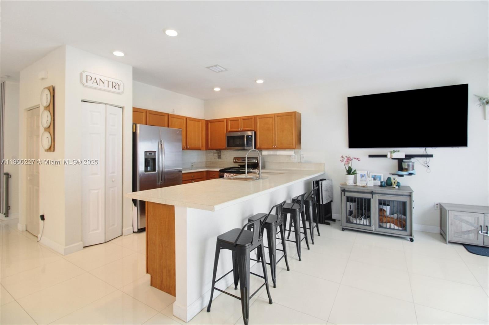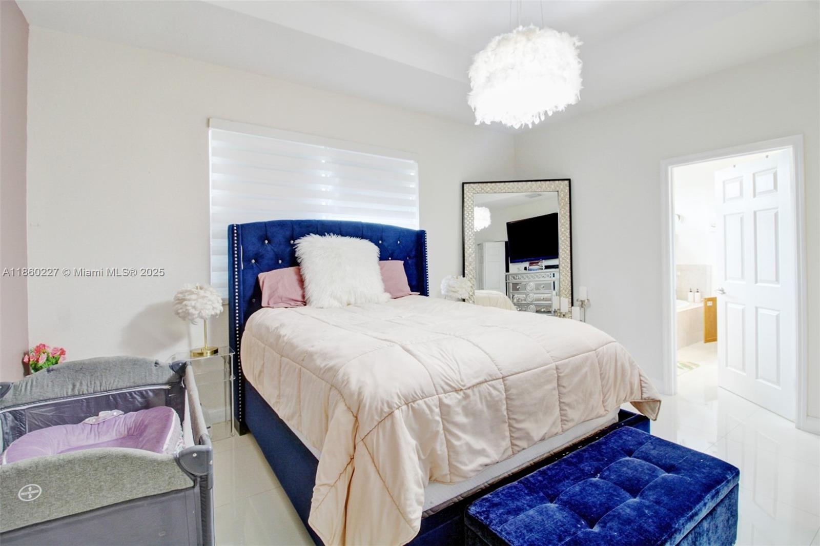 Stunning 5-bedroom, 3-bathroom home in Homestead featuring gleaming porcelain flooring throughout and a spacious open-concept layout. Enjoy the convenience of a first-floor bedroom with a full bathroom—perfect for guests or multigenerational living. The luxurious master suite upstairs boasts a private en-suite with a walk-in shower and royal soaking tub. Ideal for entertaining and family living, this home combines style, comfort, and functionality in one beautiful package! *Owner includes a 1 year American Shield home warranty for added peace of mind.*