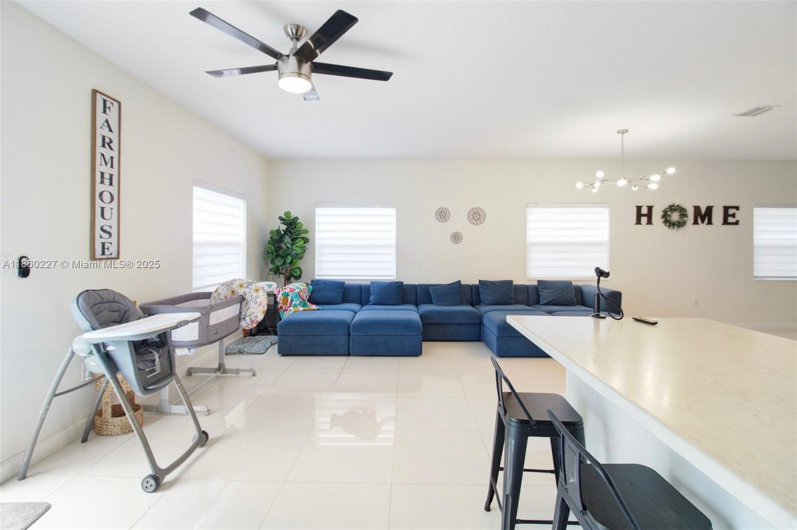 Stunning 5 bedroom, 3 bathroom home in Homestead featuring gleaming porcelain flooring throughout and a spacious open concept layout.