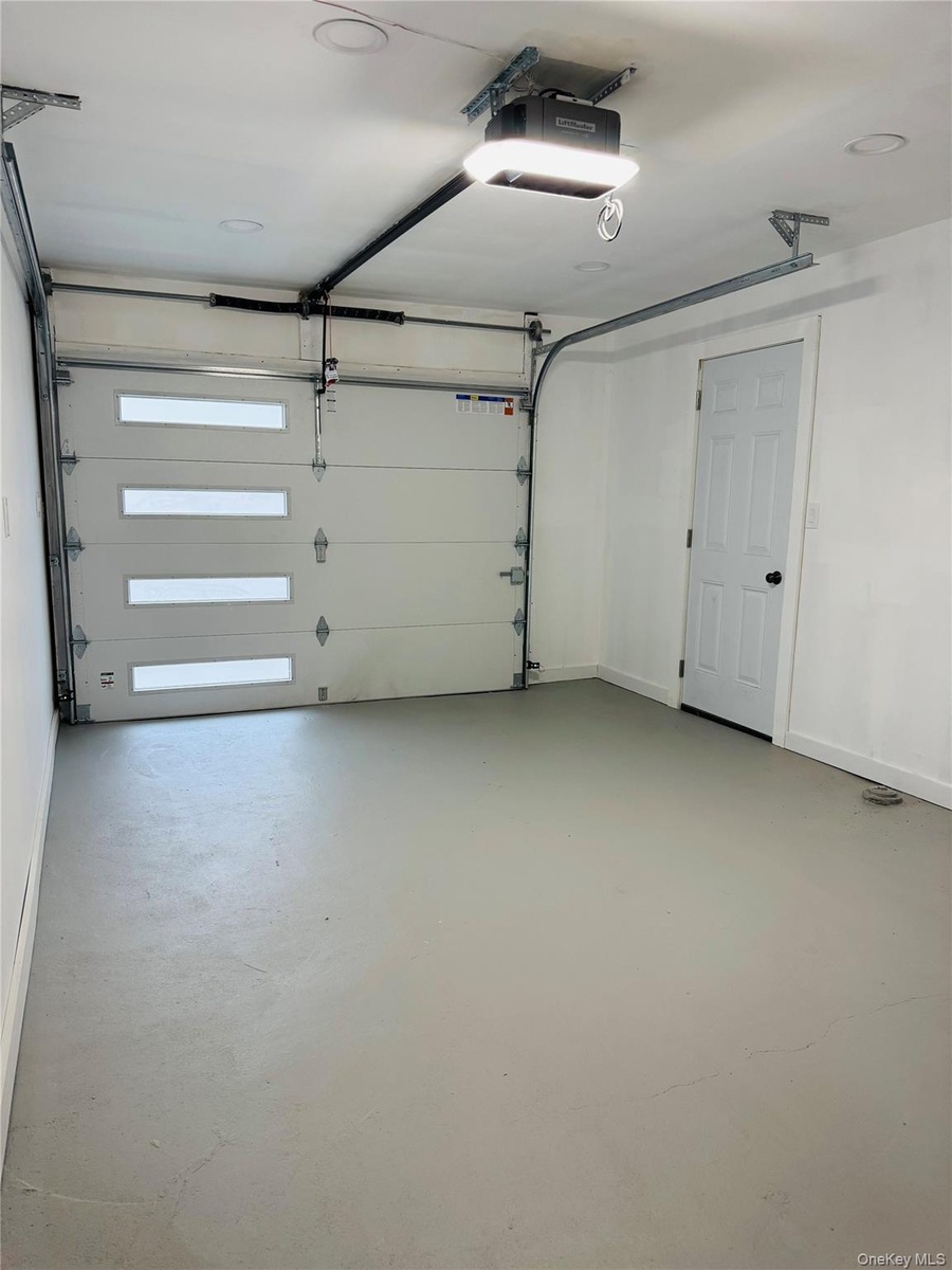 - Garage with a garage door opener and baseboards