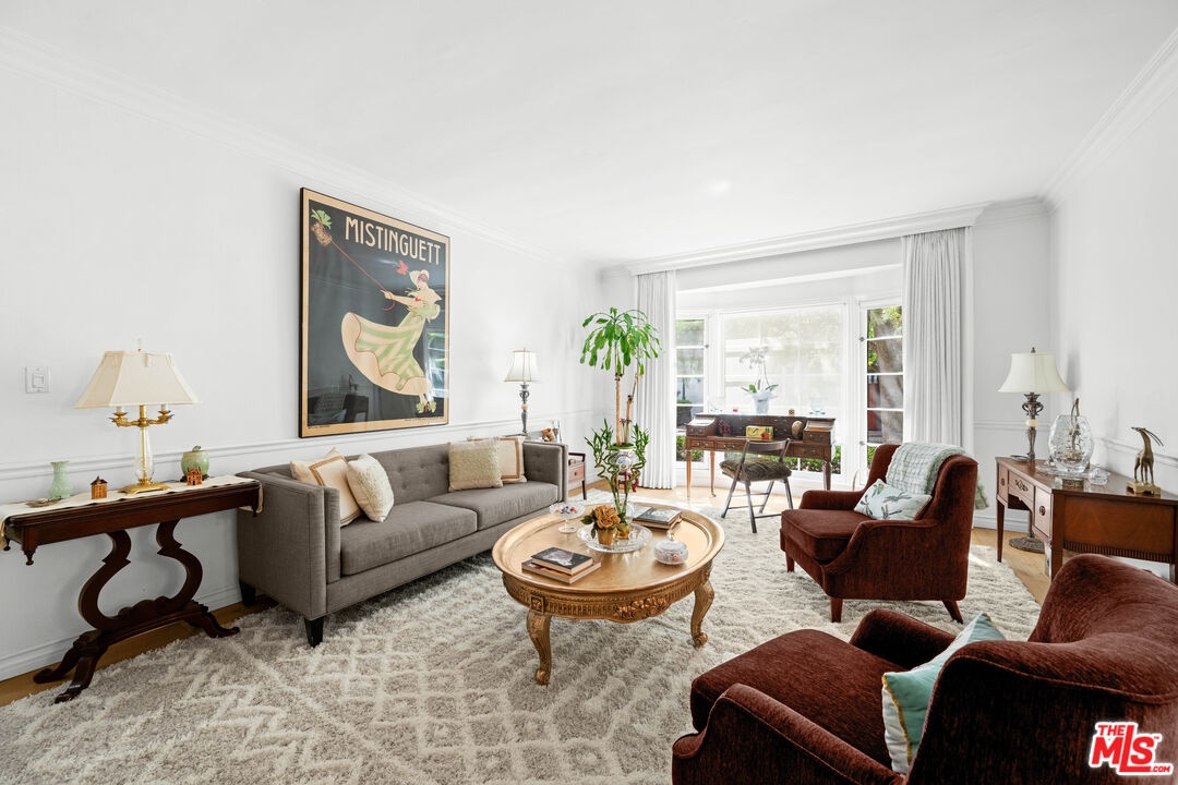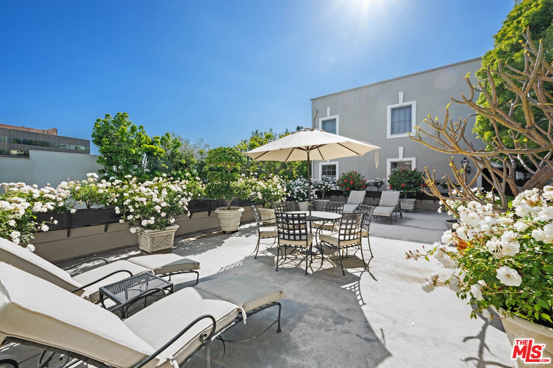 Excellent location in Sunset Plaza near restaurants and shops. Spacious, elegant and updated unit in one of the most sought after condominium buildings at the end of a cul-de-sac. Historical property with celebrity pedigree. Professionally landscaped and meticulously maintained building. Newer kitchen, appliances, renovated bathrooms, hardwood floors and window coverings. Large French windows in LR, DR and BR. with views to courtyard and fountain. Fully furnished , turn key, move in ready. Available as of September 1st. Gated building with State of the Art face recognition security entry. Two tandem covered parking spots. Only 15 units in the building.