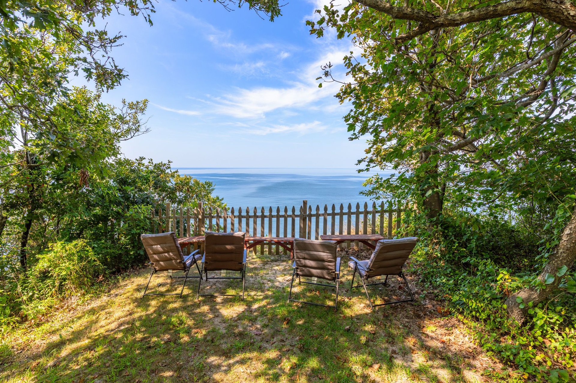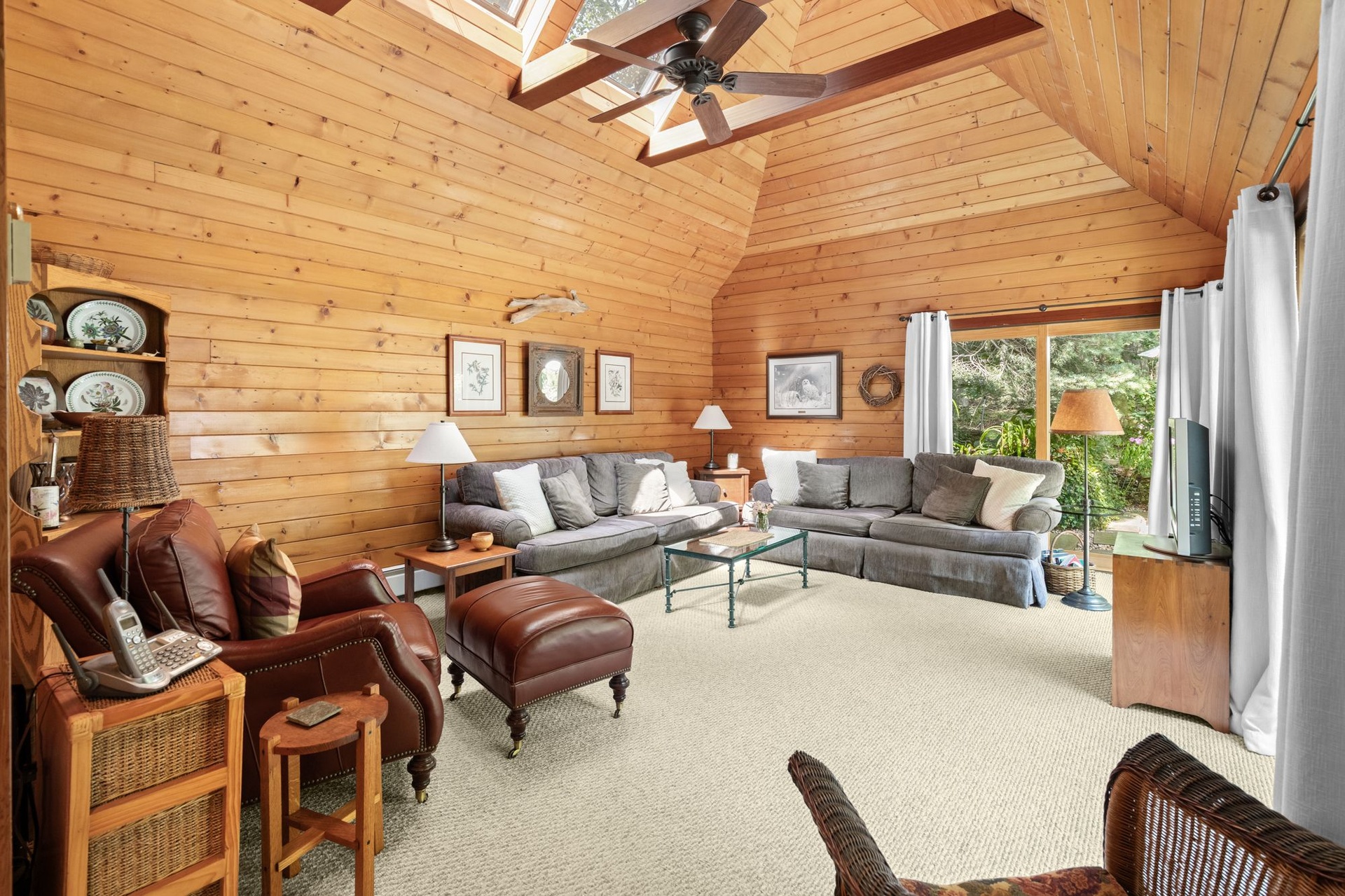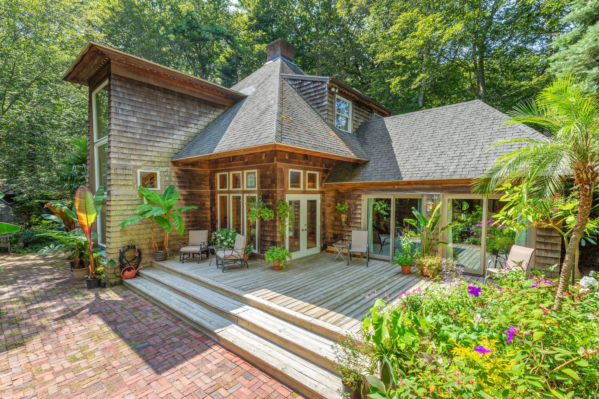 Welcome to 76 Fern Road, your ideal entry point to North Fork living. Nestled within the secluded Oak Hills community, this Unique property offers a rare blend of privacy, nature, and convenience—just minutes from acclaimed vineyards, farm stands, pristine beaches, and golf, with Wildwood State Park bordering the western edge of the neighborhood. Oak Hills residents enjoy exclusive access to a private community deck with stunning Long Island Sound views, along with convenient parking and private beach stairs for easy, carefree days by the water. The beach may also be reached by a scenic woodland trail directly from the property, offering a peaceful and picturesque route to the shoreline. This meticulously maintained 3-bedroom, 2.5-bath home showcases a spacious updated eat-in kitchen with quartz countertops, stainless steel appliances, and a large center island—a true chef’s dream. Oversized windows fill the home with natural sunlight, highlighting features like the cozy wood-burning fireplace in the living room. Enjoy five-zone heating with two new oil tanks, two-zone central A/C, and a primary suite with a covered porch offering serene woodland views. An attached heated greenhouse provides year-round gardening possibilities. Above the detached two-car garage is an artist’s studio. Creating a comfortable, inspiring year-round space for a home office, art studio, or peaceful retreat. Additional upgrades include a hardwired security camera system, portable generator with transfer switch, upgraded electrical panel, and unmatched privacy—bordered by 250 acres of woodland. Just a 5-minute walk to the private beach deck and stairs—or a tranquil stroll along your own woodland path to the shore—and only 25 minutes to Westhampton, this home is your gateway to the relaxed elegance of the North Fork.