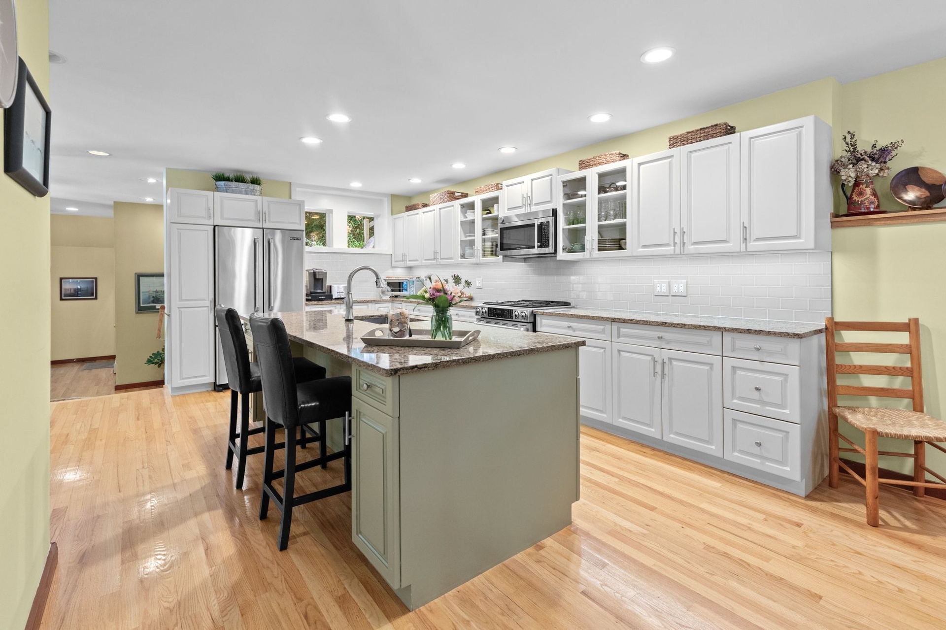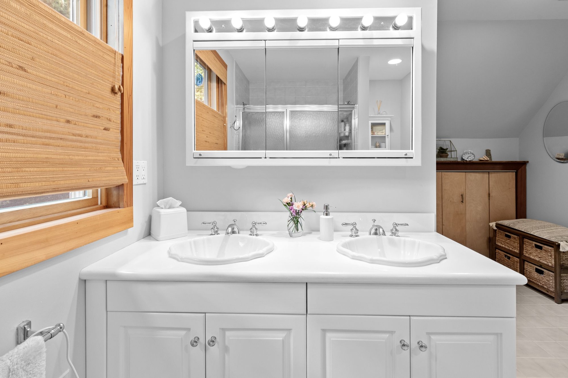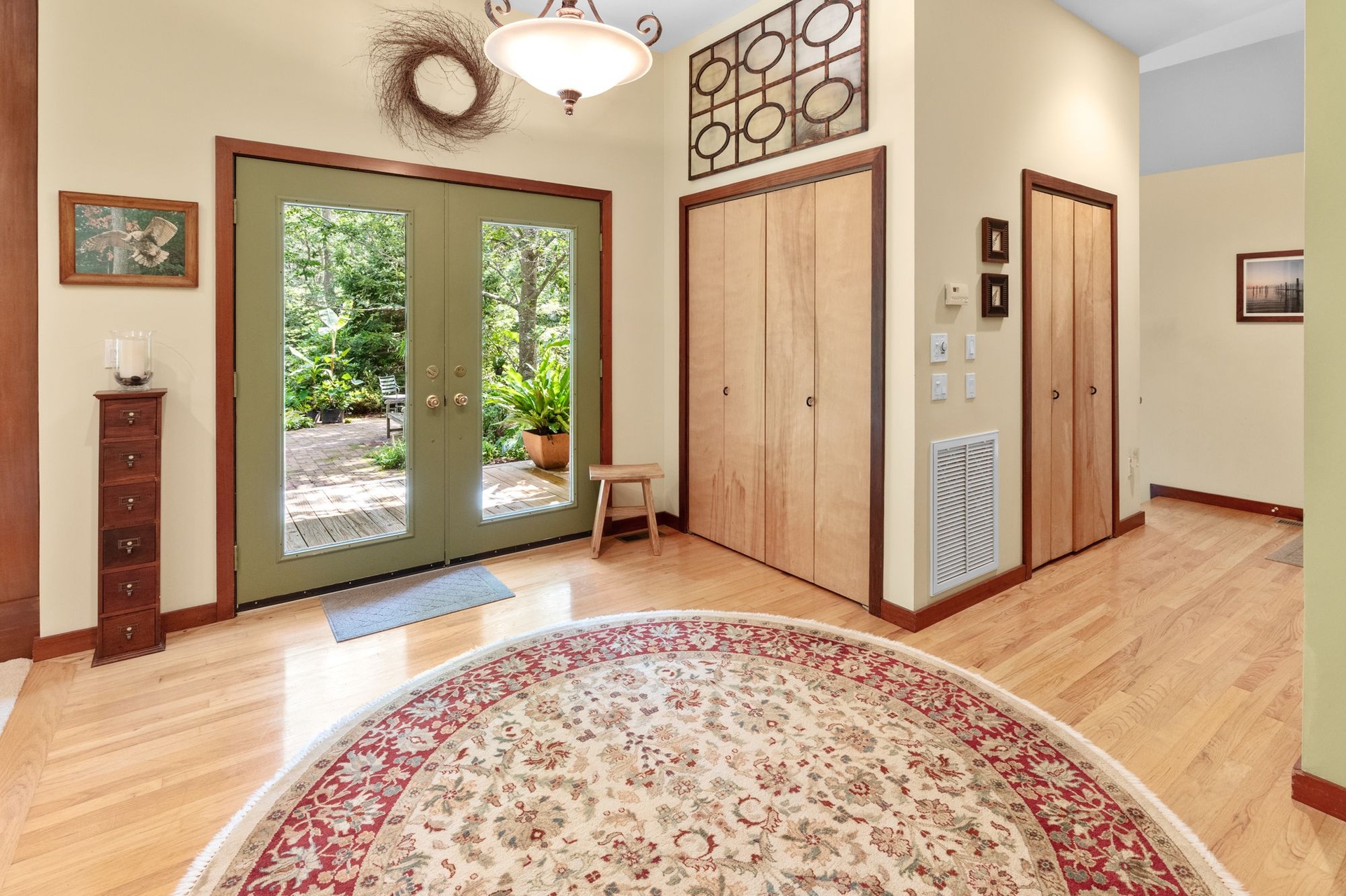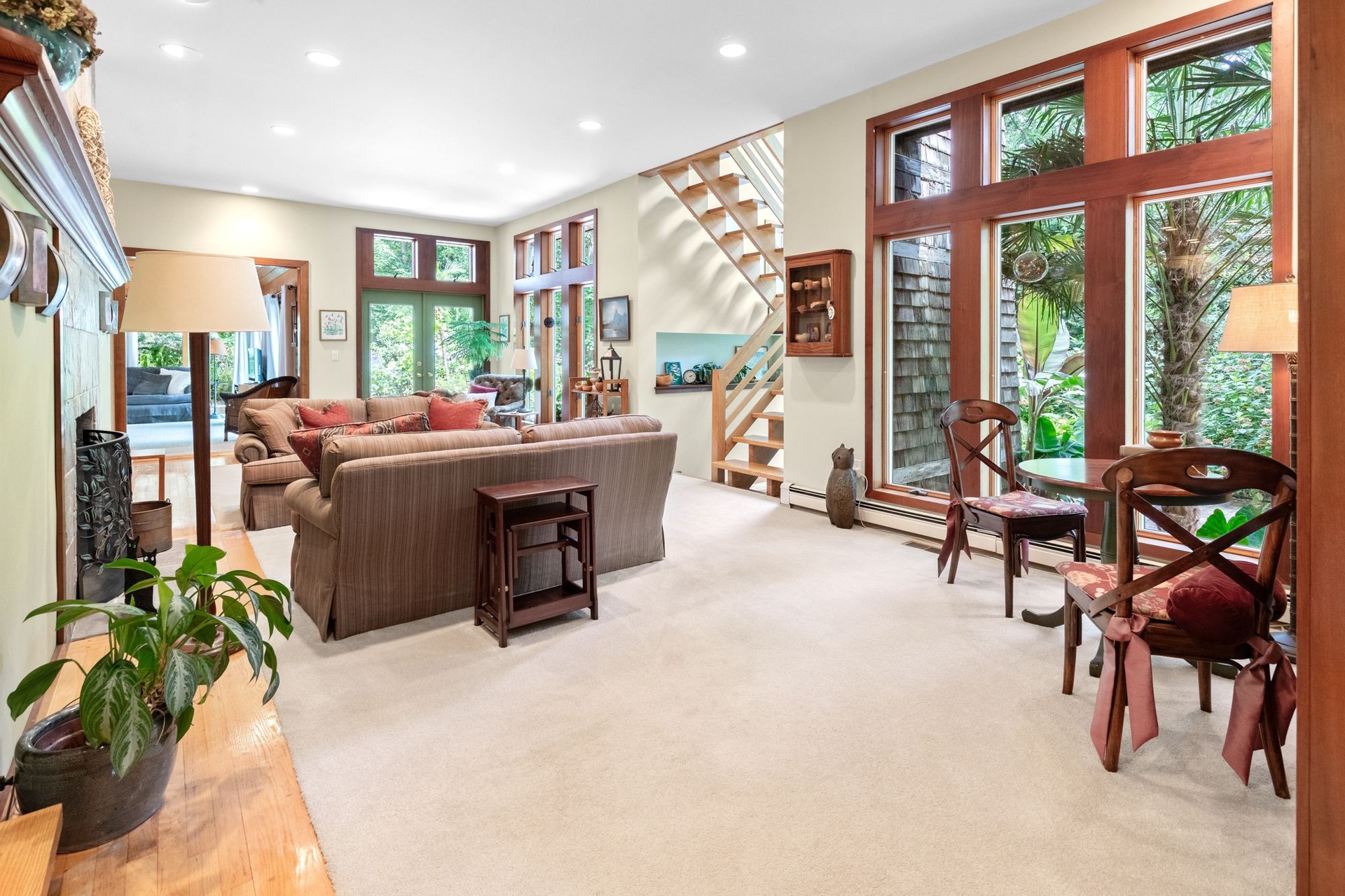 Welcome to 76 Fern Road, your ideal entry point to North Fork living. Nestled within the secluded Oak Hills community, this Unique property offers a rare blend of privacy, nature, and convenience—just minutes from acclaimed vineyards, farm stands, pristine beaches, and golf, with Wildwood State Park bordering the western edge of the neighborhood. Oak Hills residents enjoy exclusive access to a private community deck with stunning Long Island Sound views, along with convenient parking and private beach stairs for easy, carefree days by the water. The beach may also be reached by a scenic woodland trail directly from the property, offering a peaceful and picturesque route to the shoreline. This meticulously maintained 3-bedroom, 2.5-bath home showcases a spacious updated eat-in kitchen with quartz countertops, stainless steel appliances, and a large center island—a true chef’s dream. Oversized windows fill the home with natural sunlight, highlighting features like the cozy wood-burning fireplace in the living room. Enjoy five-zone heating with two new oil tanks, two-zone central A/C, and a primary suite with a covered porch offering serene woodland views. An attached heated greenhouse provides year-round gardening possibilities. Above the detached two-car garage is an artist’s studio. Creating a comfortable, inspiring year-round space for a home office, art studio, or peaceful retreat. Additional upgrades include a hardwired security camera system, portable generator with transfer switch, upgraded electrical panel, and unmatched privacy—bordered by 250 acres of woodland. Just a 5-minute walk to the private beach deck and stairs—or a tranquil stroll along your own woodland path to the shore—and only 25 minutes to Westhampton, this home is your gateway to the relaxed elegance of the North Fork.