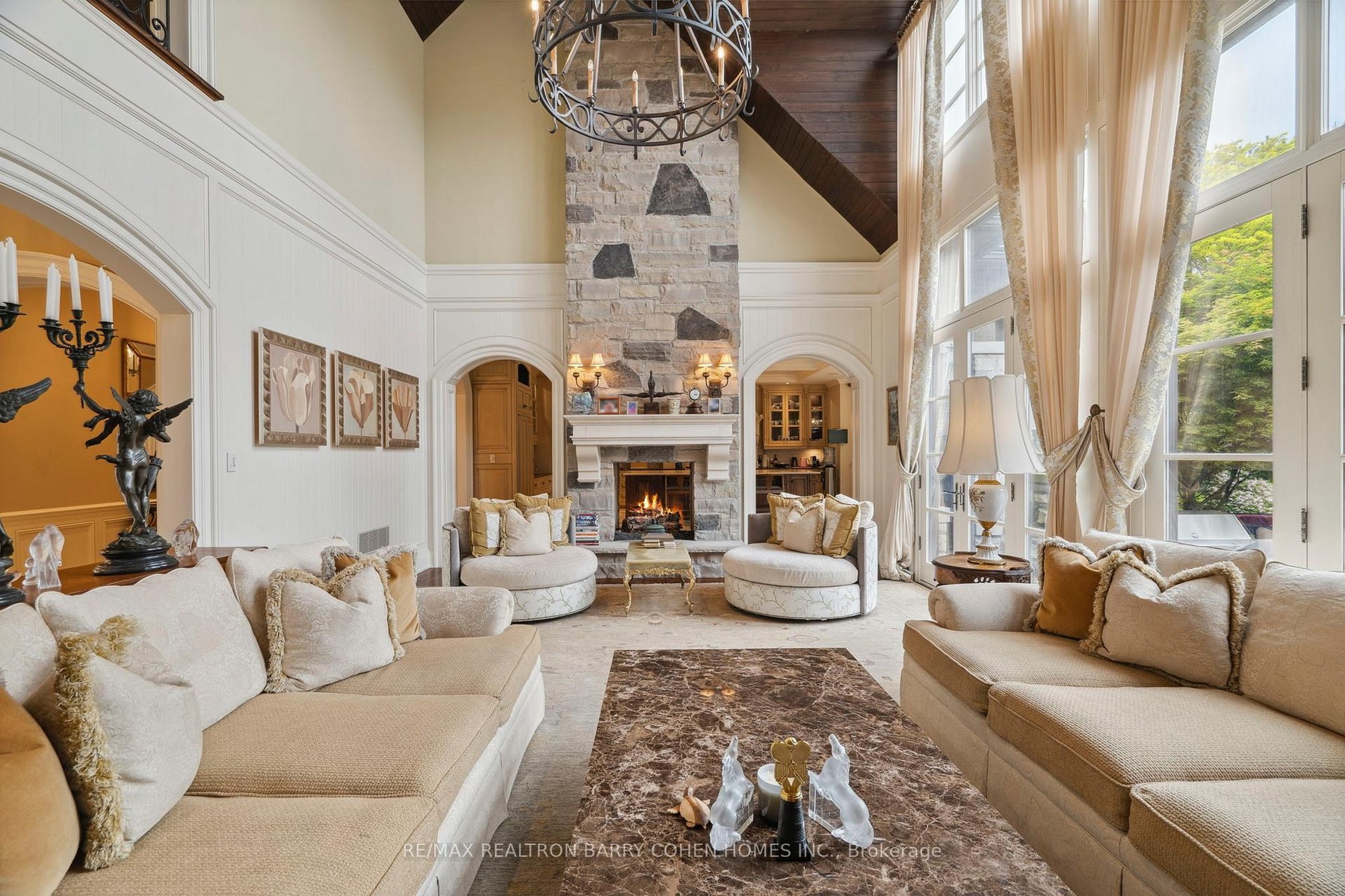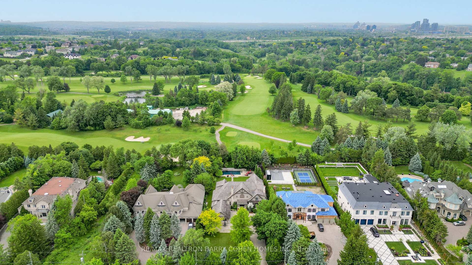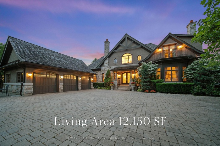 Landmark Estate Backing Onto The Prestigious Thornhill Golf And Nestled On Its Expansive South-Facing Lot. Towering Mature Trees For Ample Privacy. A Masterclass In Timeless Elegance And Craftsmanship With Striking Limestone Exterior & Cedar Shake Roof. Opens To A Grand Foyer With Majestic Cathedral Ceiling Soaring to a Breathtaking Height of Over 18 Feet, Custom Wall Paneling, Heated Natural Limestone Floors And Crown Molding. The Main Level Offers 11' Ceilings, Formal Living & Dining Rooms, Private Office Complete With Floor To Ceiling Wood Panelling and Gas Fireplace, Chef's Gourmet Kitchen With Custom Cabinetry, Natural Stone Countertops Complete in Leathered Finish, Wolf Appliances, Limestone Floors With Elegant Marble Inlays, Walk-in Pantry, Breakfast Area and Walk-out to Rear Gardens. The Family Room Impresses With Grand Atrium Ceilings, Flooded W/ Natural Light, Custom Built-Ins, And A Dual Fireplace. Heated Floors Enhance The Side Entrance And Powder Rooms. Unparalleled In Grandeur Primary Suite Offers Walk-Out to Terrace, Gas Fireplace, Walk-In Closet W/ Vanity Island, A Spa-Like Bath W/ Heated Marble Floors, His&Hers Vanities, Jacuzzi TubAnd Separate Water Closet. Upper Level Features Three Oversized Bedrooms, Each With Private Ensuites, Custom Closets & 2 Balconies. Walk-Out Lower Level Designed by World Renowned Lori Morris, Features 9' Ceilings,Home Theatre, Games Room, Temp. & Humidity Controlled Wine Cellar (1,500 bottles), Guest Suite, Full Spa With Sauna & Shower, Gym W/ Direct Access To The Gardens and Heated Pool. Smart Home Features Incl. Lutron Lighting, Sonos Sound System, Radiant Floor Heating. Full Snow-Melt Systems For Driveway And All Exterior Stone Surfaces. Backyard Oasis Features An Inground Heated Salt Water Pool W/ Cascading Waterfall, Hot Tub, Outdoor Bathroom/Change Room,Lush Gardens, And Resort-Style Amenities. A One-Of-A-Kind Estate With Unparalleled Blend Of Sophistication, Ultimate Privacy And Prestigious Golf Course Setting.
