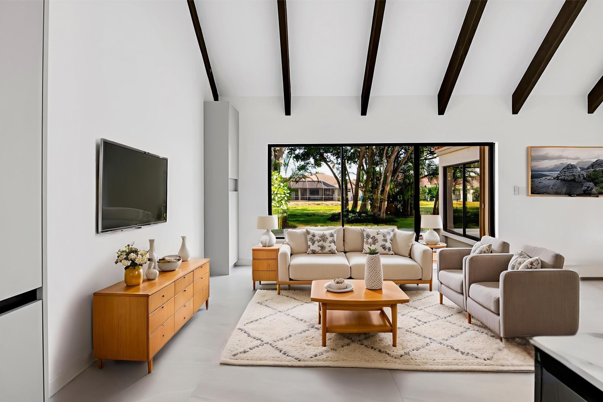 Step inside this beautifully upgraded 3-bedroom, 2-bath townhome with over 2,000 square feet under air and so much to love. Enjoy a first-floor master suite for comfort and ease, and soaring wood-beam ceilings that add charm and a spacious feel. The kitchen is brand new and ready for your favorite meals, and a new roof adds long-term peace of mind. Light fills every room, and the private patio is a perfect retreat with no rear neighbors. 1-car garage adds extra convenience. This is one of the best homes in the entire community. Zoned for a brand-new A-rated K-8 school. You can walk to your house of worship, and within minutes, enjoy Mizner Park, the beach, Town Center Mall, and top restaurants. The community features two heated pools and two tennis courts.