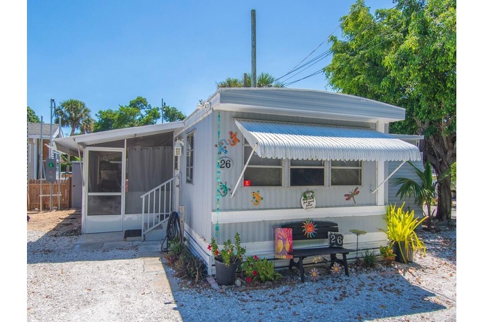 Welcome to your slice of paradise in the heart of Jensen Beach! This home offers a rare opportunity to live just minutes from the sparkling waters of the Atlantic and the vibrant charm of downtown. And best of all, it is an ALL AGE park and your furry friends are welcome here. Lot rent is only $875 per month. It has a screened in lanai and a fenced backyard. Whether you're drawn by the laid-back coastal lifestyle or the area's growing popularity, this adorable 1/1 is your gateway to everything Jensen Beach has to offer. Don't miss this chance to secure a piece of Florida's Treasure Coast!