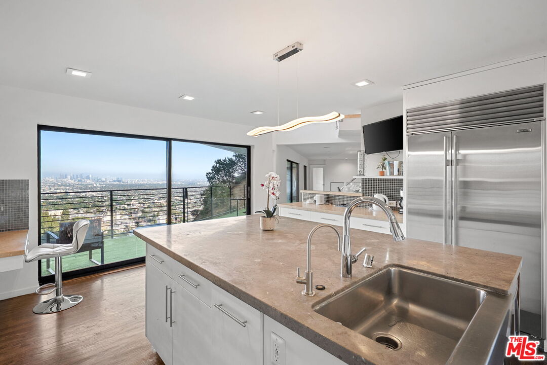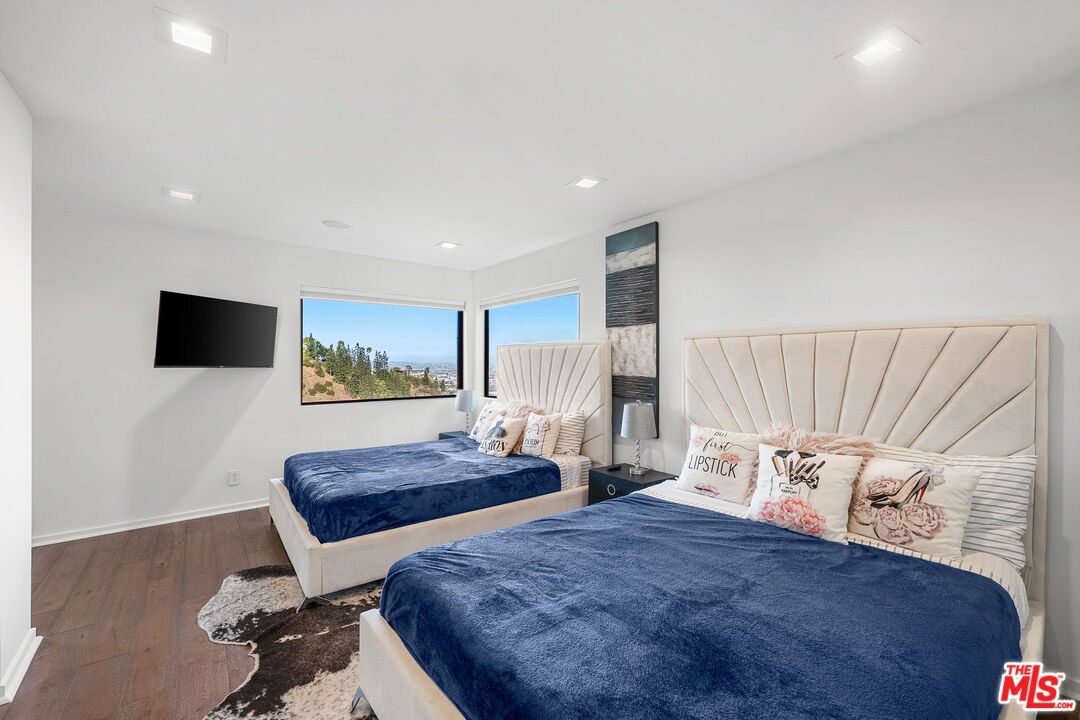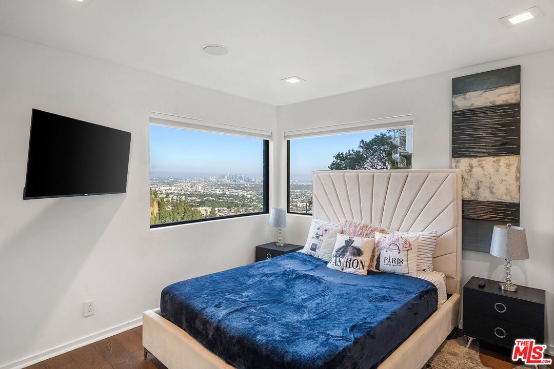 DescriptionExperience modern luxury at its finest in this 4-bedroom, 5-bathroom contemporary estate perched above the iconic Sunset Strip. Set against sweeping panoramic views of the Los Angeles skyline, this retreat offers an open floor plan flooded with natural light and seamless indoor-outdoor living.The main living room features floor-to-ceiling windows and sliding glass doors that frame the breathtaking vistas, while the sleek gourmet chef's kitchen boasts a large center island and top-of-the-line stainless steel appliances. The lavish primary suite opens to a private balcony and outdoor living space, complemented by three additional ensuite bedrooms for family and guests. Designed for both relaxation and entertaining, the home includes multiple terraces, an outdoor BBQ, surround sound speakers, and an above-ground pool and spa for added leisure. Additional amenities include a temperature-controlled wine cellar, gated entry with security cameras, solar power systems, and a two-car garage. Just moments from world-class dining, shopping, and entertainment, this fully furnished Hollywood Hills sanctuary is move-in ready and waiting to be enjoyed.NeighborhoodMore listings: