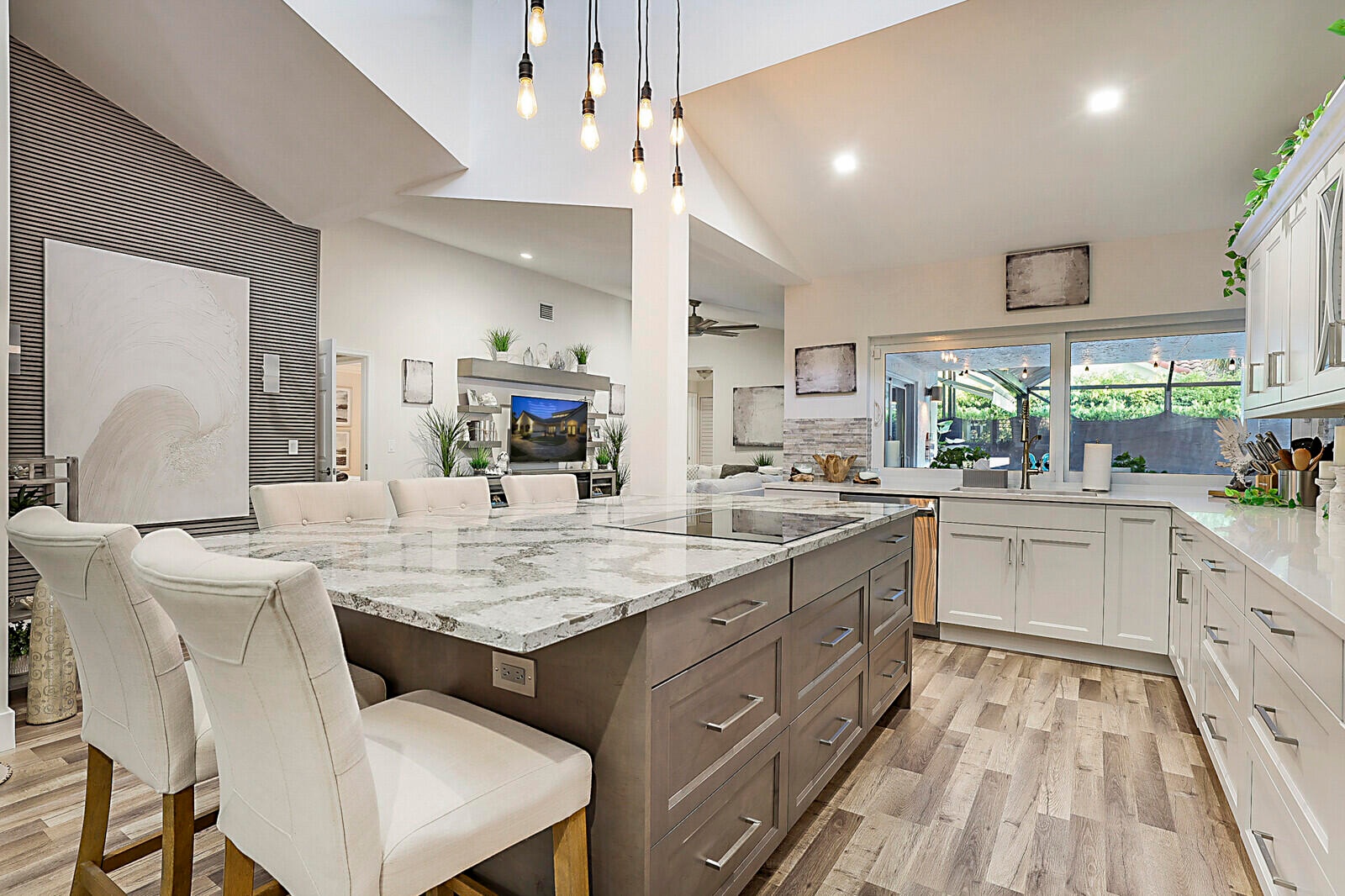 This Exquisite Estate in Delray Beach's Prestigious Rabbit Hollowe is a true tropical sanctuary in the heart of Delray Beach. Tucked away in the boutique luxury community of Rabbit Hollowe, this beautiful 4-bedroom, 3-bath estate sits on a meticulously landscaped third of an acre corner lot, offering both privacy and prestige. From the moment you step through the grand entrance, you'll be greeted by soaring 14-foot ceilings, streams of natural light, and an open-concept floor plan that flows seamlessly from one elegant space to the next. The heart of the home is the stunning chef's kitchen, designed with both beauty and function in mind. Outfitted with induction cooking, premium appliances, and custom cabinetry, it's the perfect stage for preparing everything from casual family meals to