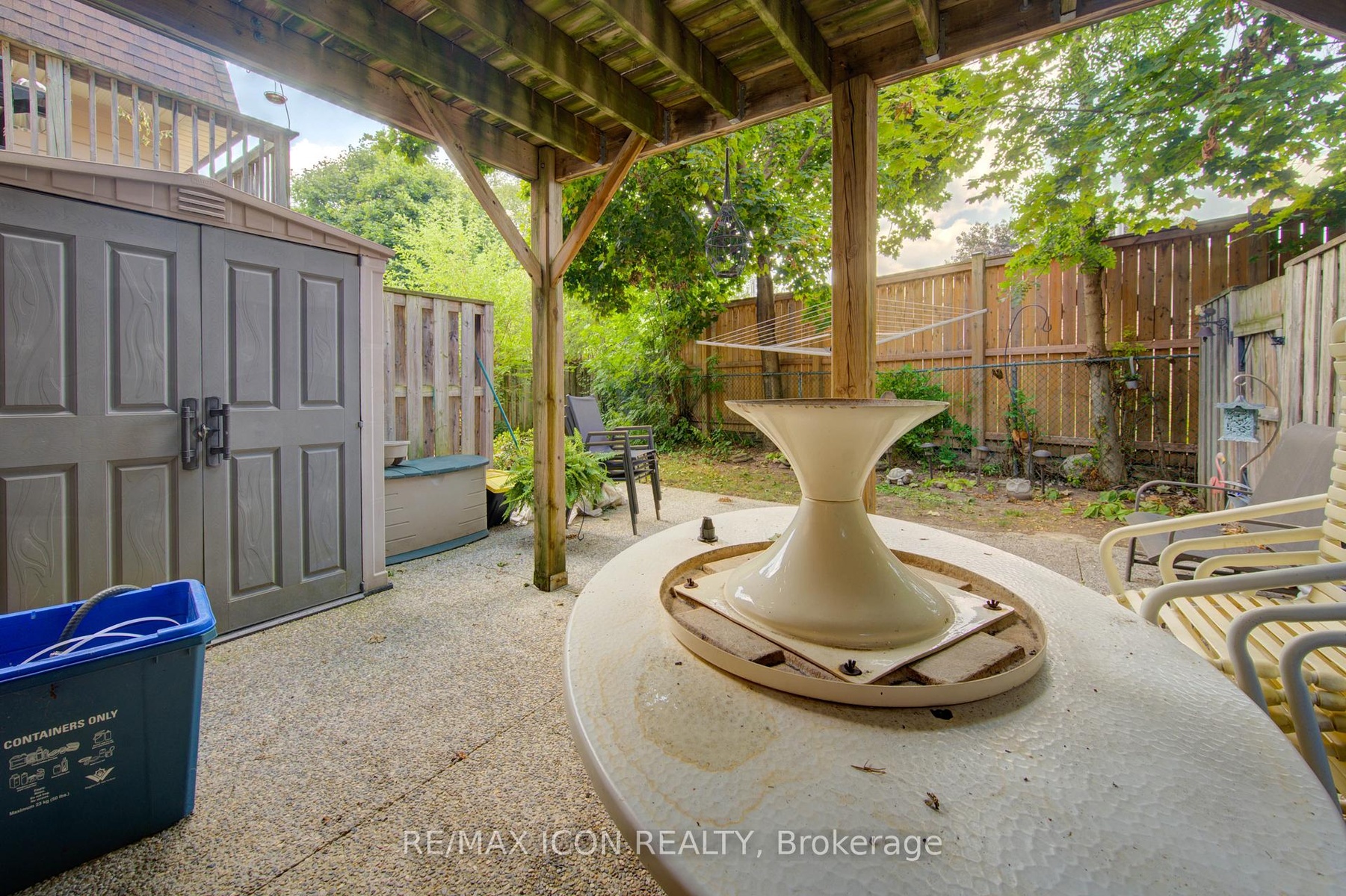 Welcome to this beautifully upgraded 2-bedroom, 2-bath townhouse tucked away in one of Kitchener's most sought-after locations--right behind Fairview Park Mall, with quick access to the highway, shopping, restaurants, and every amenity you could need. This home features custom upgraded wide/single hardwood floors on the main level and extra windows letting in an abundance of natural light. Enjoy the bright and spacious dining area that features garden doors complete with built-in blind to a private deck with shade gazebo. A well-equipped kitchen features extra counter space and a gas stove, perfect for home chefs. The second floor retreat offers a custom-built primary bedroom with wall-to-wall closets for exceptional storage. The second bedroom, formerly the primary, offers a deep double closet and plenty of space. The spa-like 4 pc bathroom featuring a custom 9ft vanity with cupboards and drawers, plus a deep soaker tub and linen closet. All windows on main and second floor offer custom made California shutters. The lower level has direct access to the attached garage, laundry room, utility area, and walkout to a spacious cement patio with a garden shed--ideal for outdoor entertaining or relaxing evenings. This property combines style, comfort and convenience in one unbeatable package.