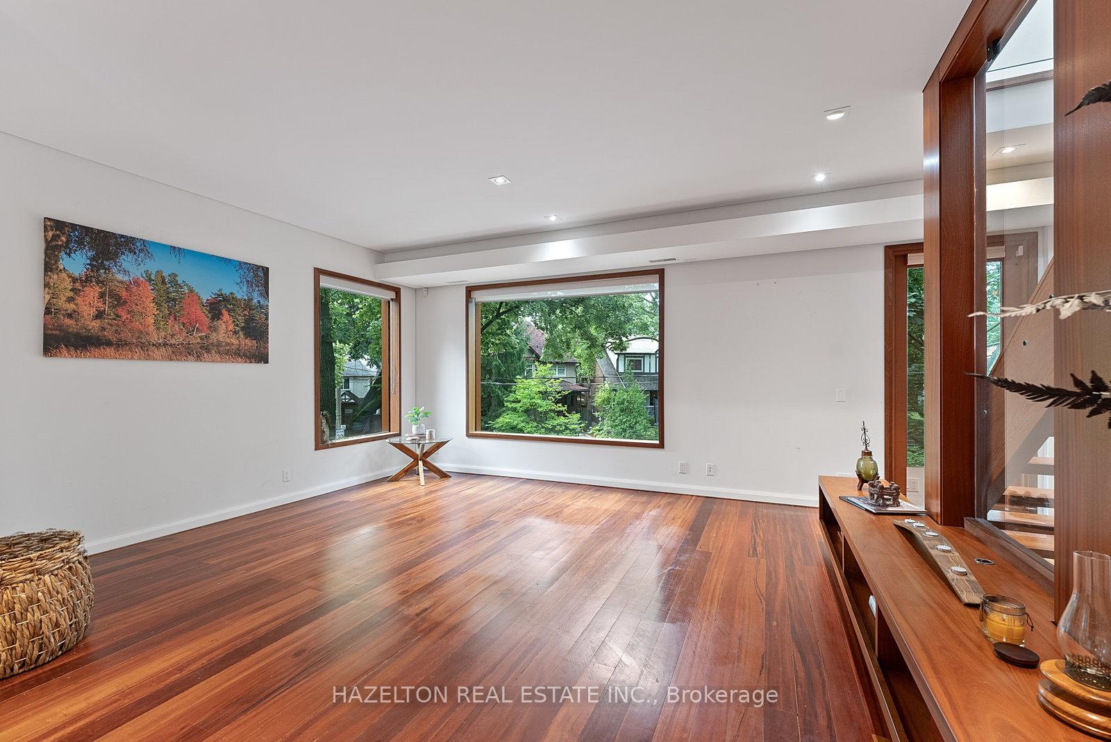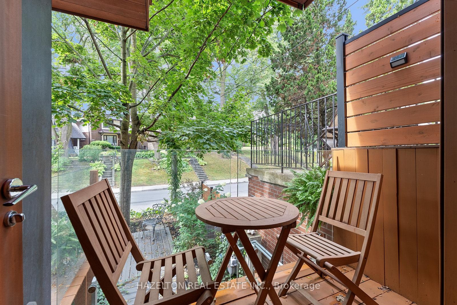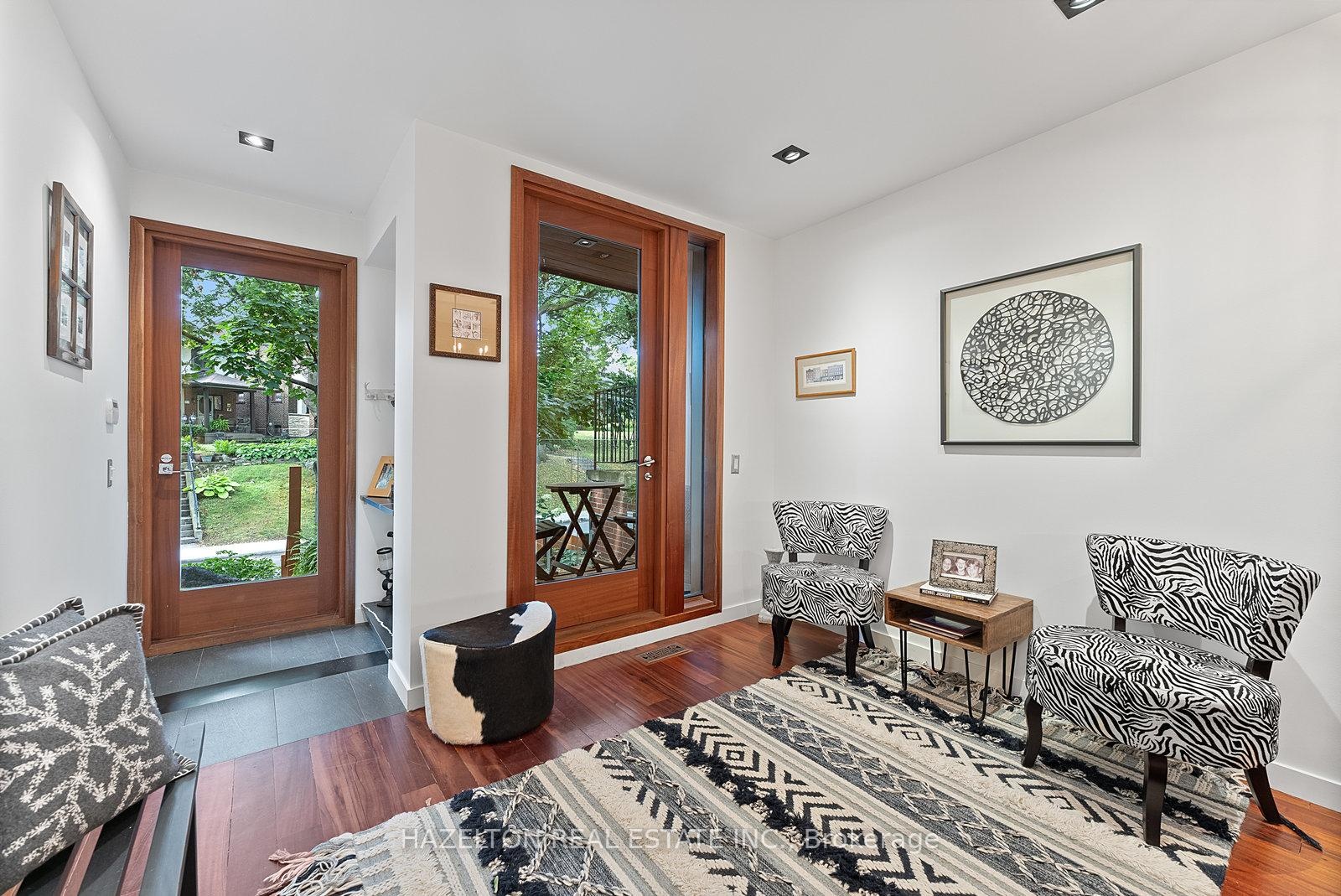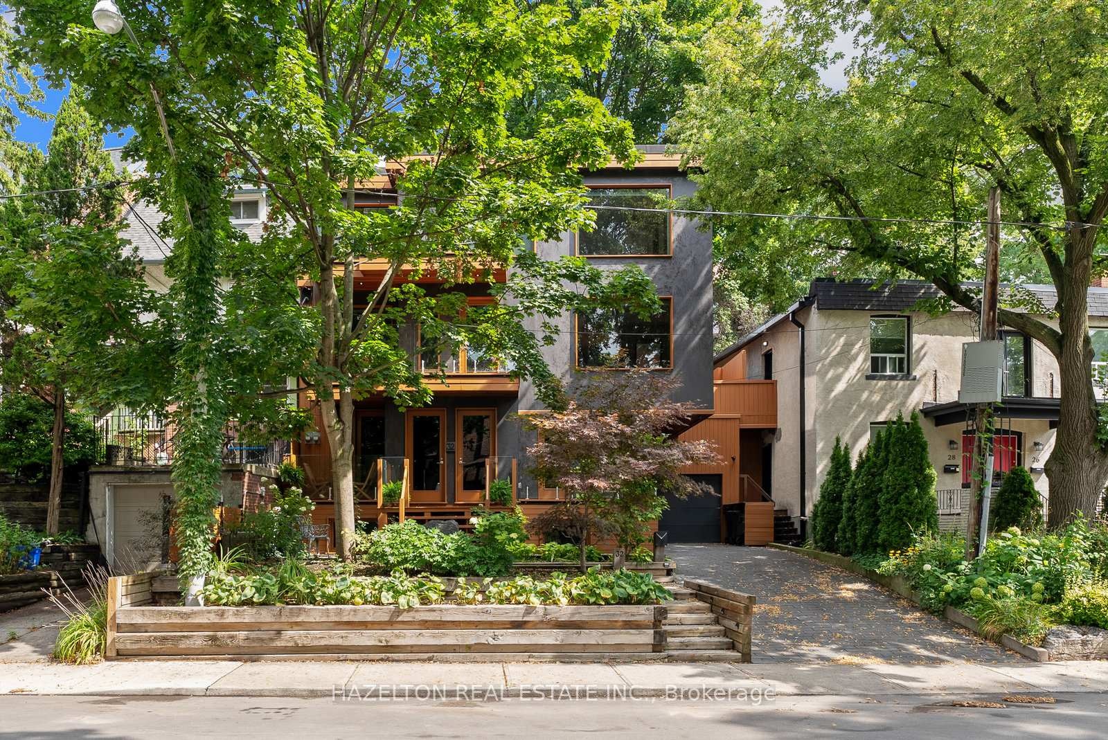 Located in Torontos sought-after Regal Heights neighbourhood, this duplex (can be converted into a single-family home) offers a modern sanctuary where architecture and nature meet in perfect harmony. Nestled among mature trees and framed by curated landscaping, it provides a private retreat unlike any other in the city. The exterior is finished with unique porcelain tile, while the balconies are enclosed by sleek glass railings, and the floors throughout are crafted from exotic tiger wood. Warm wood accents soften sleek contemporary lines, grounding the design in natural beauty. Each unit has its own unique character. The upper suite (primary suite) welcomes you with abundant natural light, floor-to-ceiling windows, and dual skylights. Its open-concept layout captures serene treetop views from every room. The primary suite has one large bedroom on the top floor and is a tranquil retreat with spa-inspired finishes, six private walkouts, and an unfinished rooftop terrace awaiting your personal touch.The main-floor suite features 2 bedrooms, newly updated kitchen with brand-new appliances and a private balcony, perfect for enjoying morning coffee.The basement includes its own suite, offering even more flexibility with a separate entrance, kitchenette, high ceilings, and natural light, making it ideal as an in-law suite or a third income-generating unit. A turnkey property offering charm, flexibility, and prime location, it is ideal for multi-generational living or rental income with lasting value. Perfectly situated steps from cafés, restaurants, and shops, with easy access to the Annex, Corso Italia, Ossington, parks, schools, and community amenities. The sellers do not represent or warrant retrofit compliance with respect to the multiple residential units.