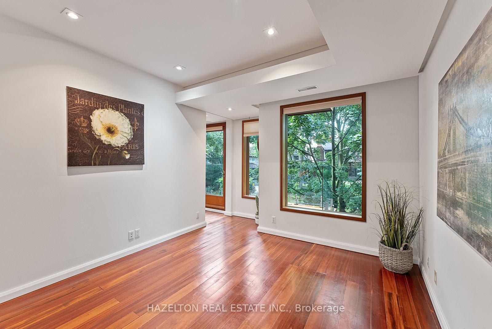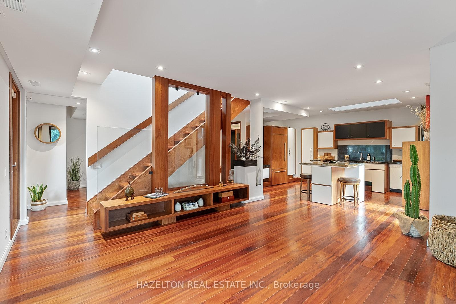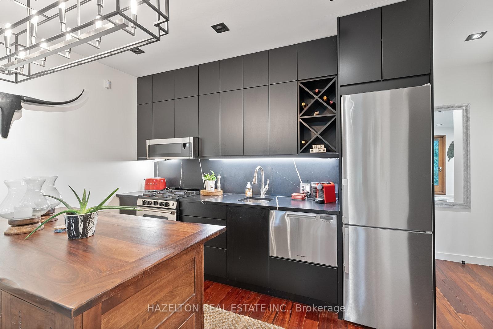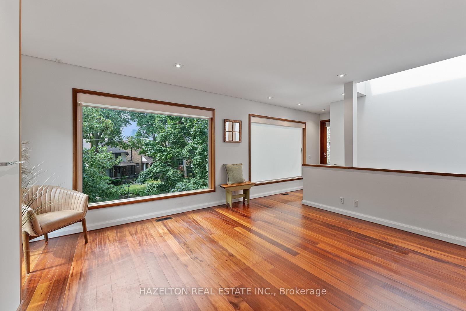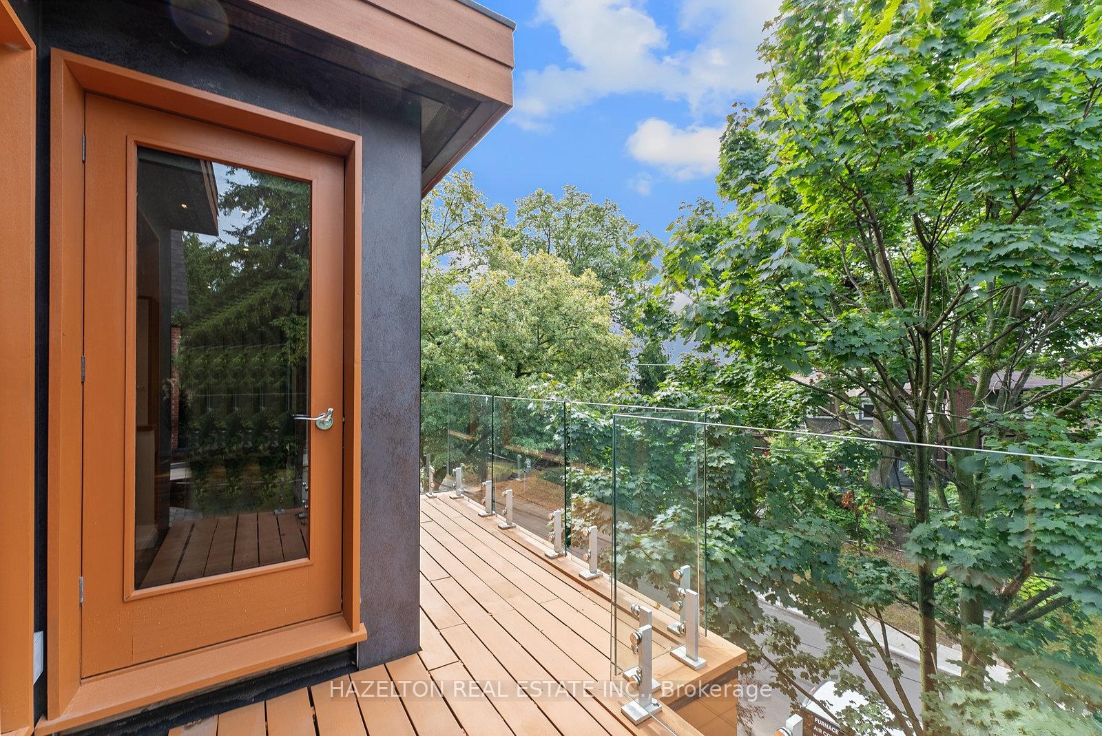 Located in Torontos sought-after Regal Heights neighbourhood, this duplex (can be converted into a single-family home) offers a modern sanctuary where architecture and nature meet in perfect harmony. Nestled among mature trees and framed by curated landscaping, it provides a private retreat unlike any other in the city. The exterior is finished with unique porcelain tile, while the balconies are enclosed by sleek glass railings, and the floors throughout are crafted from exotic tiger wood. Warm wood accents soften sleek contemporary lines, grounding the design in natural beauty. Each unit has its own unique character. The upper suite (primary suite) welcomes you with abundant natural light, floor-to-ceiling windows, and dual skylights. Its open-concept layout captures serene treetop views from every room. The primary suite has one large bedroom on the top floor and is a tranquil retreat with spa-inspired finishes, six private walkouts, and an unfinished rooftop terrace awaiting your personal touch.The main-floor suite features 2 bedrooms, newly updated kitchen with brand-new appliances and a private balcony, perfect for enjoying morning coffee.The basement includes its own suite, offering even more flexibility with a separate entrance, kitchenette, high ceilings, and natural light, making it ideal as an in-law suite or a third income-generating unit. A turnkey property offering charm, flexibility, and prime location, it is ideal for multi-generational living or rental income with lasting value. Perfectly situated steps from cafés, restaurants, and shops, with easy access to the Annex, Corso Italia, Ossington, parks, schools, and community amenities. The sellers do not represent or warrant retrofit compliance with respect to the multiple residential units.