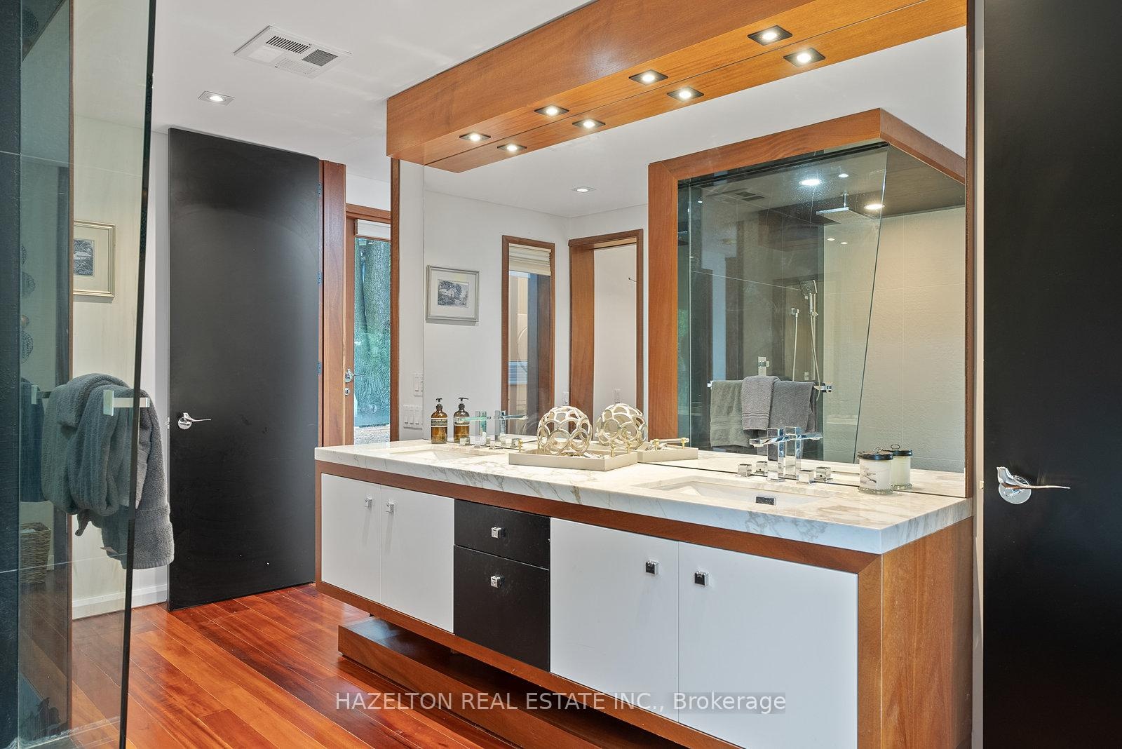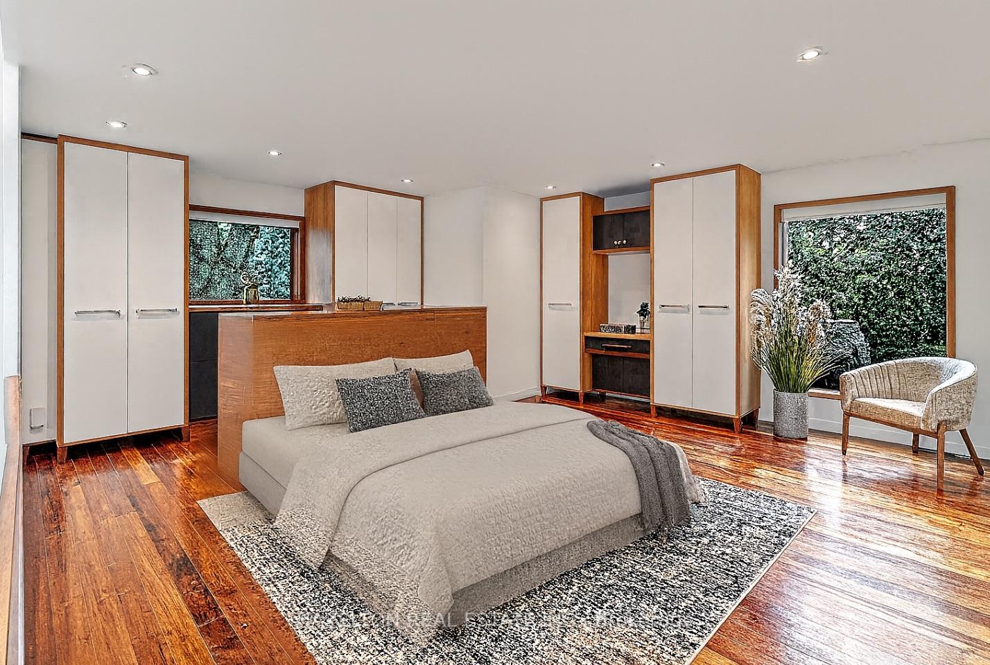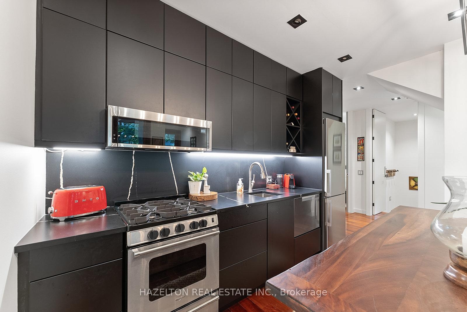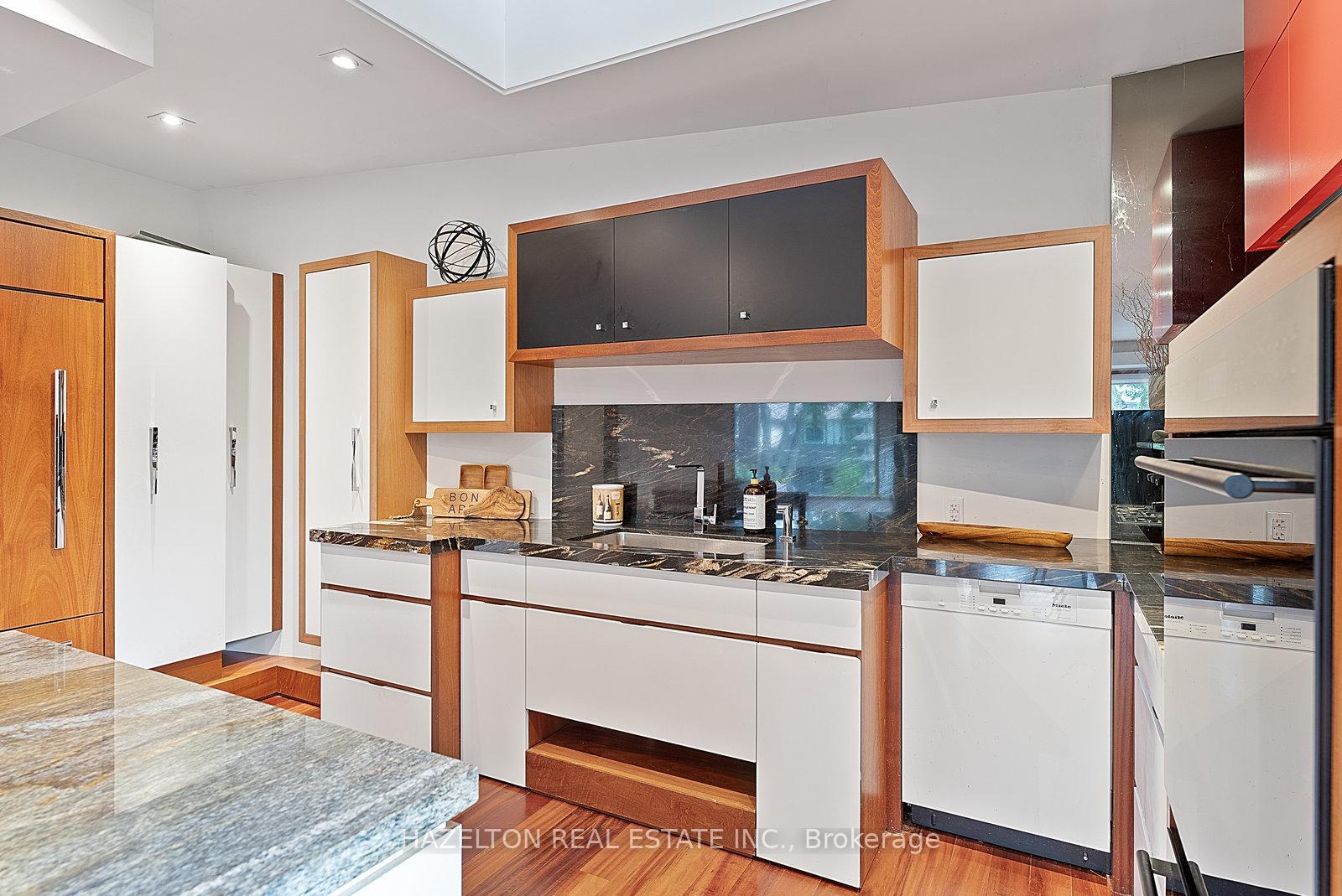 Located in Torontos sought-after Regal Heights neighbourhood, this duplex (can be converted into a single-family home) offers a modern sanctuary where architecture and nature meet in perfect harmony. Nestled among mature trees and framed by curated landscaping, it provides a private retreat unlike any other in the city. The exterior is finished with unique porcelain tile, while the balconies are enclosed by sleek glass railings, and the floors throughout are crafted from exotic tiger wood. Warm wood accents soften sleek contemporary lines, grounding the design in natural beauty. Each unit has its own unique character. The upper suite (primary suite) welcomes you with abundant natural light, floor-to-ceiling windows, and dual skylights. Its open-concept layout captures serene treetop views from every room. The primary suite has one large bedroom on the top floor and is a tranquil retreat with spa-inspired finishes, six private walkouts, and an unfinished rooftop terrace awaiting your personal touch.The main-floor suite features 2 bedrooms, newly updated kitchen with brand-new appliances and a private balcony, perfect for enjoying morning coffee.The basement includes its own suite, offering even more flexibility with a separate entrance, kitchenette, high ceilings, and natural light, making it ideal as an in-law suite or a third income-generating unit. A turnkey property offering charm, flexibility, and prime location, it is ideal for multi-generational living or rental income with lasting value. Perfectly situated steps from cafés, restaurants, and shops, with easy access to the Annex, Corso Italia, Ossington, parks, schools, and community amenities. The sellers do not represent or warrant retrofit compliance with respect to the multiple residential units.