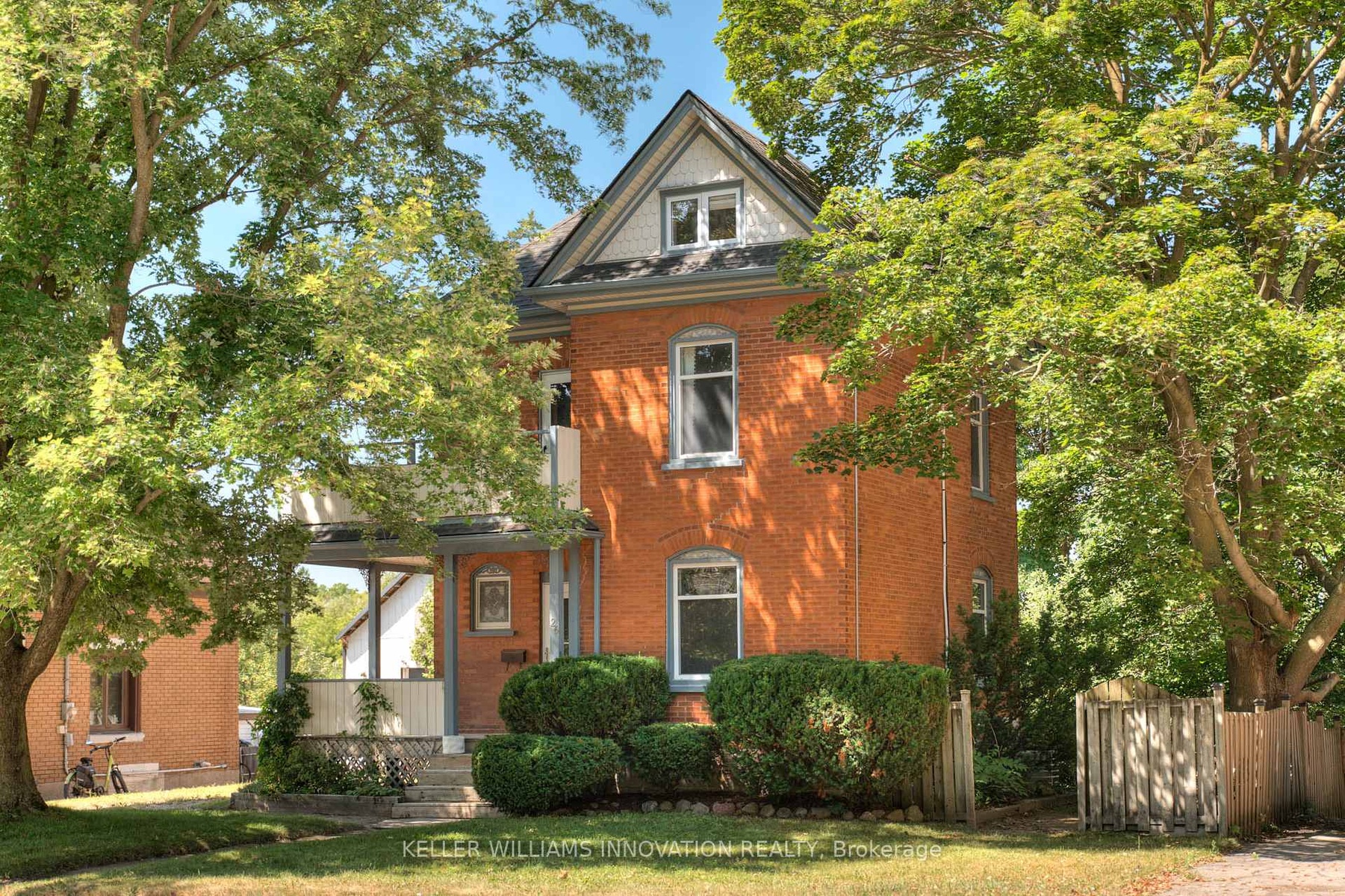 DescriptionWelcome to 26 Arthur Street N, a striking century home where timeless red brick and original woodwork meet bold, modern design. Set on a tree-lined street in charming Elmira, this property offers unmatched character and convenience, just steps from the Kissing Bridge Trail, Downtown shops, schools, parks, the Woolwich Memorial Centre, and easy highway access for commuters. From the gabled roofline to the inviting wraparound porch and second-storey balcony, the homes curb appeal is undeniable. Mature trees, manicured shrubs, and a private driveway add to the charm. Inside, the spacious foyer sets the tone with warm wood detailing, stained glass windows, and a dramatic staircase. The main floor flows seamlessly through beautifully styled living and dining spaces featuring rich trim, original pocket doors, and designer wallpaper that balance historic character with a modern touch. The renovated kitchen is a showpiece; checkerboard flooring, quartz waterfall island, sleek blue cabinetry with brass hardware, and stainless steel appliances create a bold yet functional hub for daily living. Upstairs, youll find three comfortable bedrooms, each with its own unique personality, along with a renovated four-piece bathroom. The versatile layout offers space for bedrooms, nursery, or a home office. A recently finished attic provides a quiet retreat complete with its own bathroom, perfect as a primary suite, studio, or hideaway. The basement includes walk-out access to the backyard, ample storage, and room for a workshop. Outside, the deep yard offers privacy thanks to mature trees and no rear neighbours a serene setting for summer evenings or family play. Recent updates include the kitchen, bathrooms, roof, windows, electrical, furnace, and AC ensuring peace of mind while preserving this homes original character. This home offers a rare blend of history, creativity, and modern convenience a truly one-of-a-kind home in a welcoming Elmira community.Amenities- Pasture